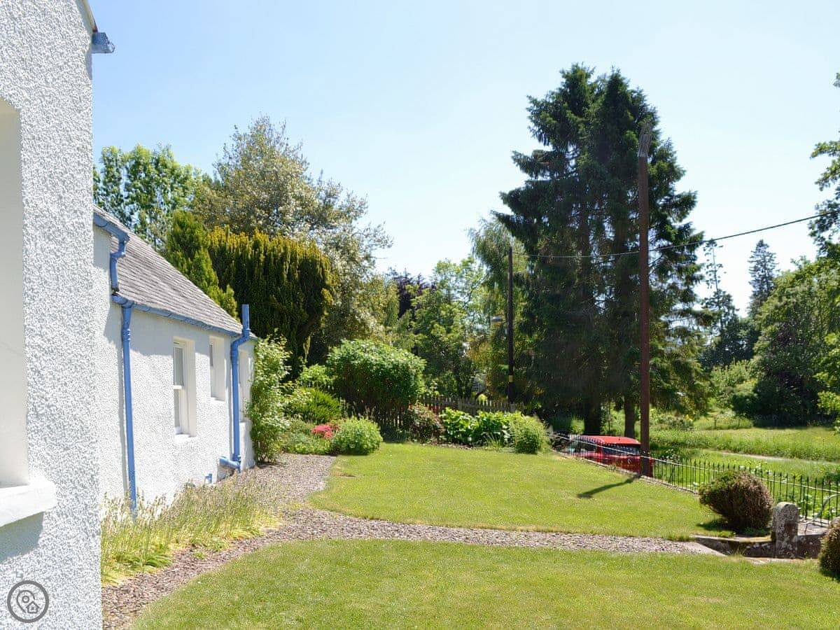 The Old School House Cottage is in Kettins, a small hamlet. It's semi-detached, one of a row of old school houses. There's a small village green out front with a stream.
