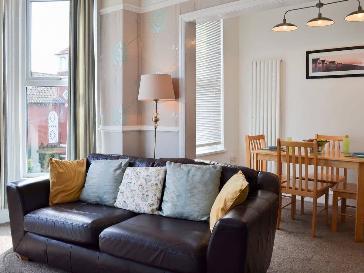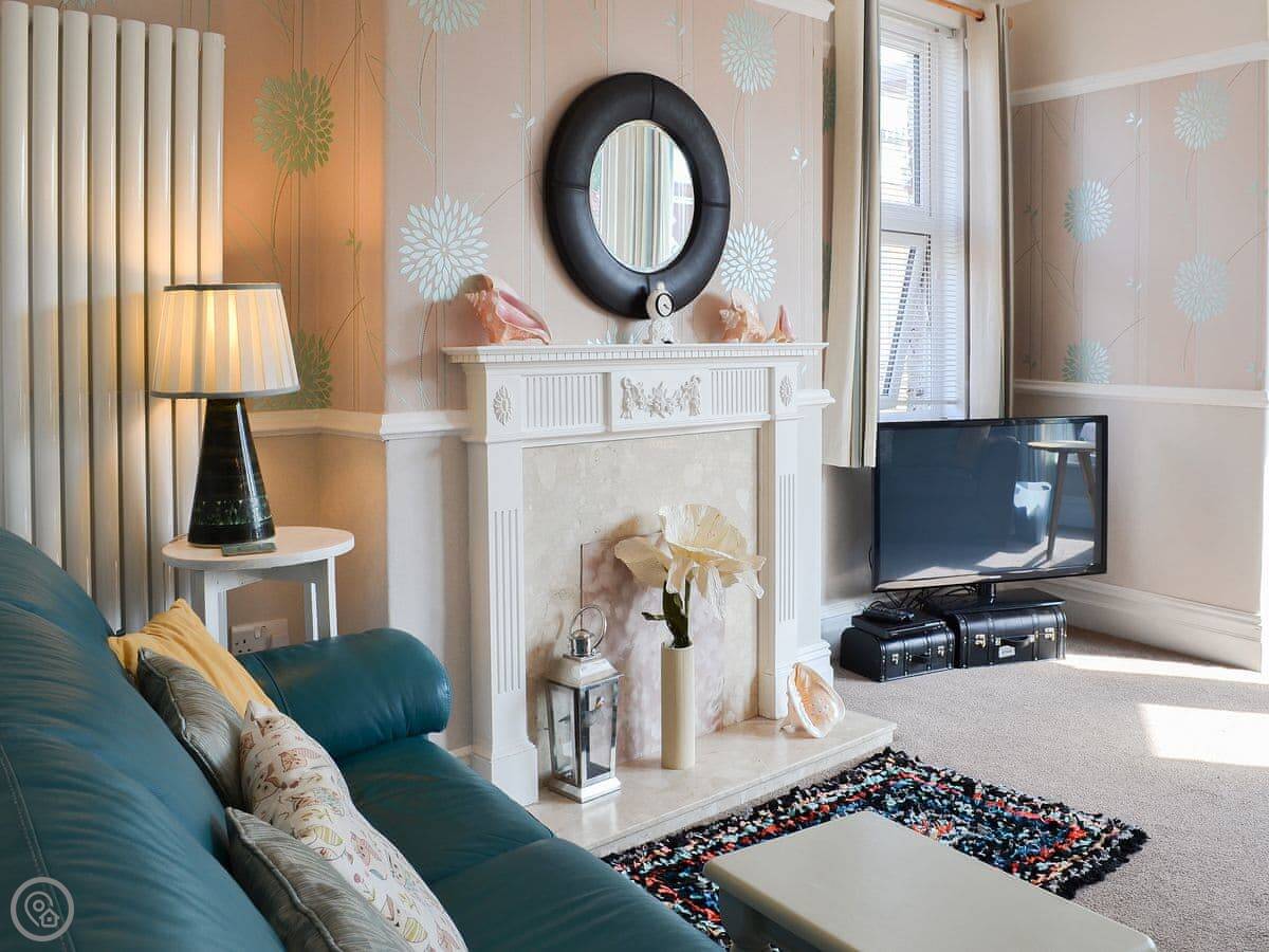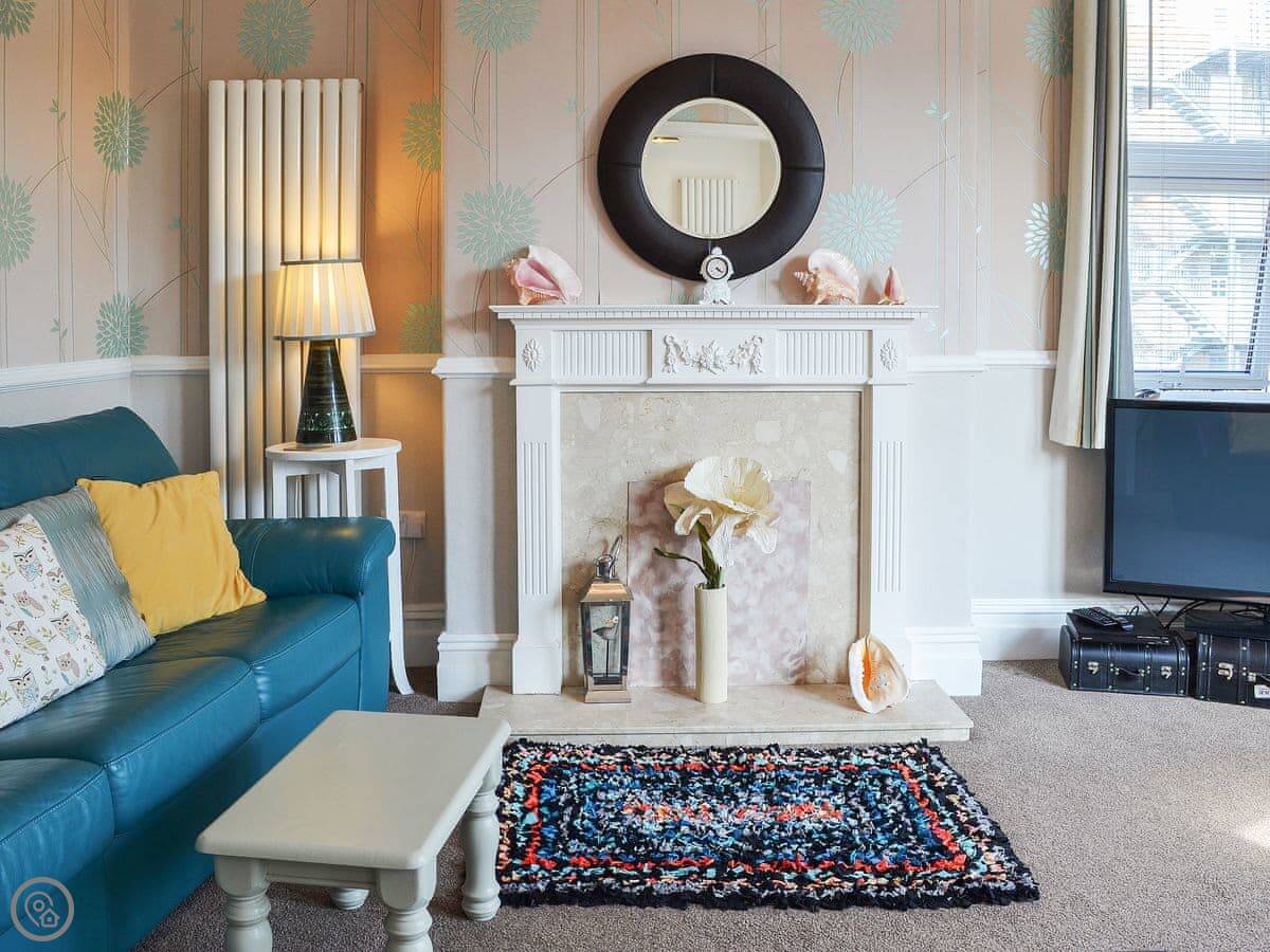 Deja Blue is our flat in Filey. It's on the first floor, above one of the shops on the main street. It's very quiet up there, you look right out on the church opposite. The living room window gives you a bit of a sea view over the rooftops.