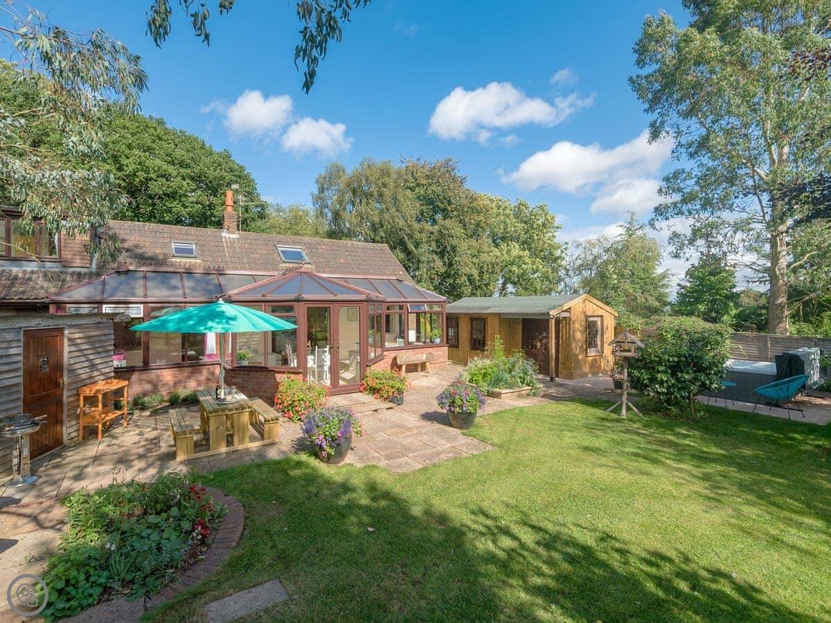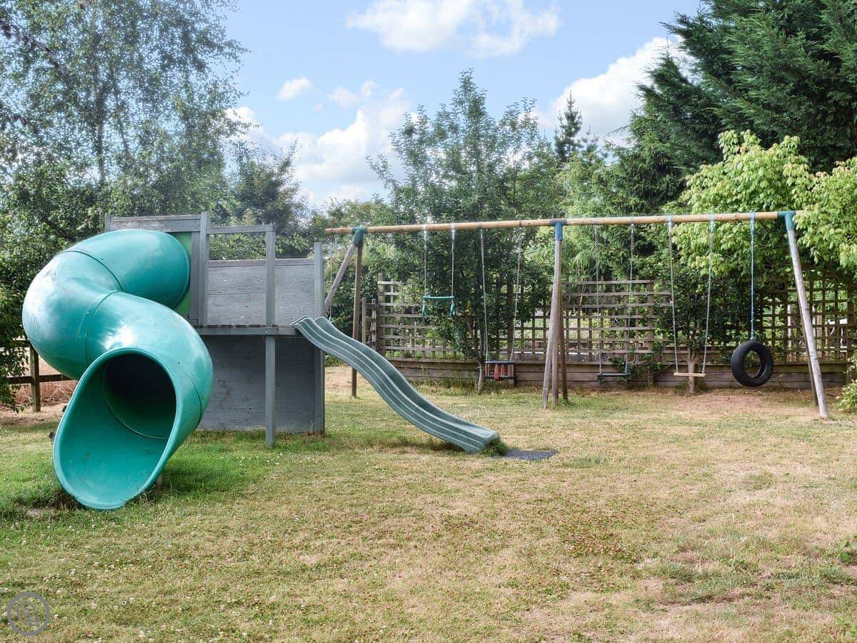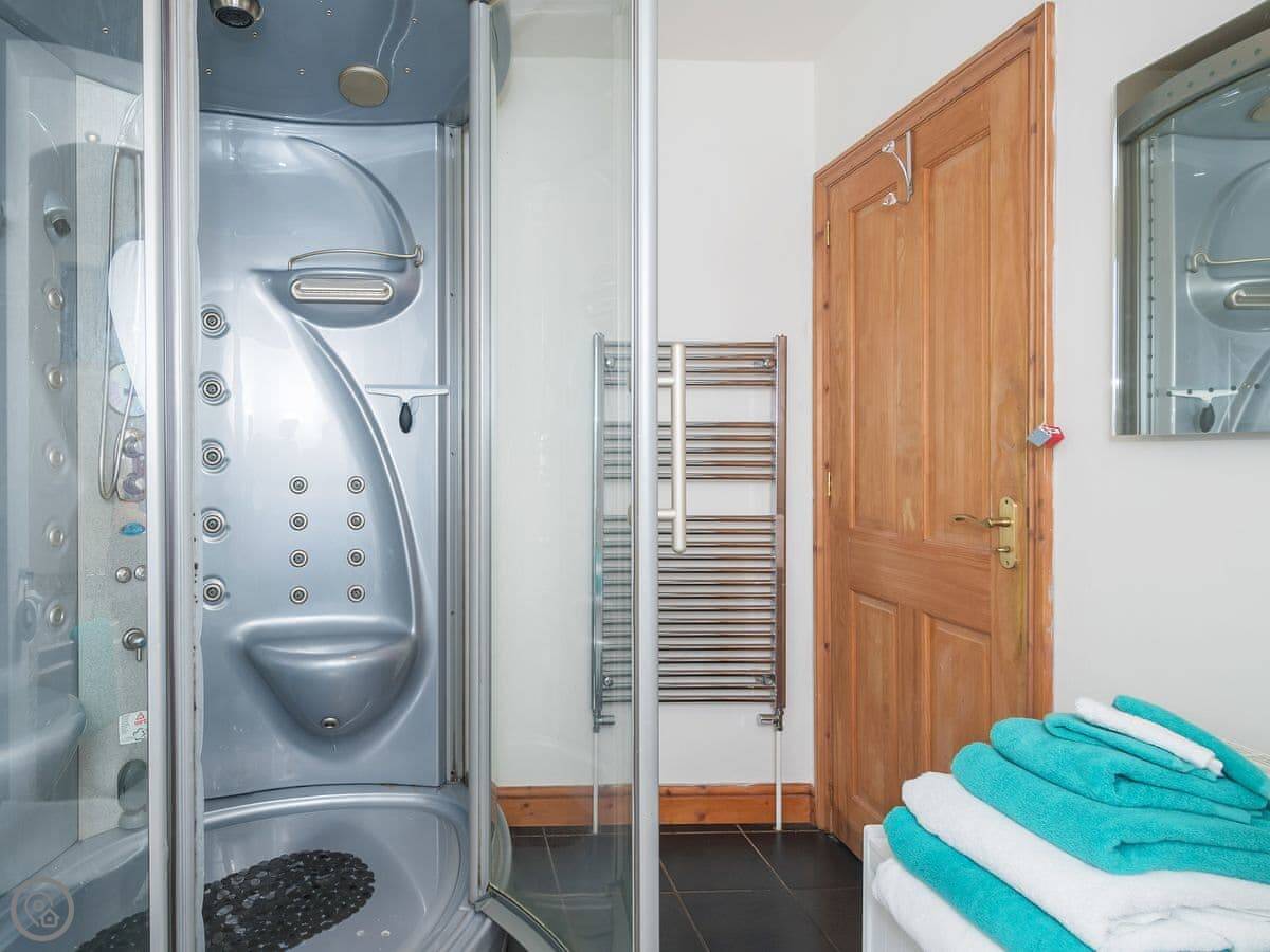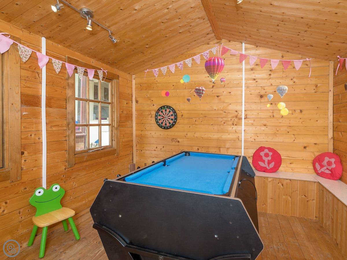 The property is set up for dogs. There's a utility room with throws, towels and a washing machine. Outside, there's a shower for washing dogs off. The garden is fenced all round.