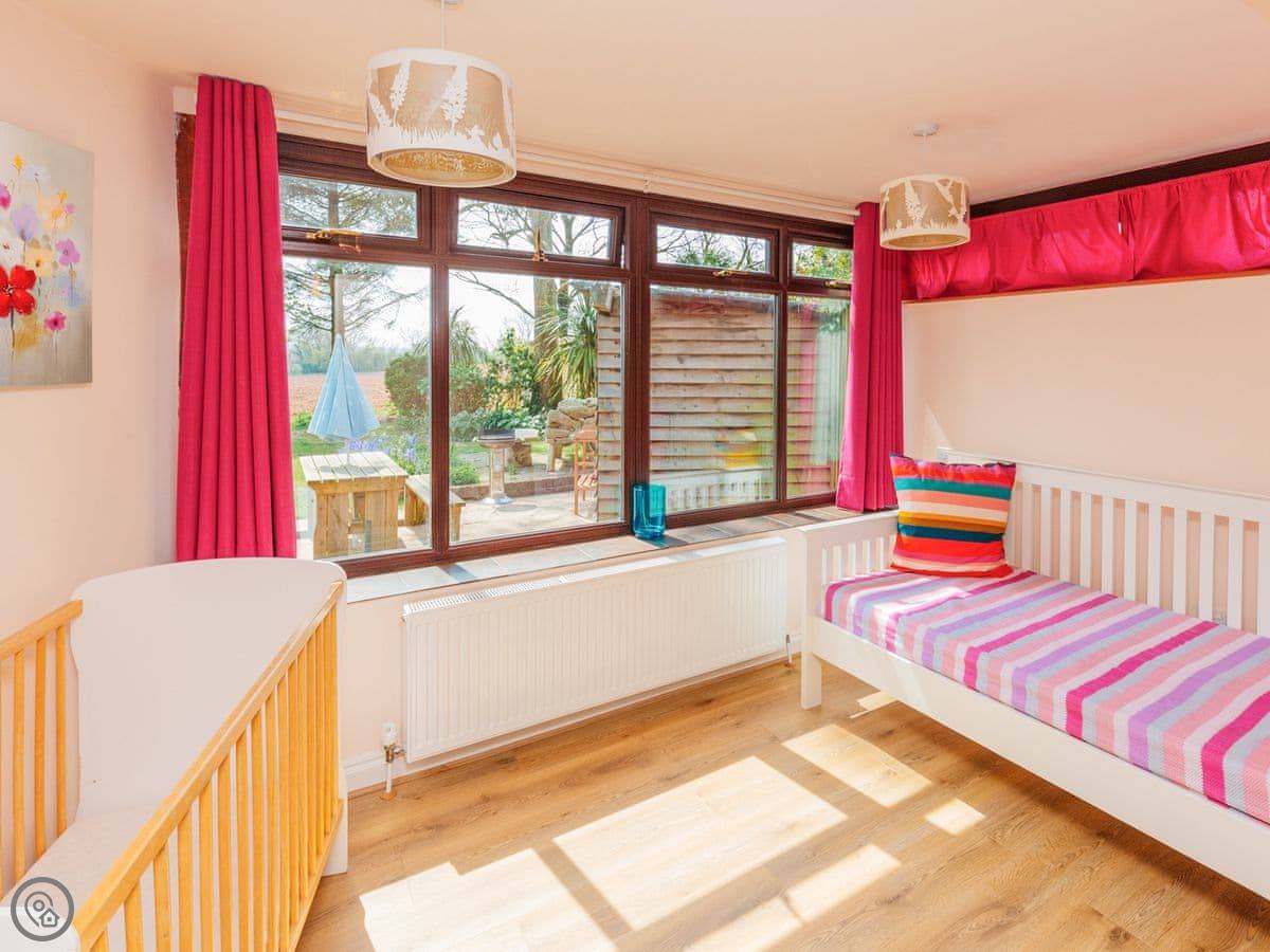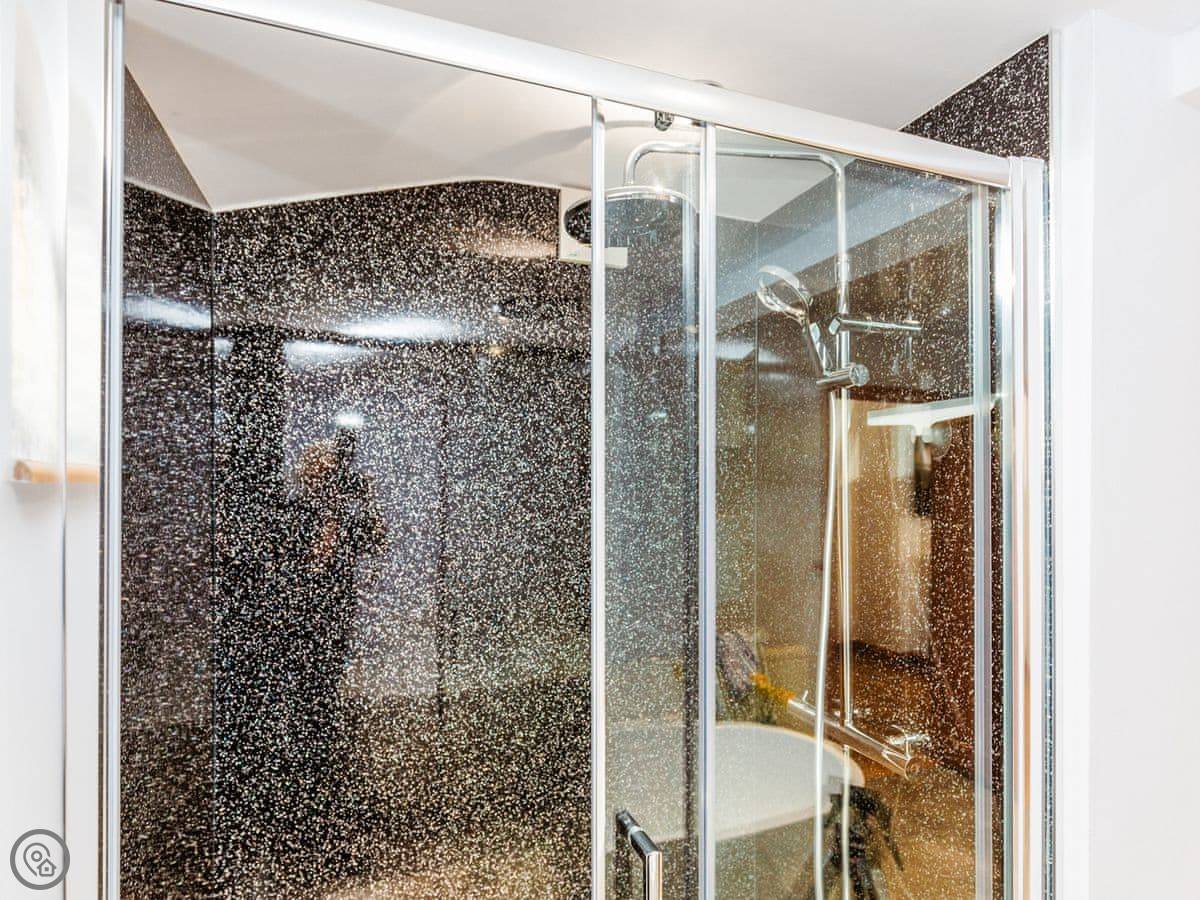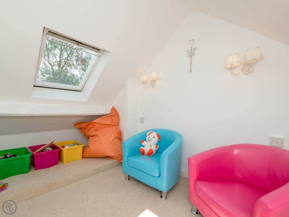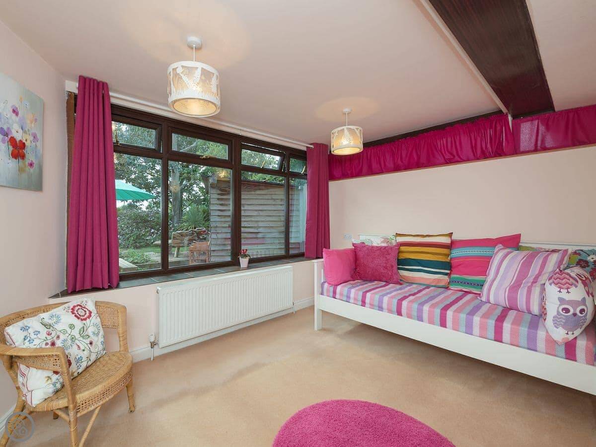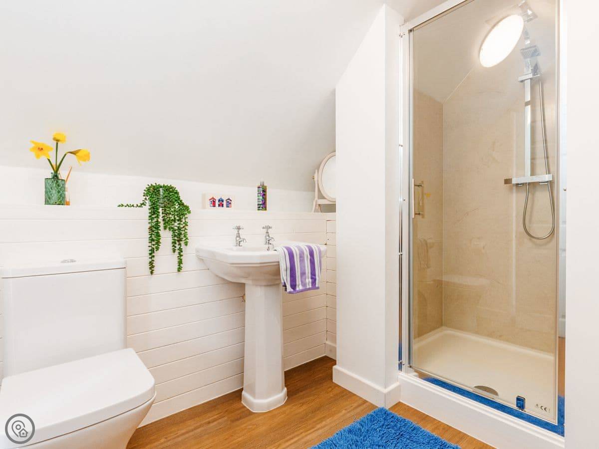 The property is set up for dogs. There's a utility room with throws, towels and a washing machine. Outside, there's a shower for washing dogs off. The garden is fenced all round.