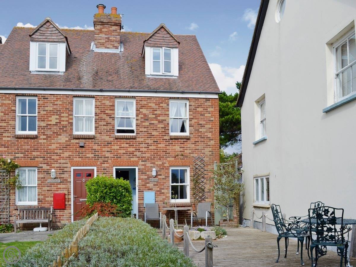 Riggers Cottage is on the waterfront in Bosham. It's a town house, right on the lane. The tide comes right up past the front gate, which is fun.