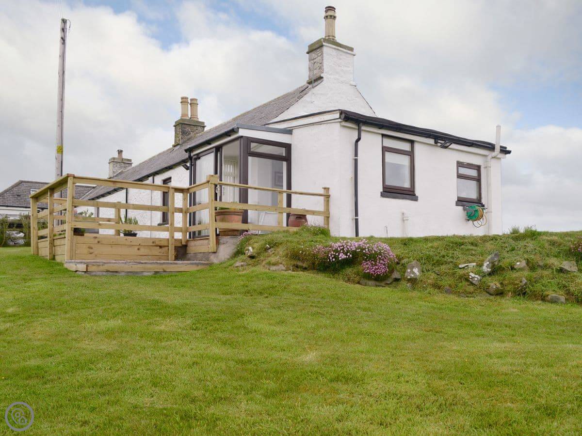 This traditional semi-detached Galloway cottage, adjacent to the owners’ home and situated on a quiet country lane, is surrounded by rolling countryside and has fantastic views to Corsewall Lighthouse and over the sea to Arran and the Mull of Kintyre.