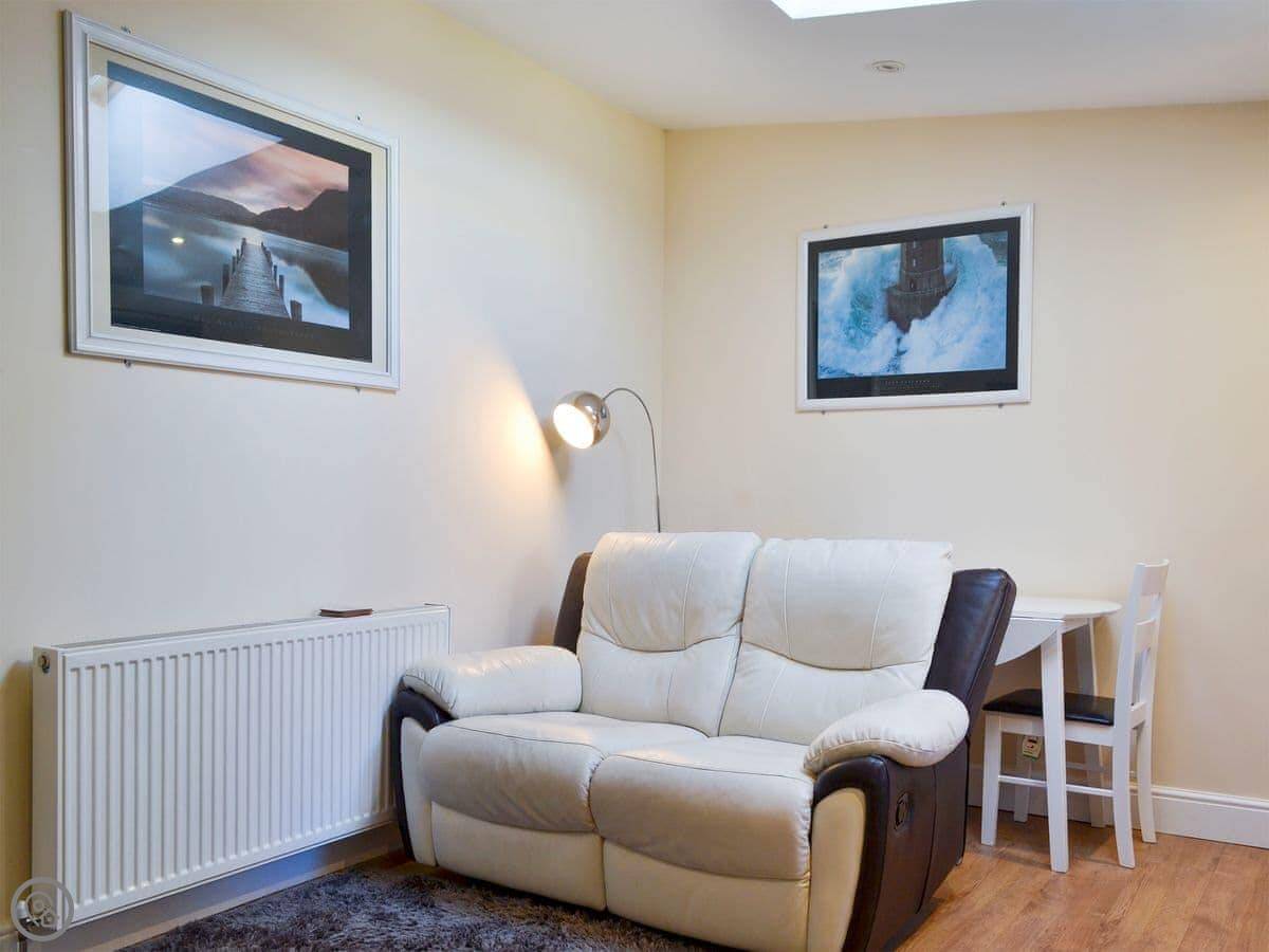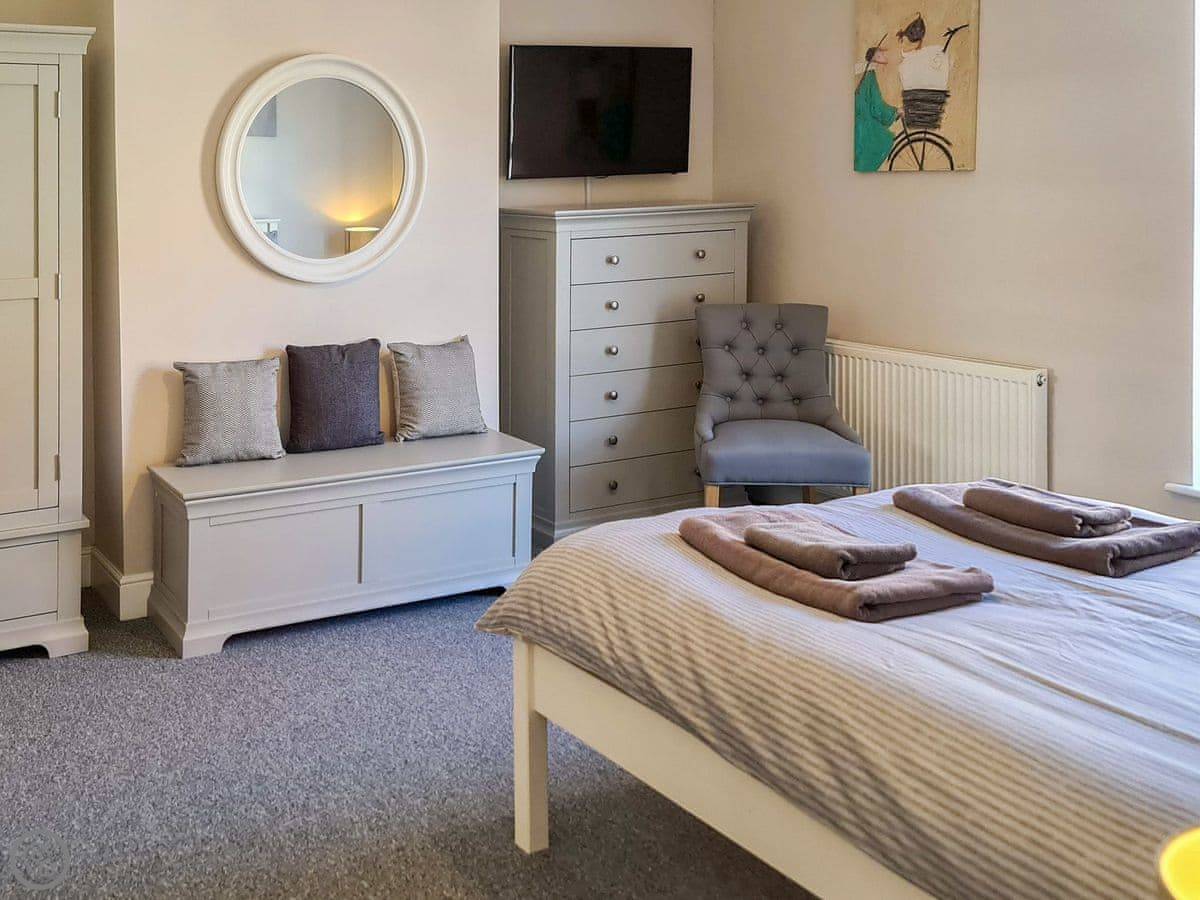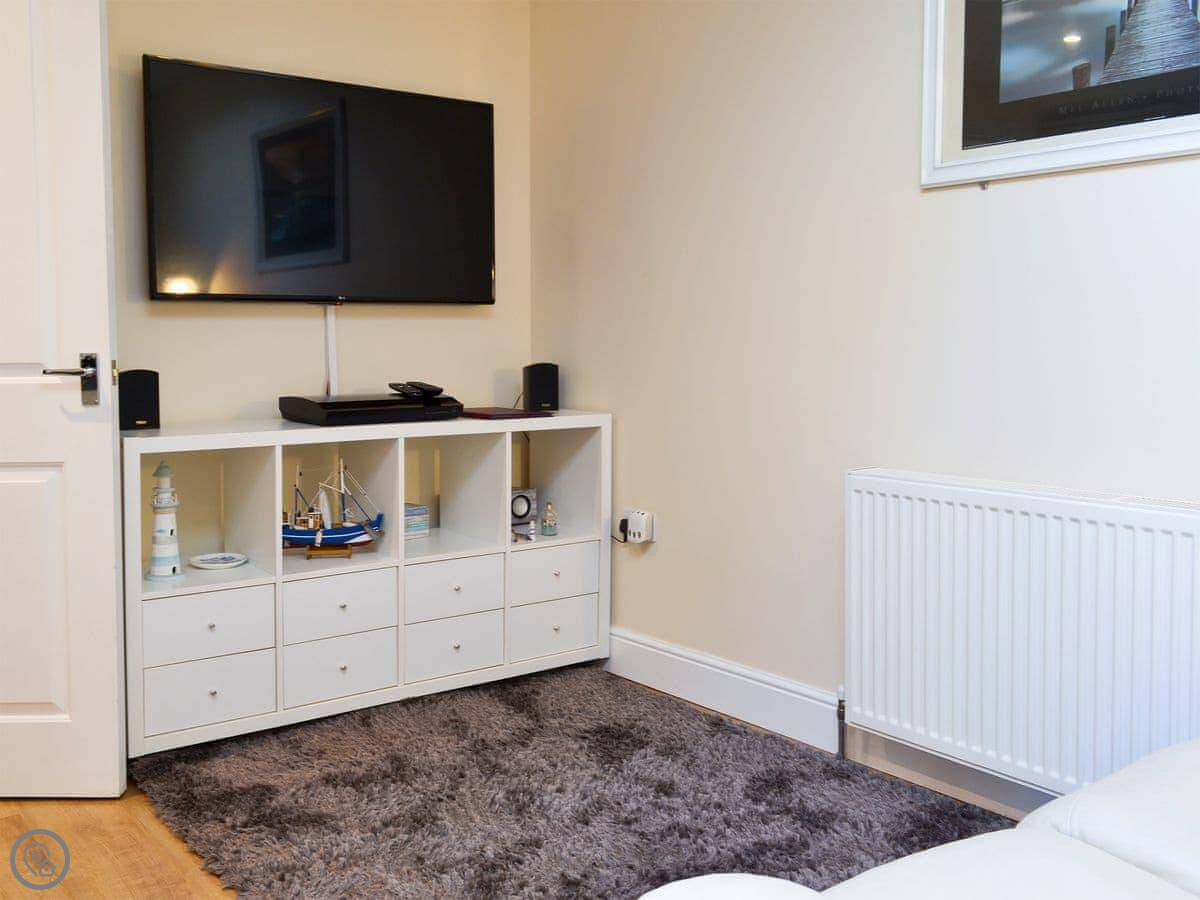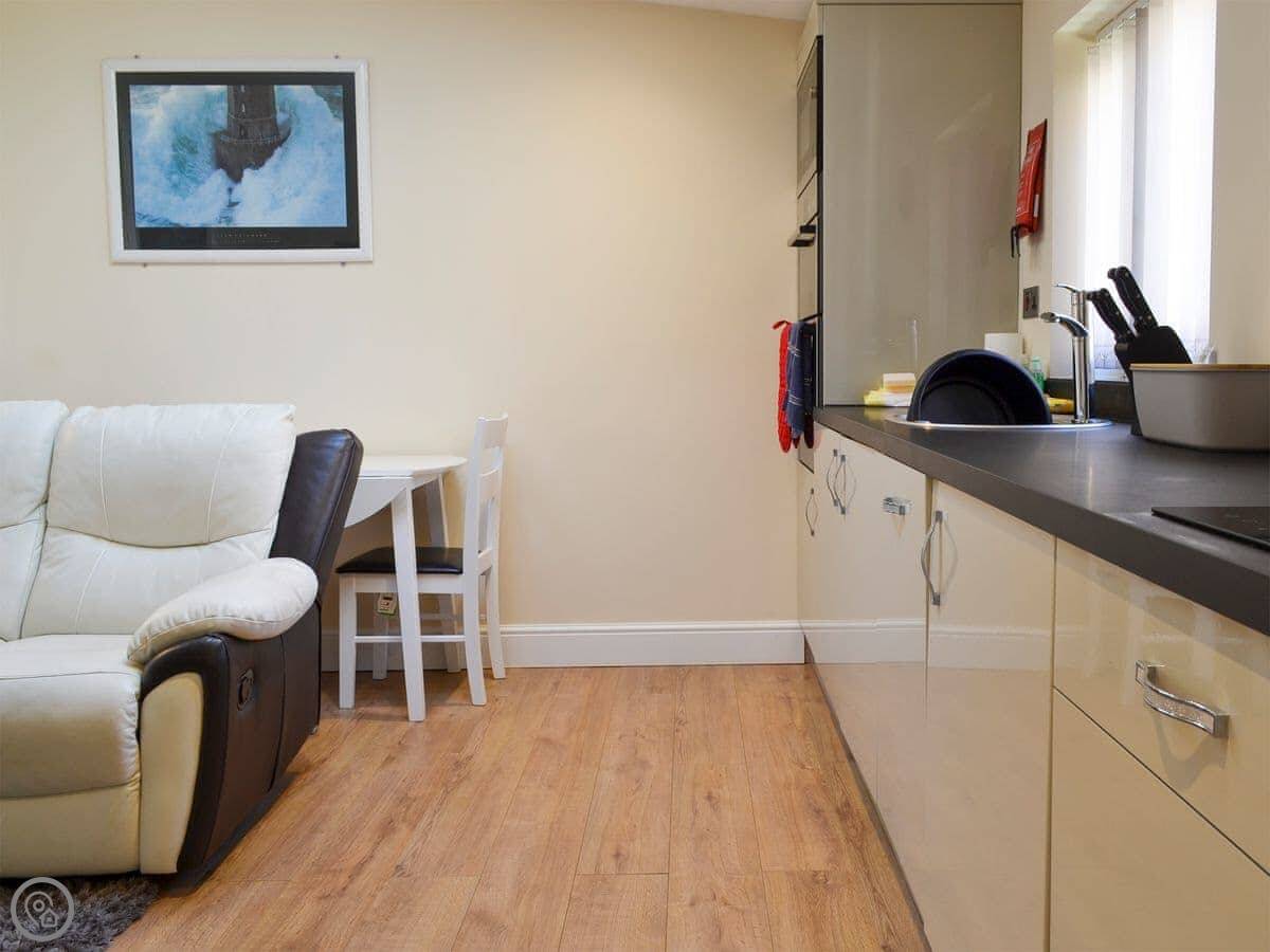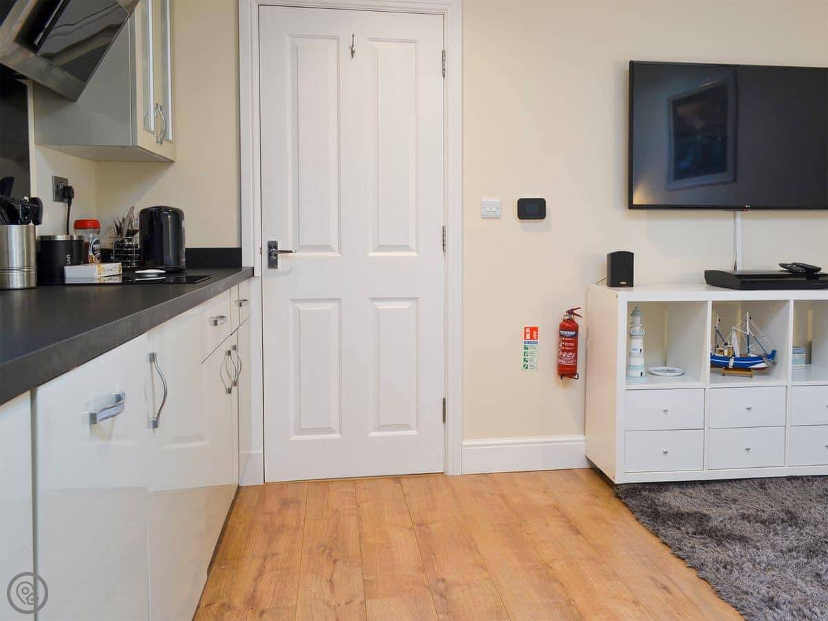 The big thing is the location. You're a five-minute walk from the beach, and maybe a minute more to the town. The beach is shingle and sand when the tide's out. The town has the usual seaside shops and a lot of good places to eat. Two or three really good ones. There's a pub close by, about 250 yards, which does food.