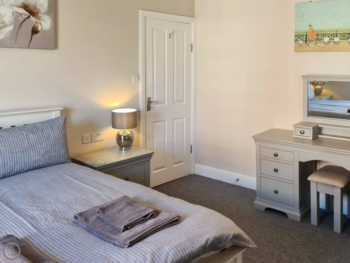 The Hideaway is exactly that. It's a small bungalow, detached, down a quiet lane behind the main streets in Sheringham. Sleeps two. One bedroom, one bathroom. It's got a four-star rating, so it's all there, modern and clean.