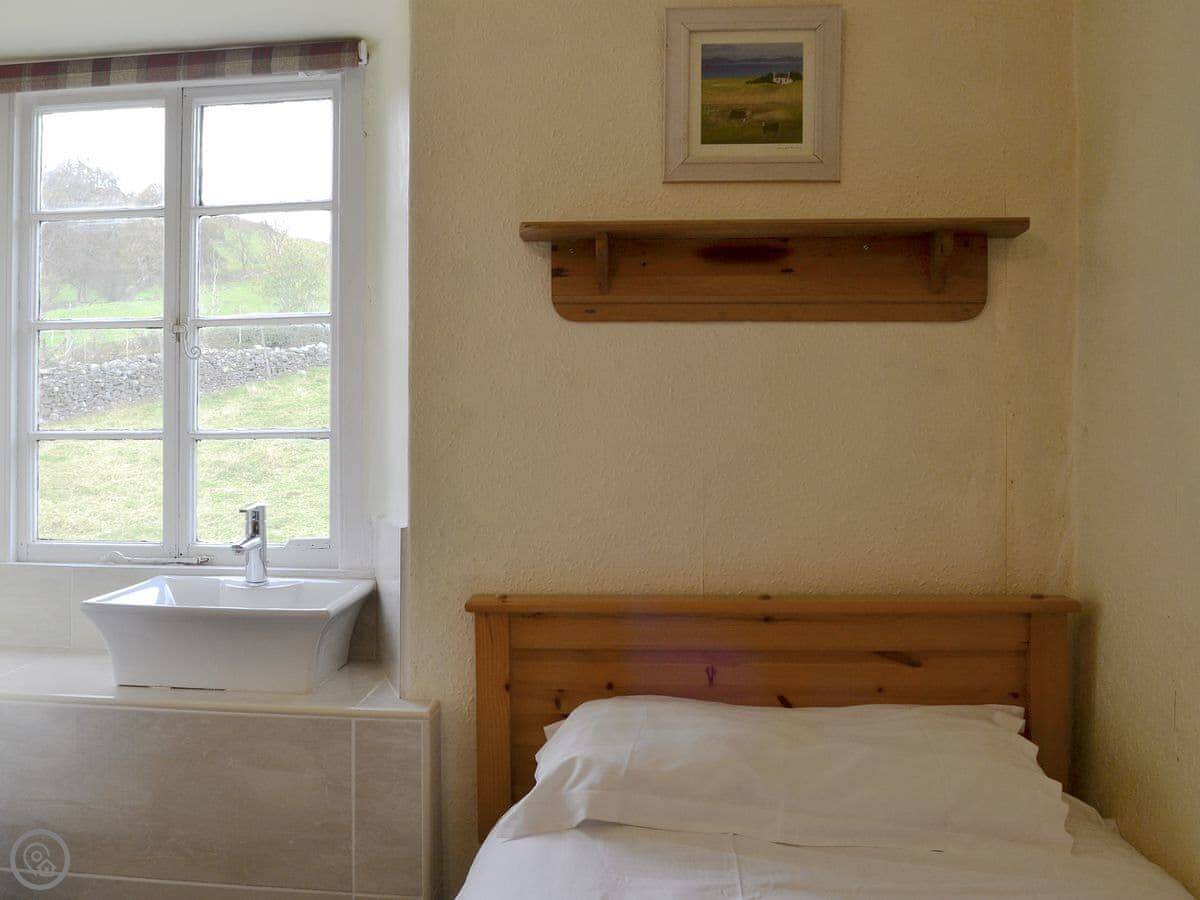 There's a south-facing garden. It gets the sun. You can walk into Ambleside for shops and pubs in about ten minutes. The nearest ones are about half a mile.
