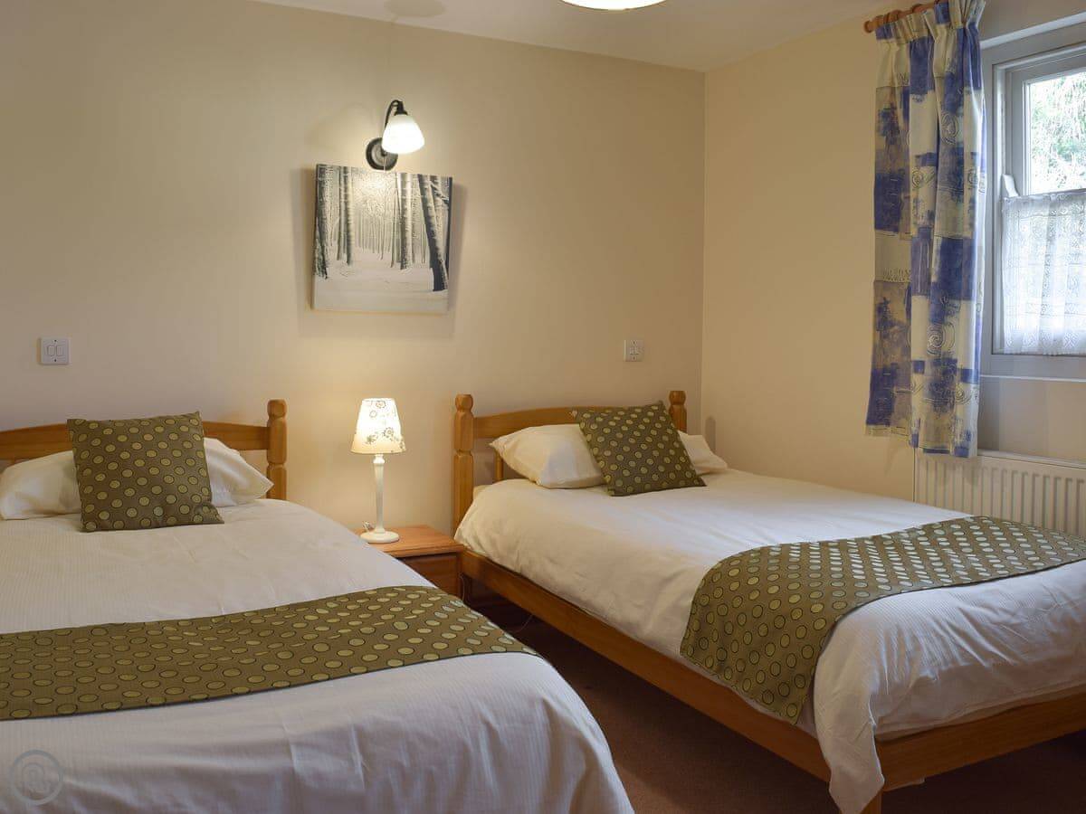 The cottage sleeps four. Two bedrooms, one bathroom. It's a 3 Star rating, so it's comfortable and clean. There's a wood burner in the living room. The ceiling is beamed and vaulted.