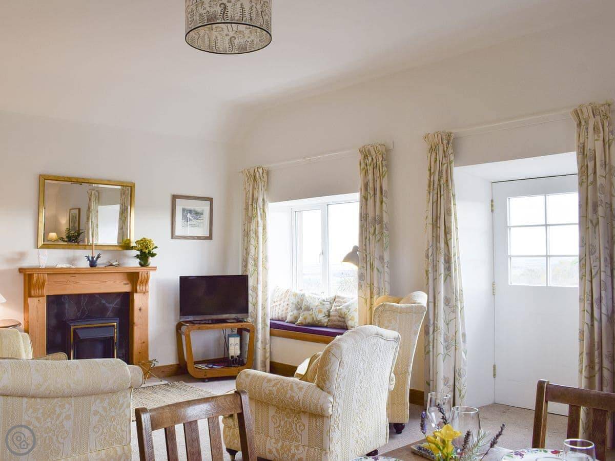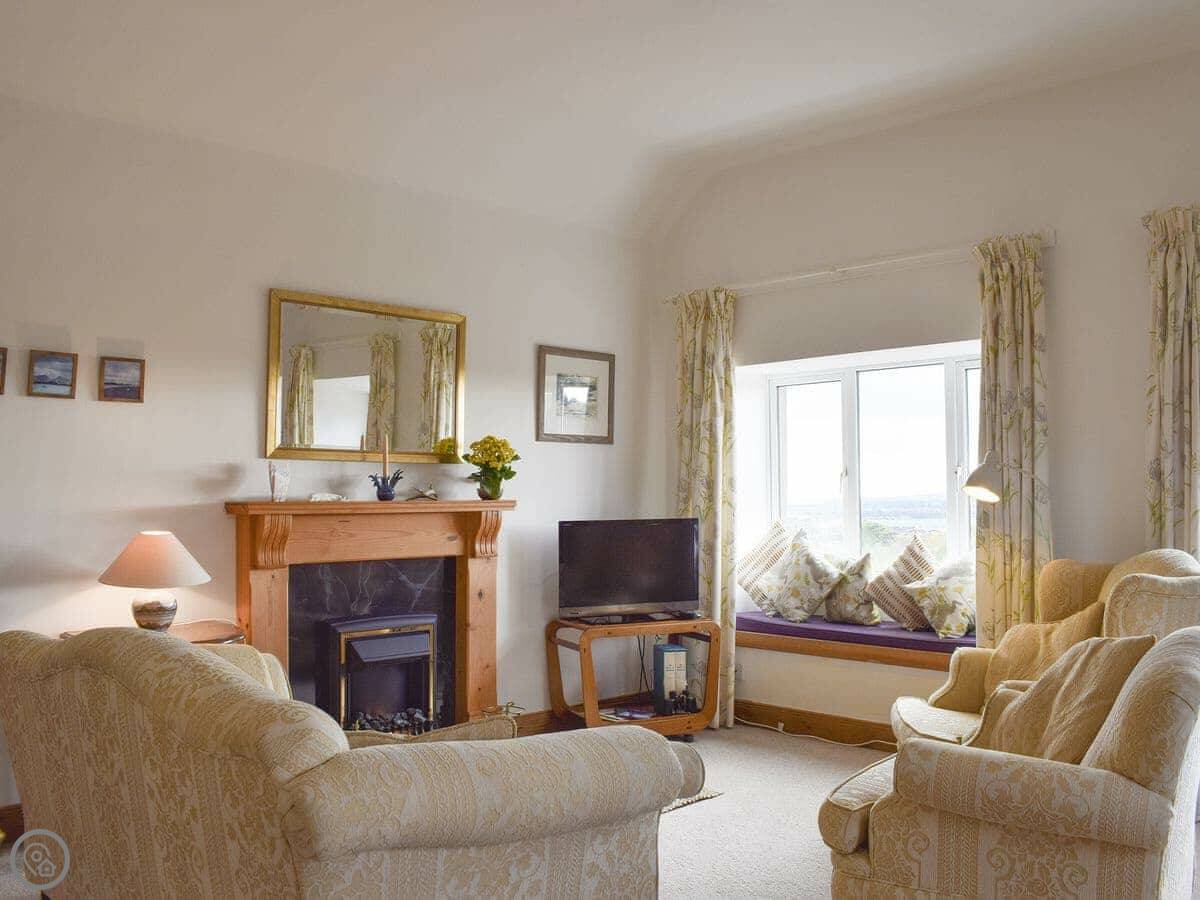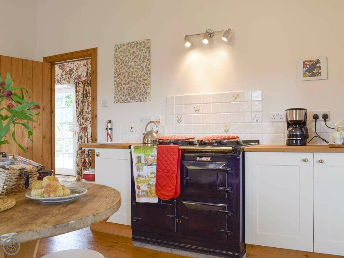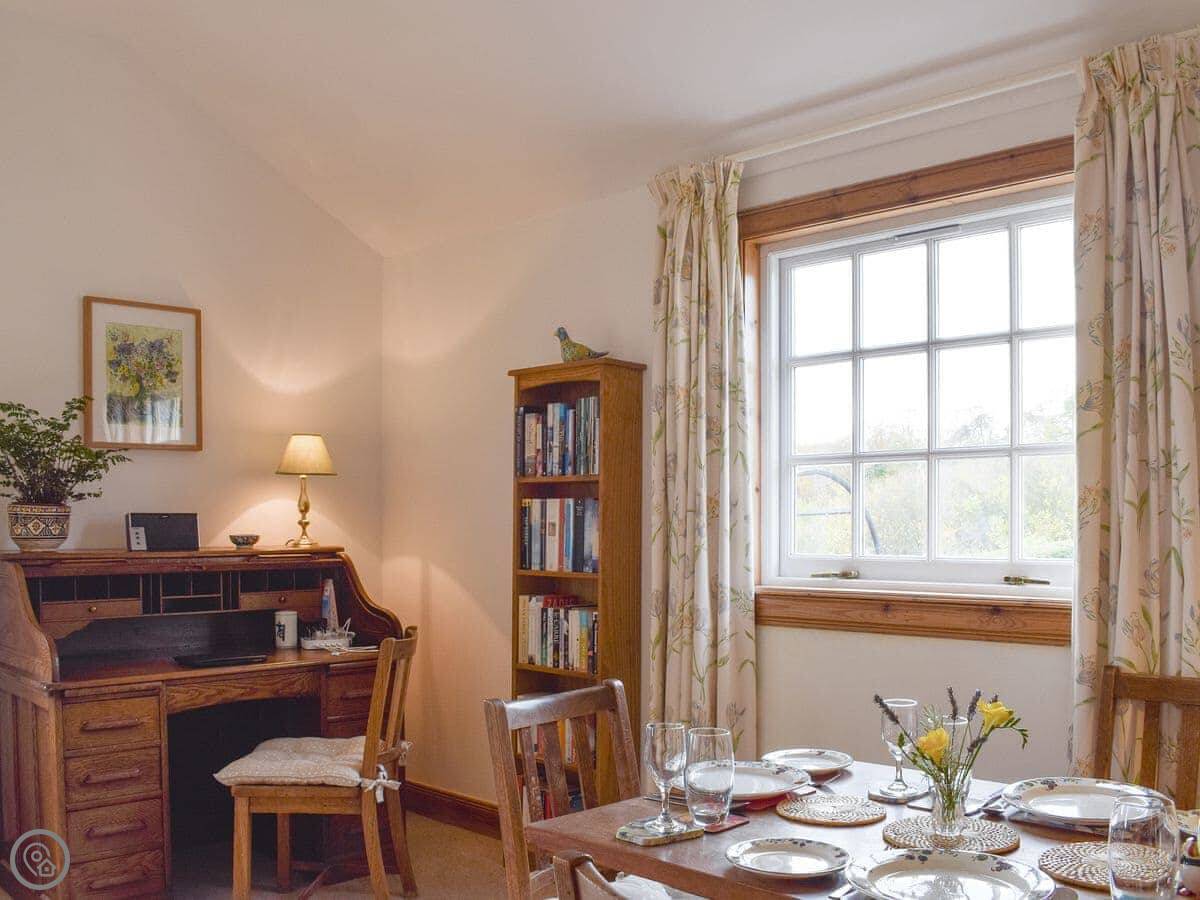 Guests will find a real home from home in this warm and welcoming holiday cottage at any time of year. Inside this wing of the owners’ home and accessed by a steep gravel drive, the open plan living space is spacious and bright with cosy seating and a window seat offering panoramic views across the surrounding farm lands to St Andrews Bay, the Eden Estuary and St Andrews itself. The kitchen area with an Aga, as well as an electric cooker, is well-equipped and ideal for practising your cooking skills, or creating a special meal, with a dining table where everyone can sit together and plan the next day’s activities.