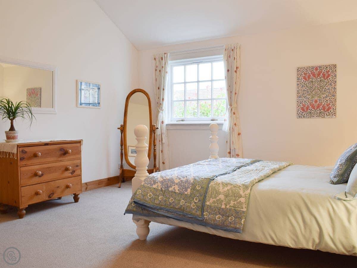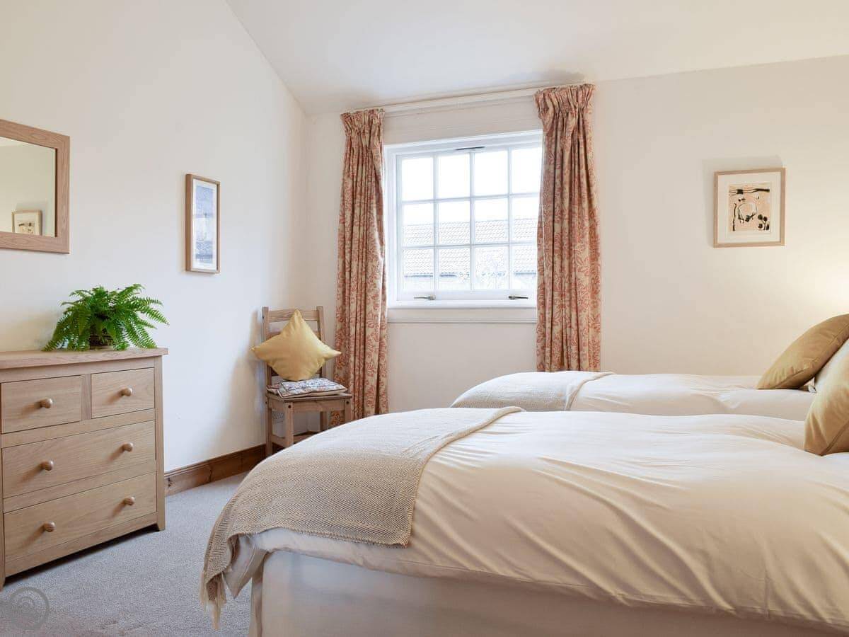 Lucklaw Steading dates back to the 18th century, former farm buildings which have been converted and renovated to a good standard; the cottage, which is all on one level, is a private wing of the main house. The Steading is set within 2 acres and there is much to explore on foot from your doorstep; woodland and hilltop walks will appeal to hikers, birdwatchers, and nature lovers alike. With all this fresh air, you will be looking forward to a good night’s sleep. Why not ease those tired limbs after a day out with a deep bubble bath, as well as the option of a shower in the four piece bathroom. The utility and boot room is shared with the owners and houses the washing machine and tumble dryer.