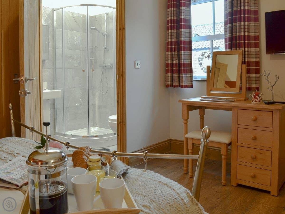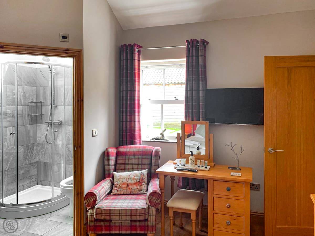 Aysgarth Lodge is a barn conversion in Seamer, near Scarborough. It's a five-star place, which means it's finished to a high standard. It sleeps four, with two bedrooms and two bathrooms.