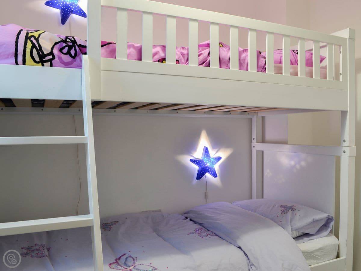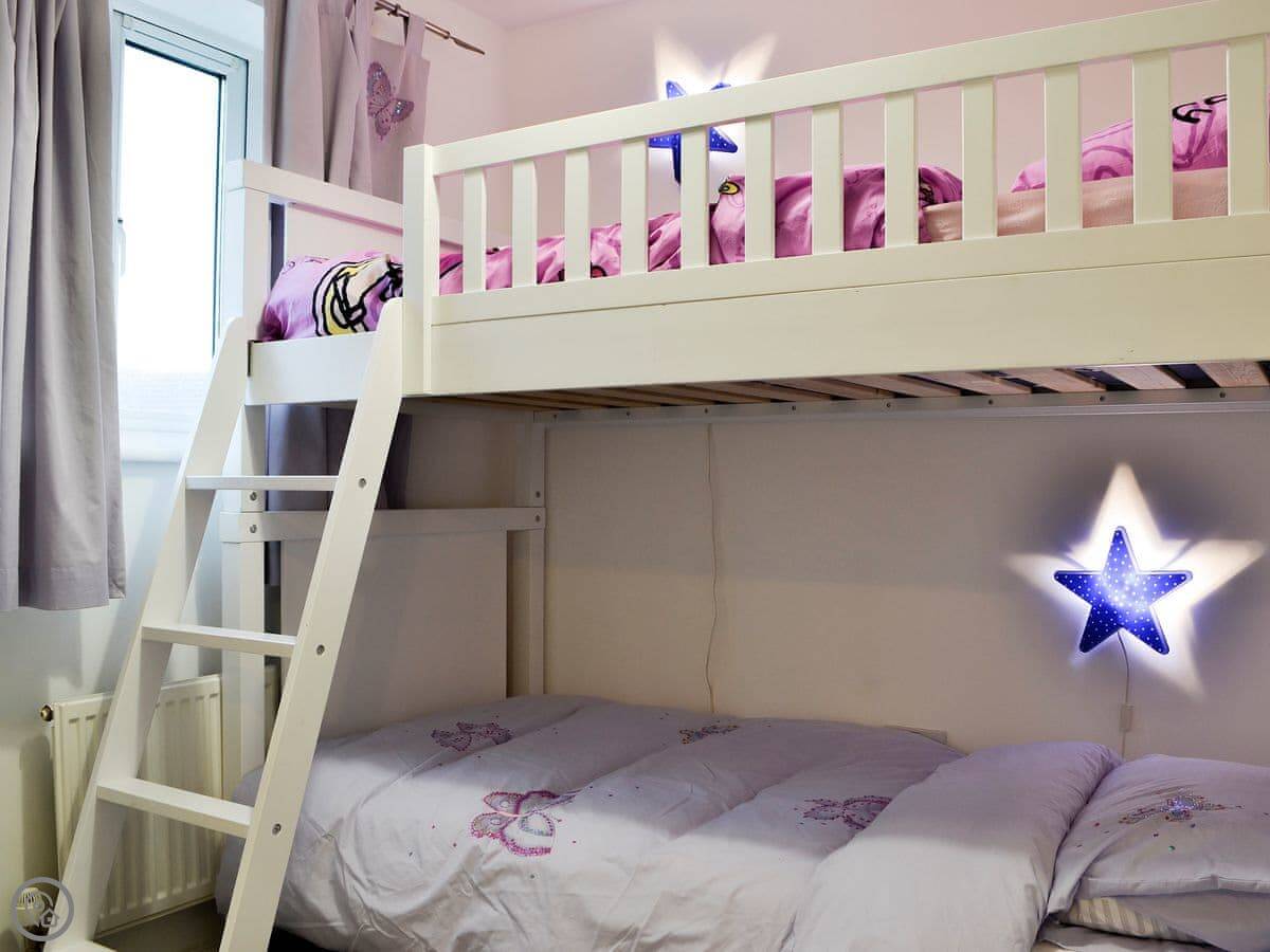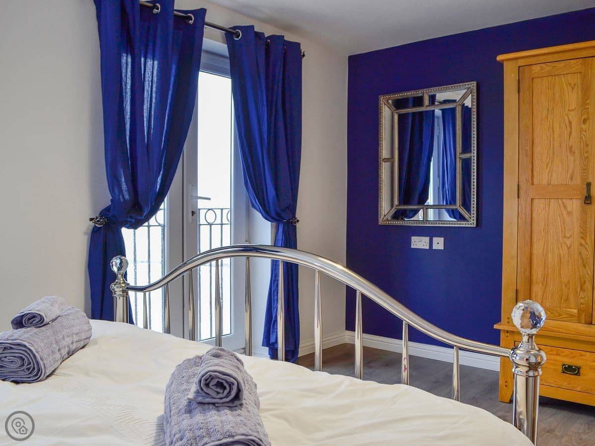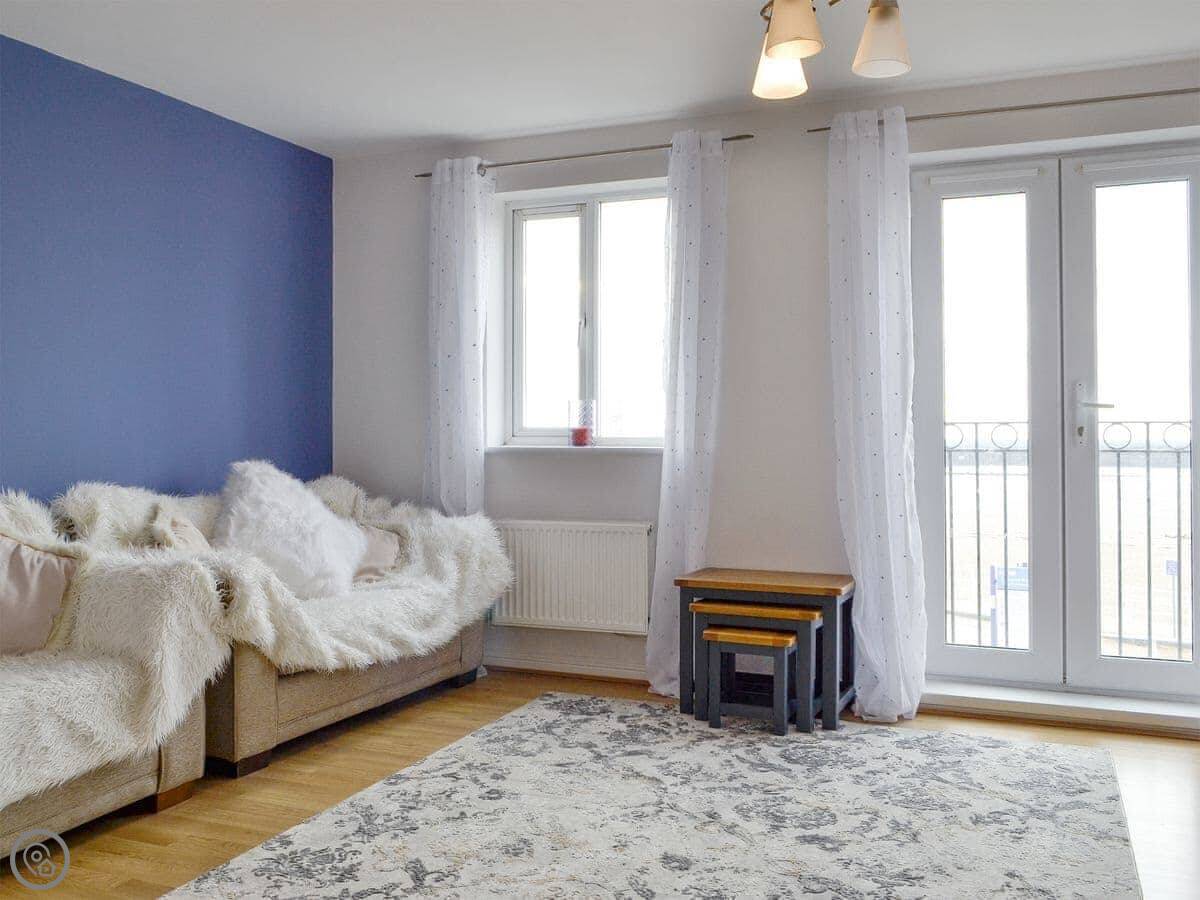 It sleeps five, in three bedrooms. There are two bathrooms. It's got a 4 Star rating. The house has been done up, it's clean and comfortable. The living room is on the first floor to get the view. There's a Juliet balcony there, good for watching the sun go down.