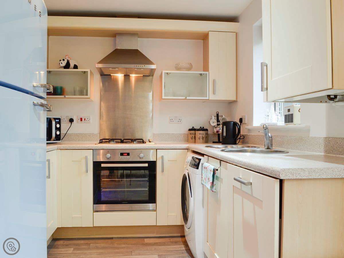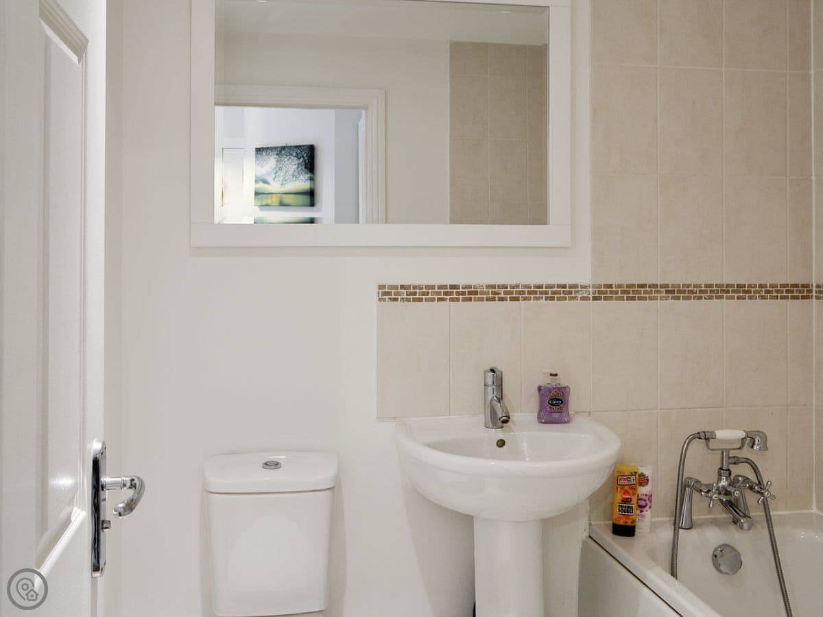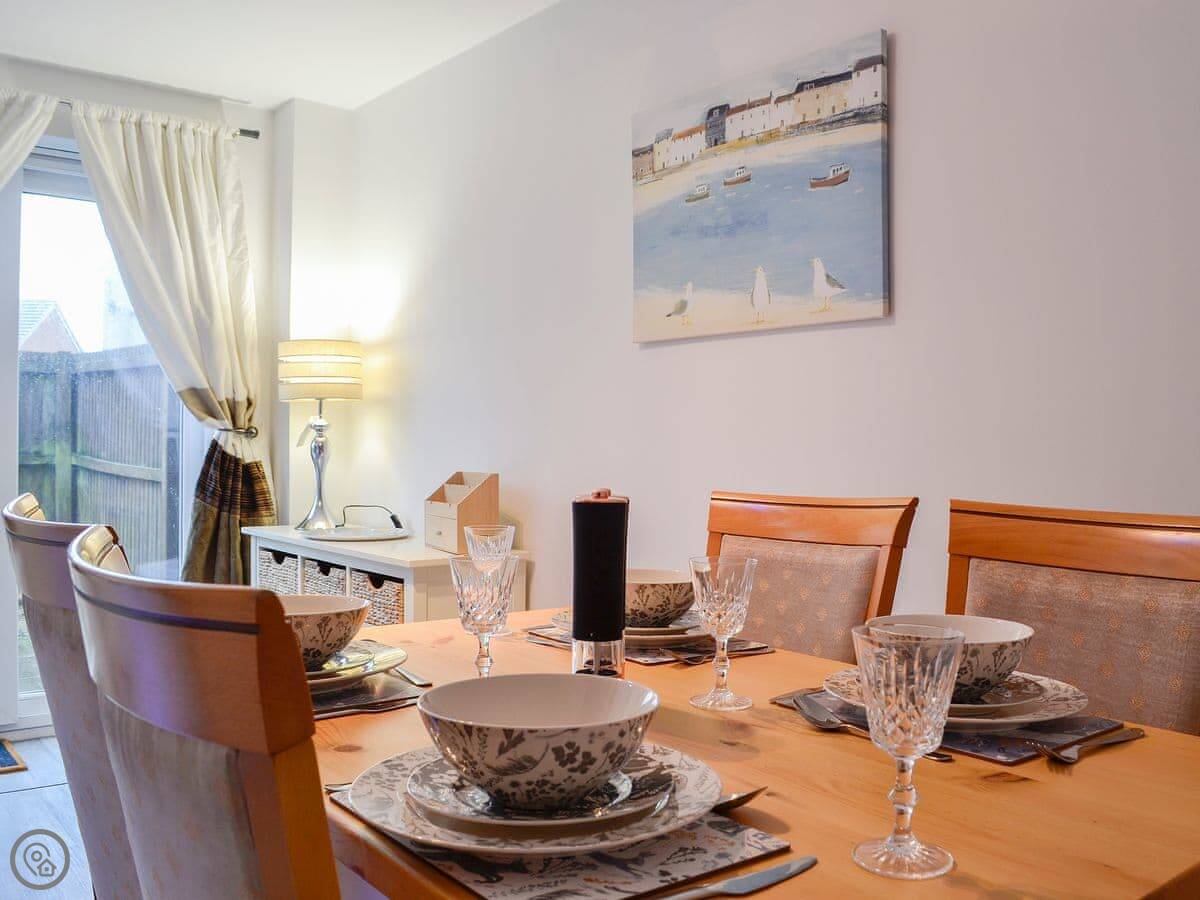 For facilities, pretty much everything is included. Bedding, towels, WiFi, washing machine, dishwasher. There's parking on the drive. You can bring up to two dogs. The house is wheelchair accessible on the ground floor, but the living room and main bedrooms are up a flight of stairs.