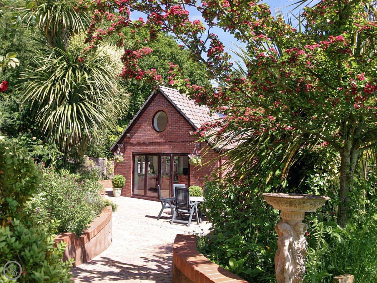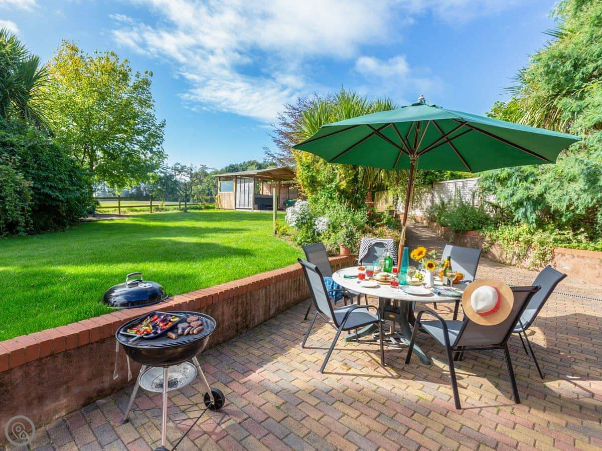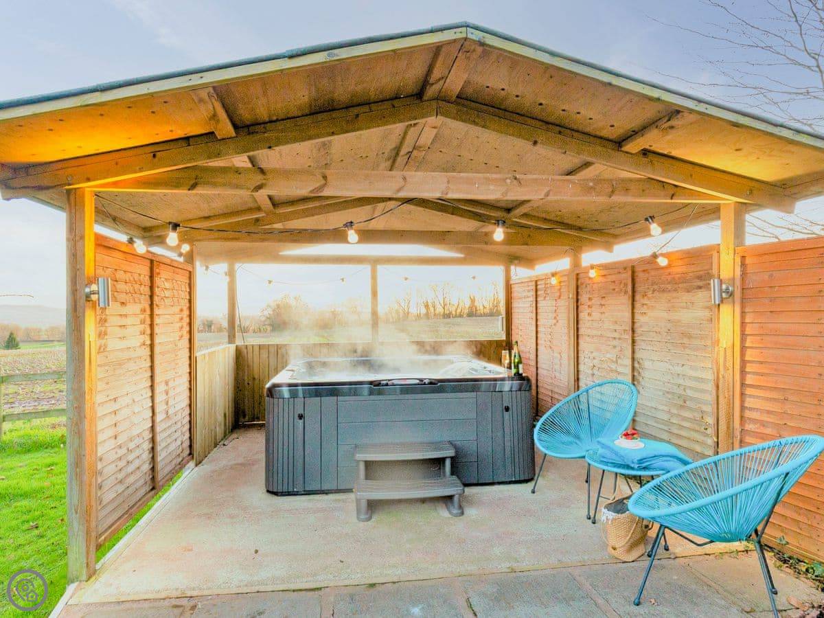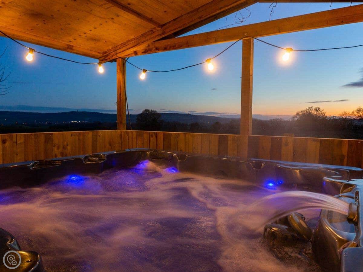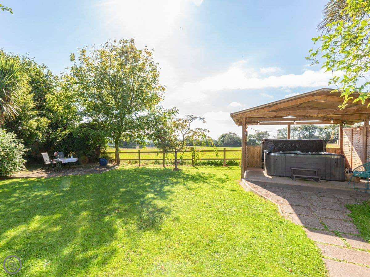 The garden is enclosed. There's a hot tub out there, under a cover so you can use it in the winter. It fits six.