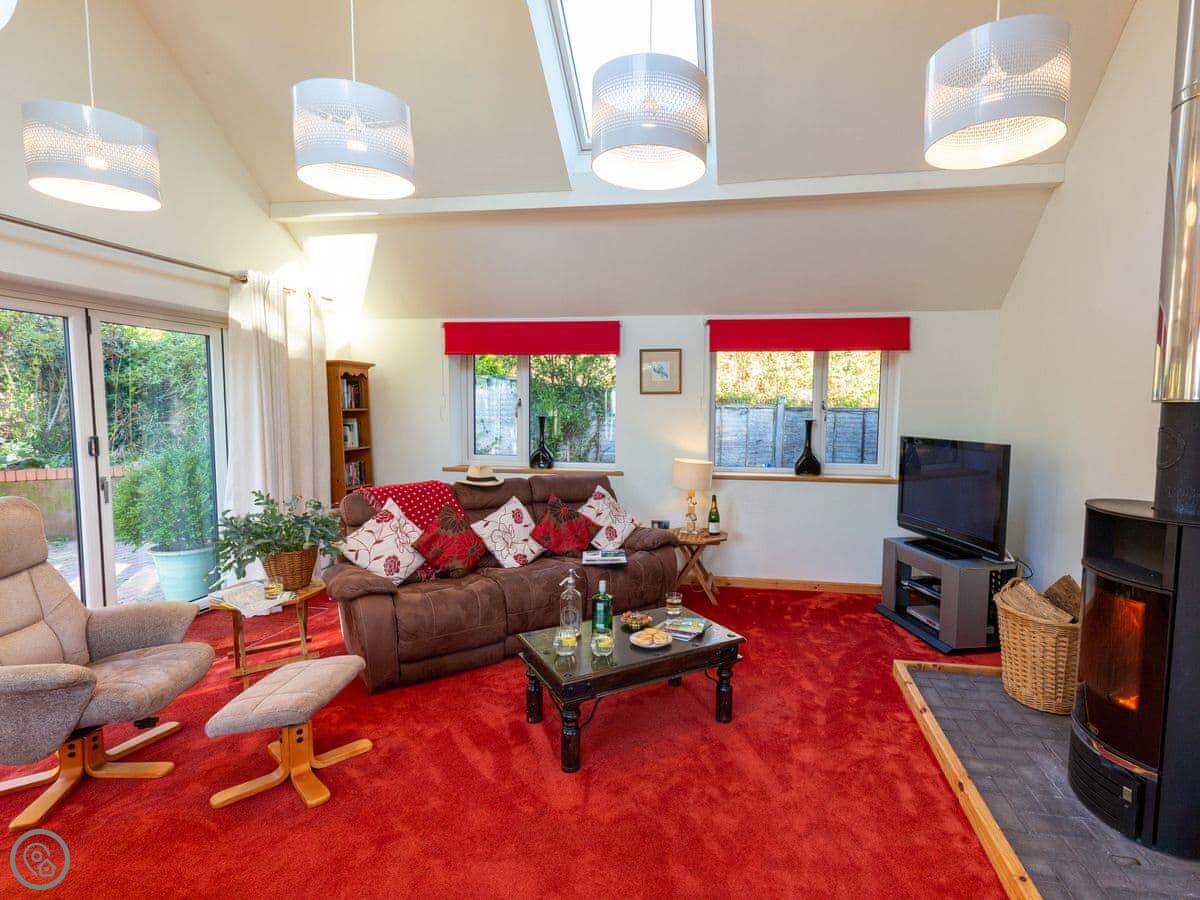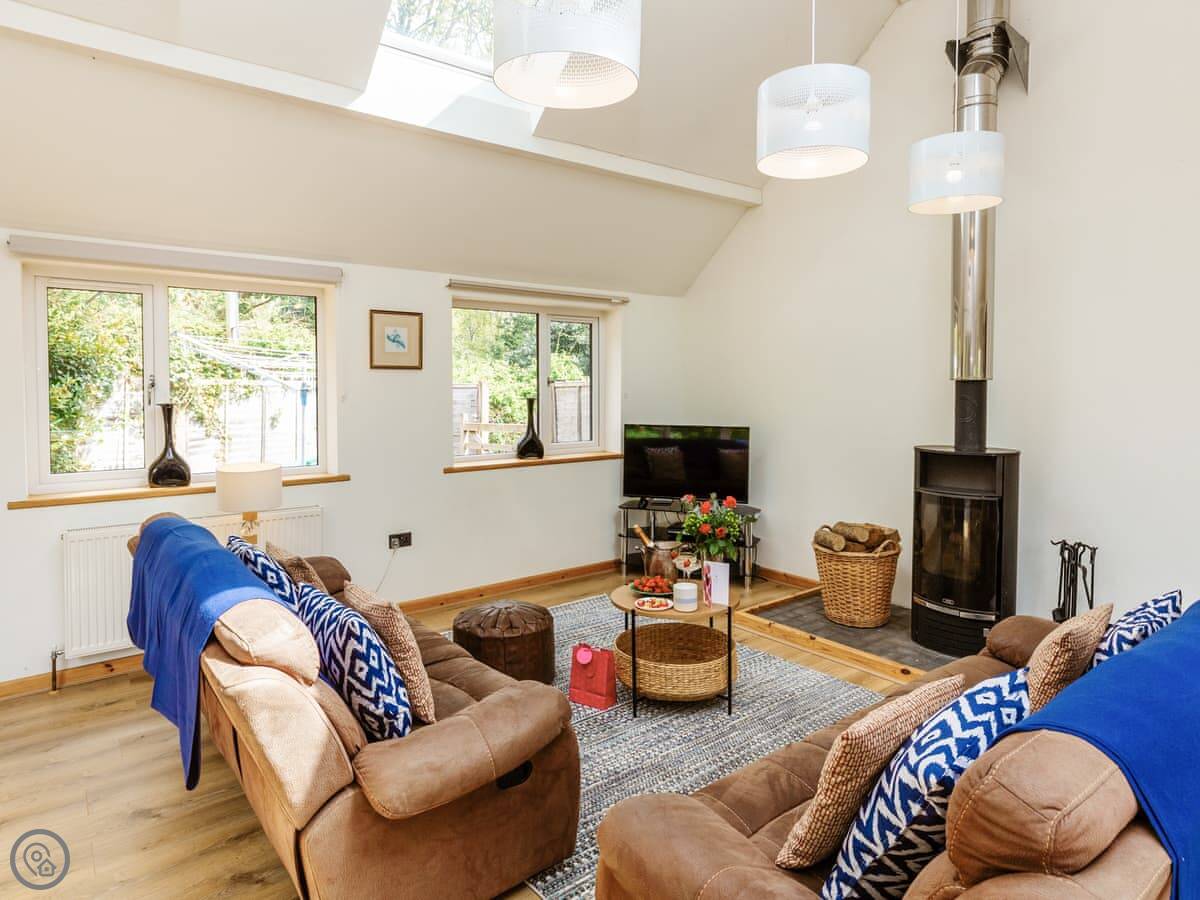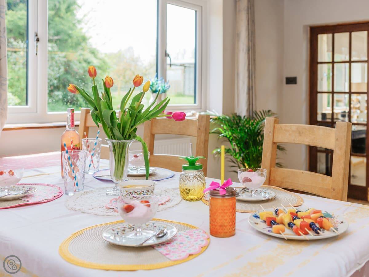 It's set up for kids. There are toys and games here, and a cot and highchair if you need them. There's a shared playground with swings and slides you can walk straight onto from the garden.