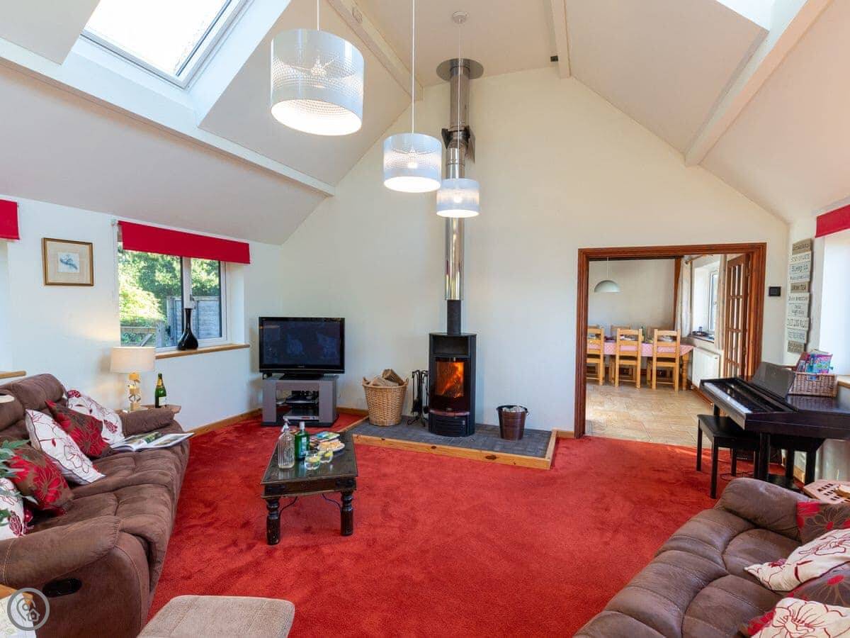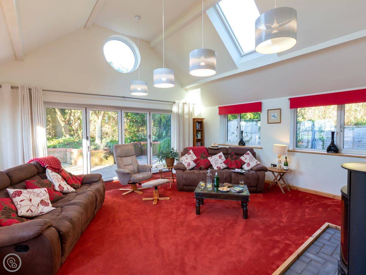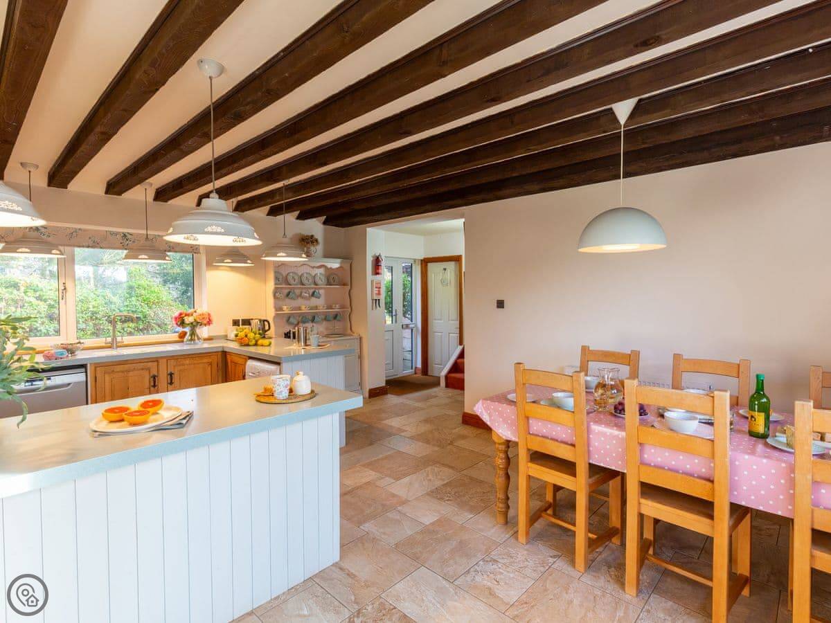 It's set up for kids. There are toys and games here, and a cot and highchair if you need them. There's a shared playground with swings and slides you can walk straight onto from the garden.
