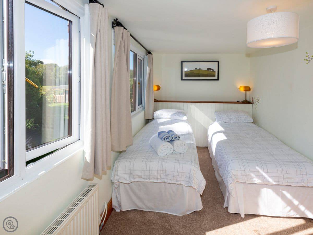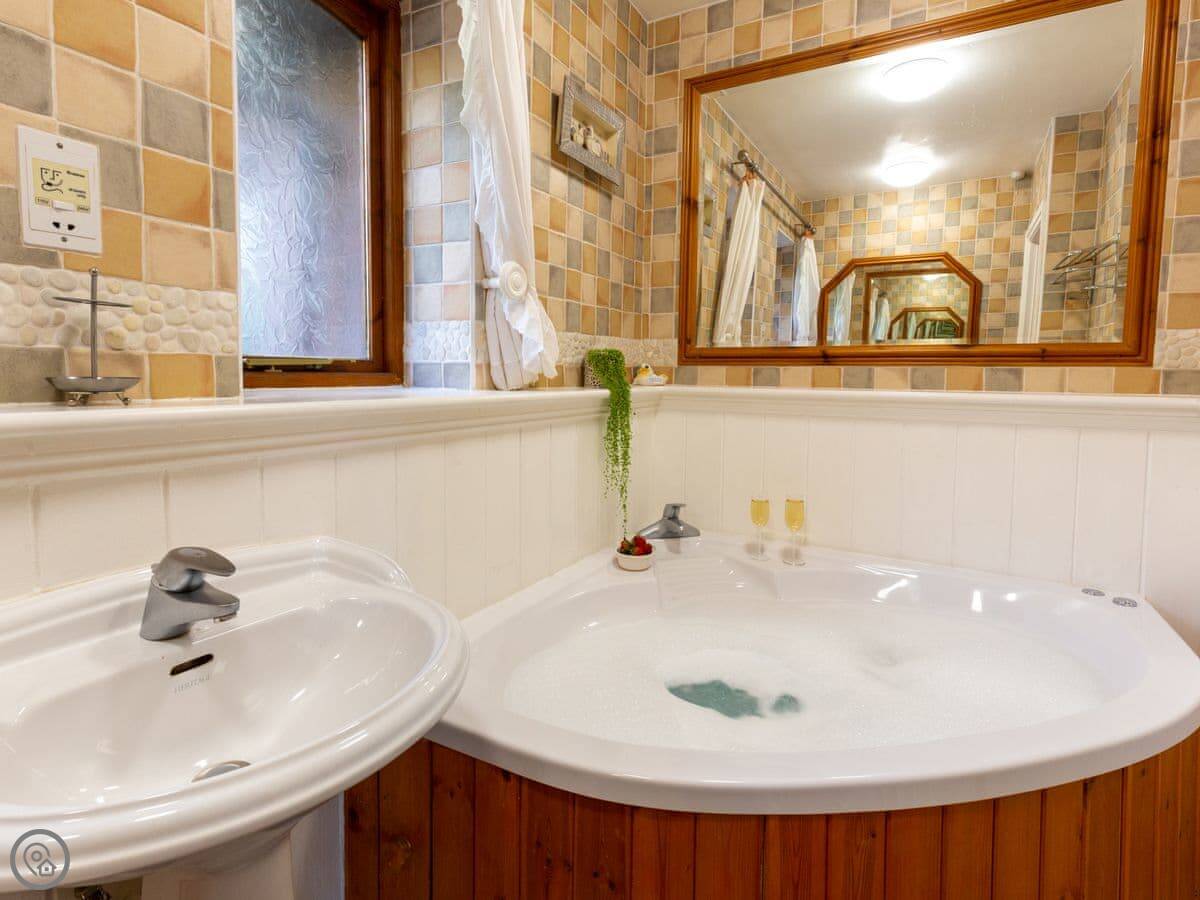 It sleeps six. Three bedrooms, two bathrooms. One bathroom has a corner whirlpool bath, and one of the bedrooms has its own shower en-suite. There's a separate shower room too. It's got a 5 Star rating. It's well looked after.