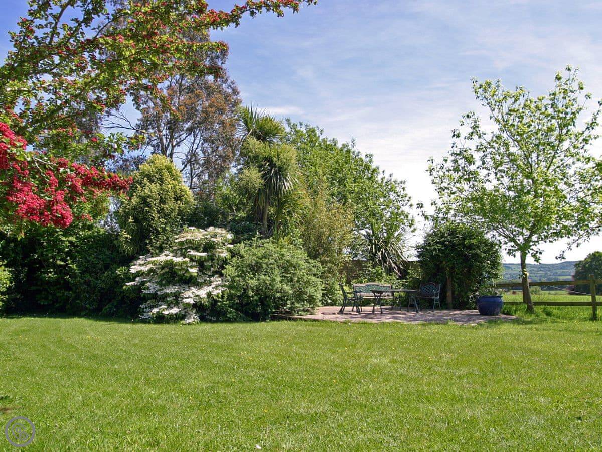 Woodlands is in Langford Budville. It's a semi-detached house next to a garden nursery, but it feels fairly private. There's a nature reserve next door, about 220 acres, and the views are out over the fields towards the Blackdown Hills.
