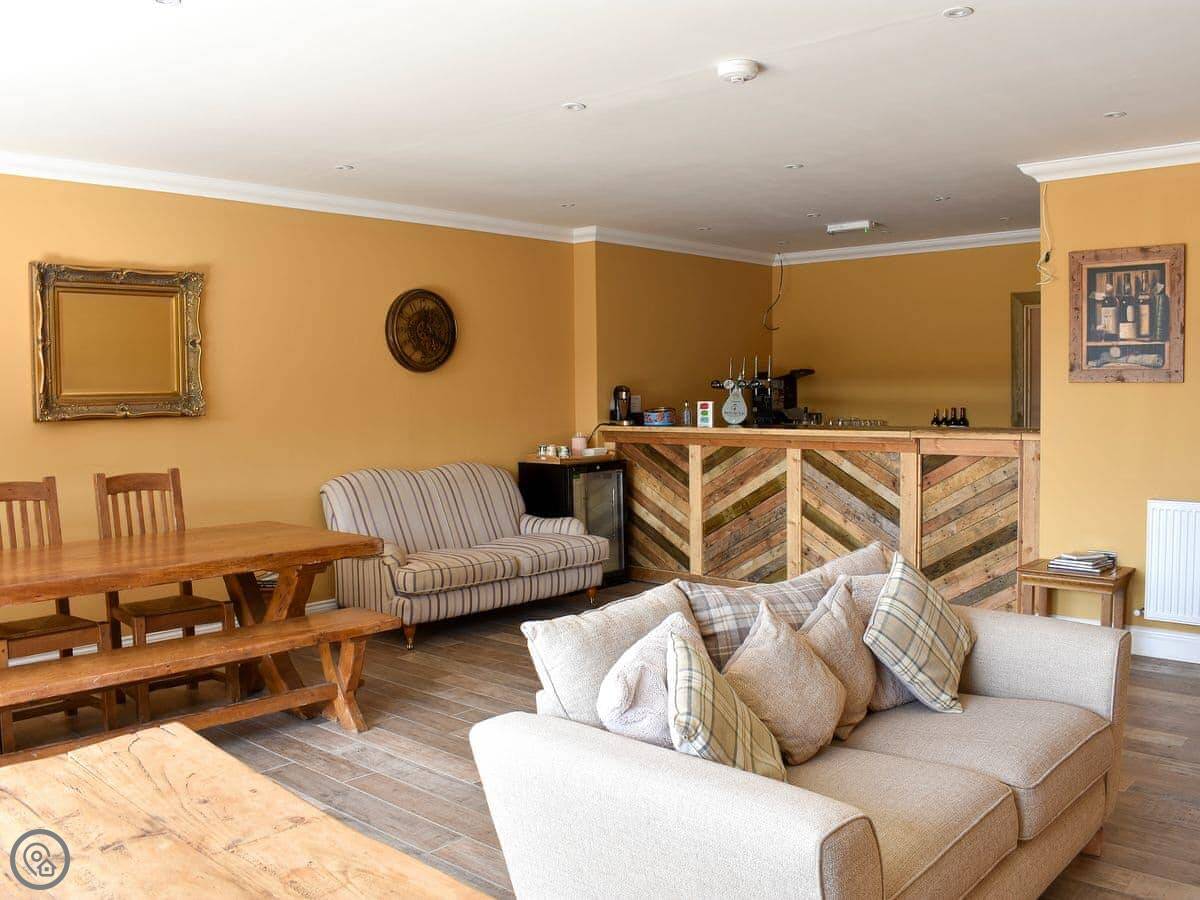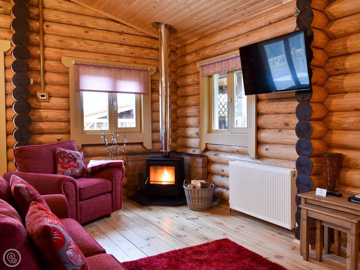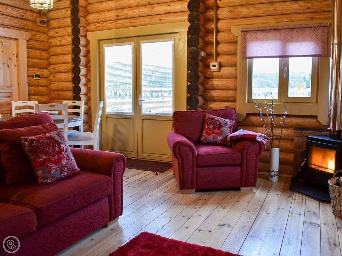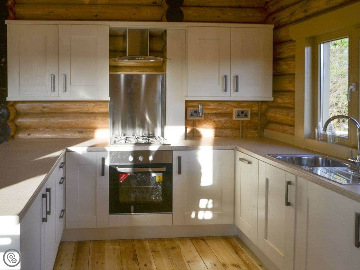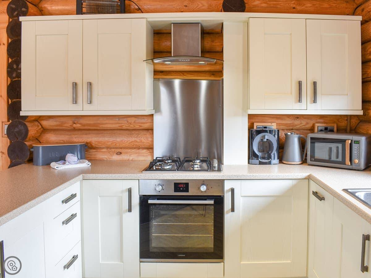 It's open plan inside. The living area has a wood burner. The kitchen has a gas hob, electric oven, fridge, freezer, dishwasher and washing machine. The bathroom has a good shower. Bedding and towels are included.