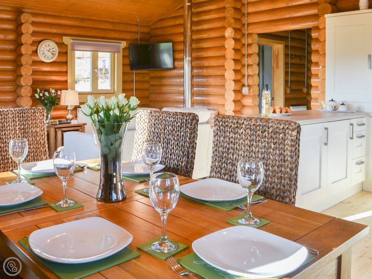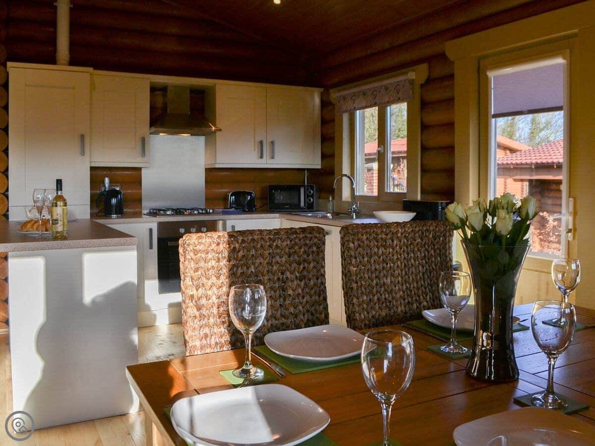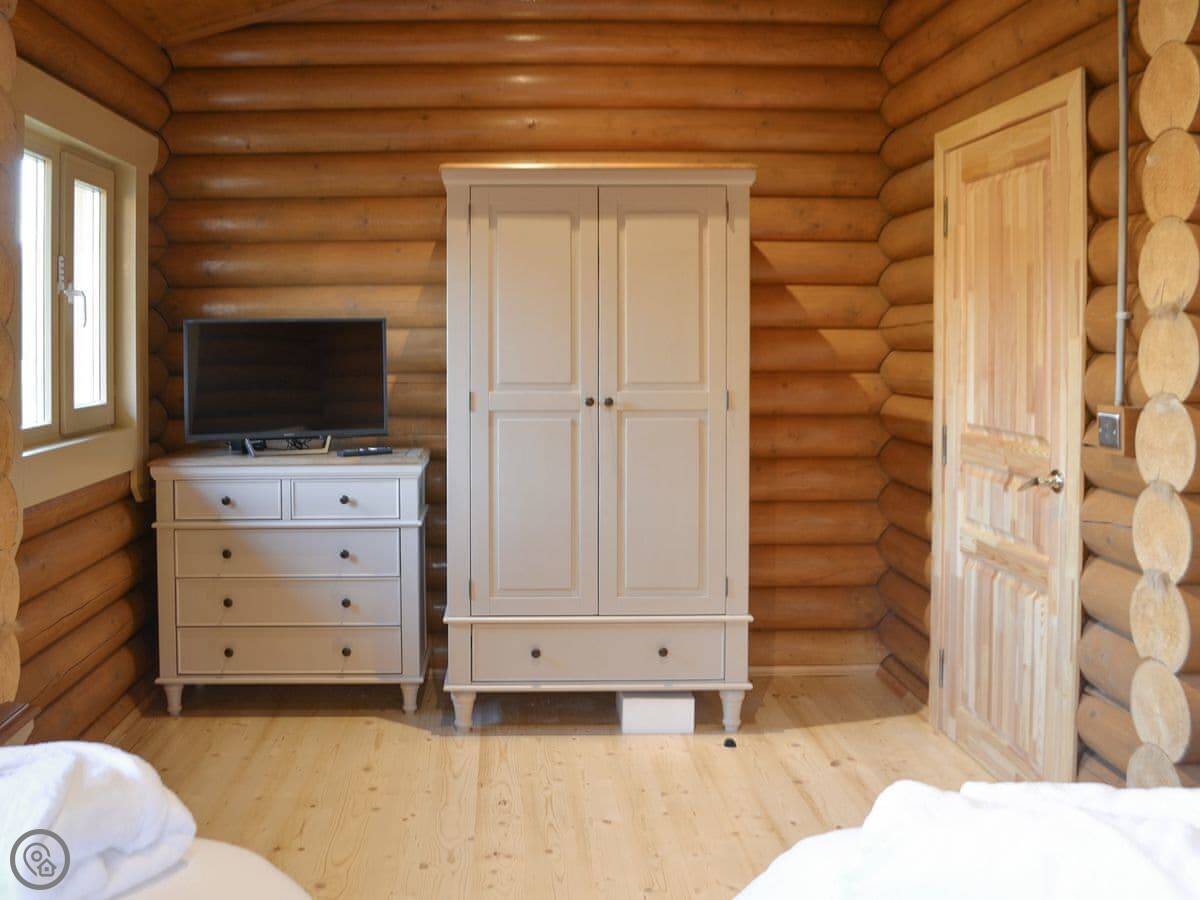 It sleeps six. Two bedrooms, one bathroom. It’s got a 4 Star rating. The living area is open plan. There’s a wood burner. The kitchen has a gas hob, electric oven, dishwasher, washing machine, fridge and freezer. The shower is good. The bathroom has a heated towel rail.