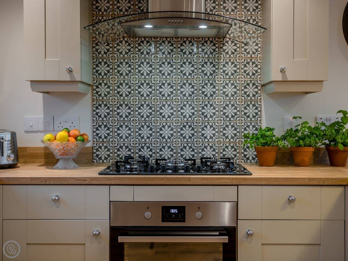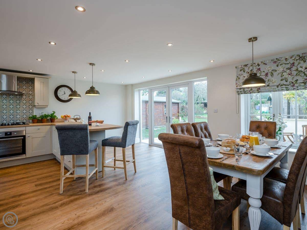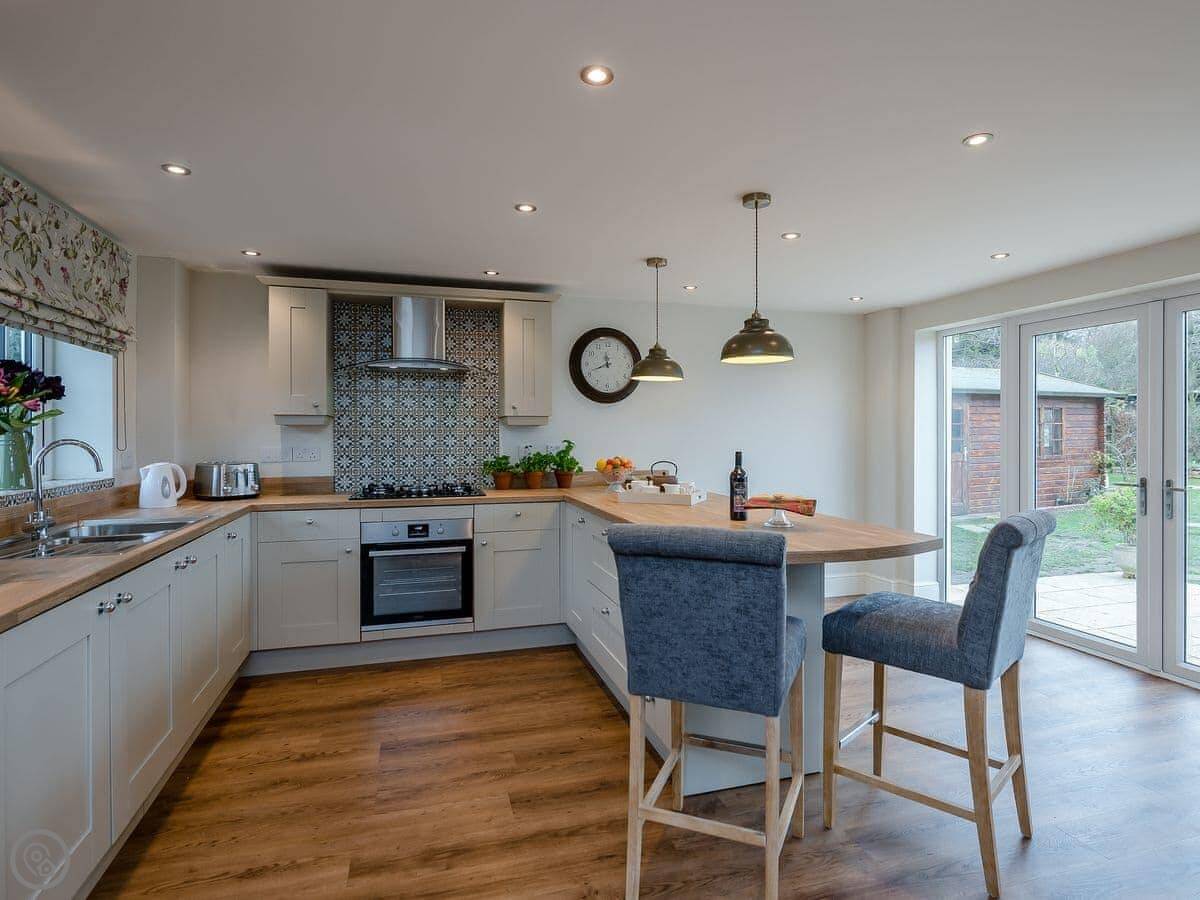 Downstairs is mostly open plan. The kitchen and dining area are together, with French doors out to the garden. The living room is separate, with a wood burner. It's a proper one, not just for show. The garden is enclosed, with a patio and a barbecue.