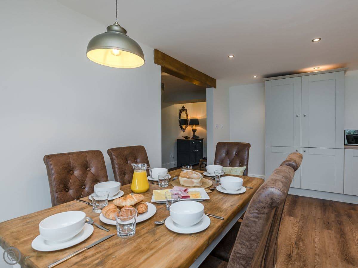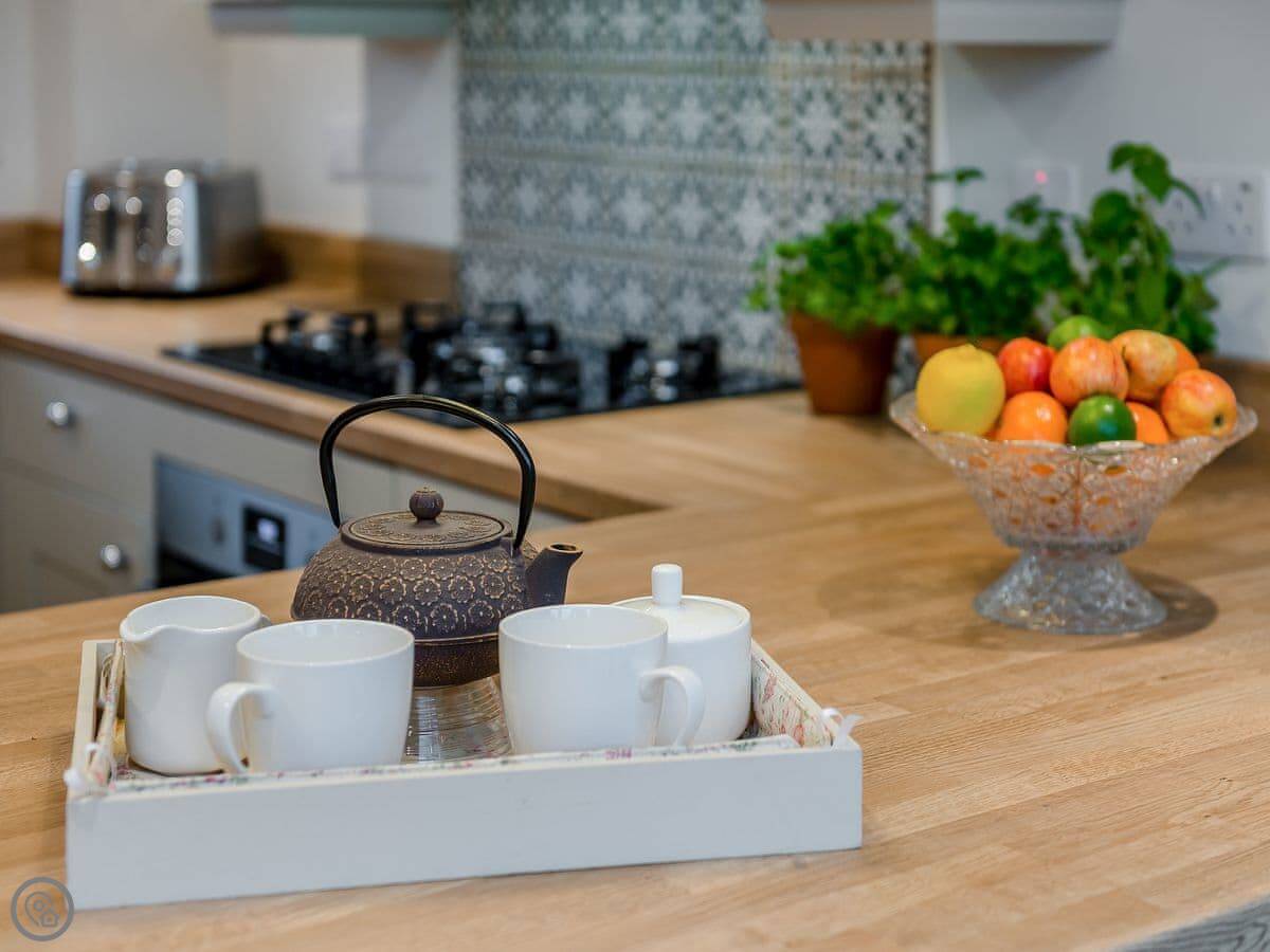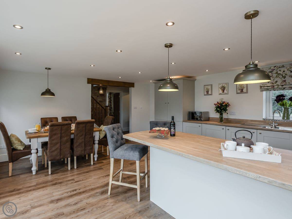 It's on a quiet lane. You can park on the drive. There's a washing machine, dishwasher, WiFi, all the normal stuff. Bedding and towels are included. We can provide a cot and highchair if you need them. No pets, sorry.
