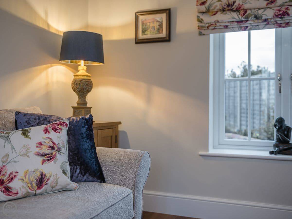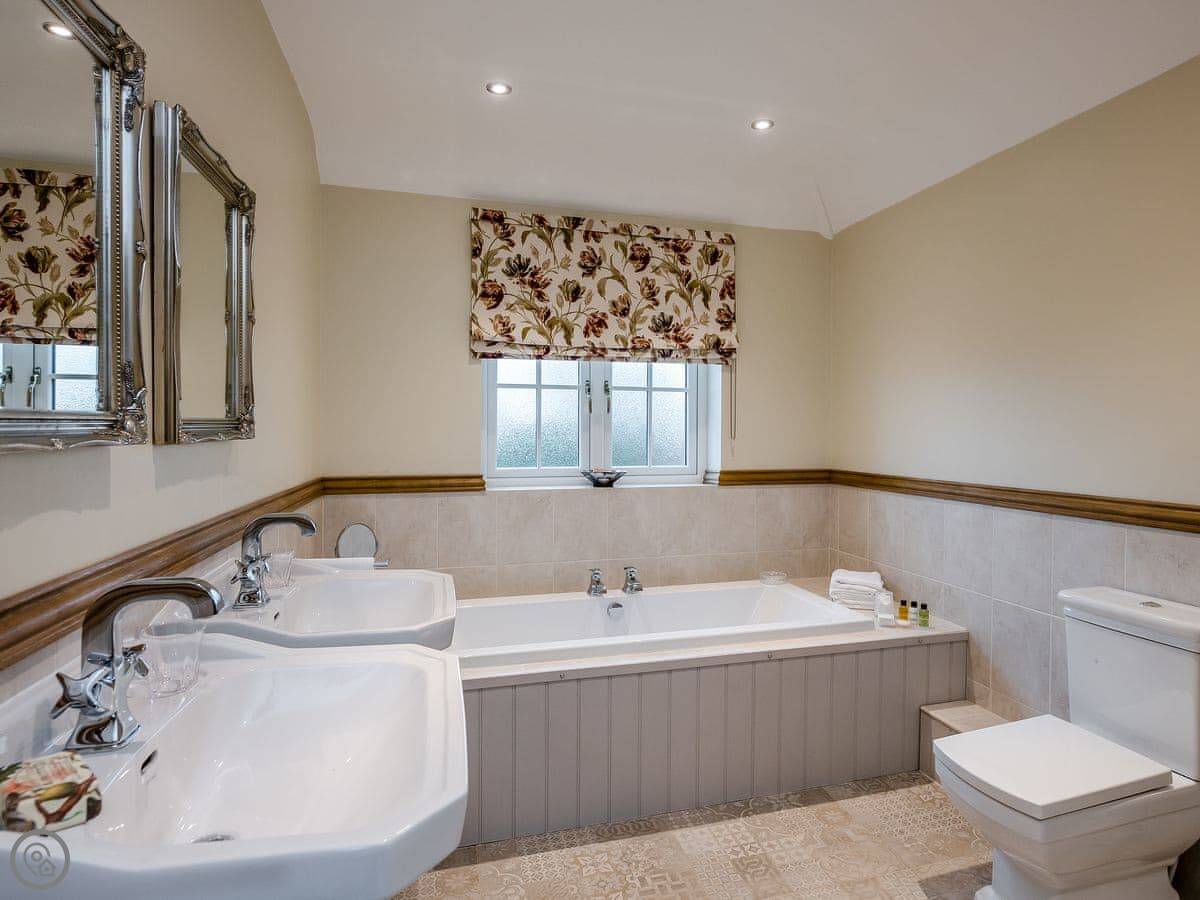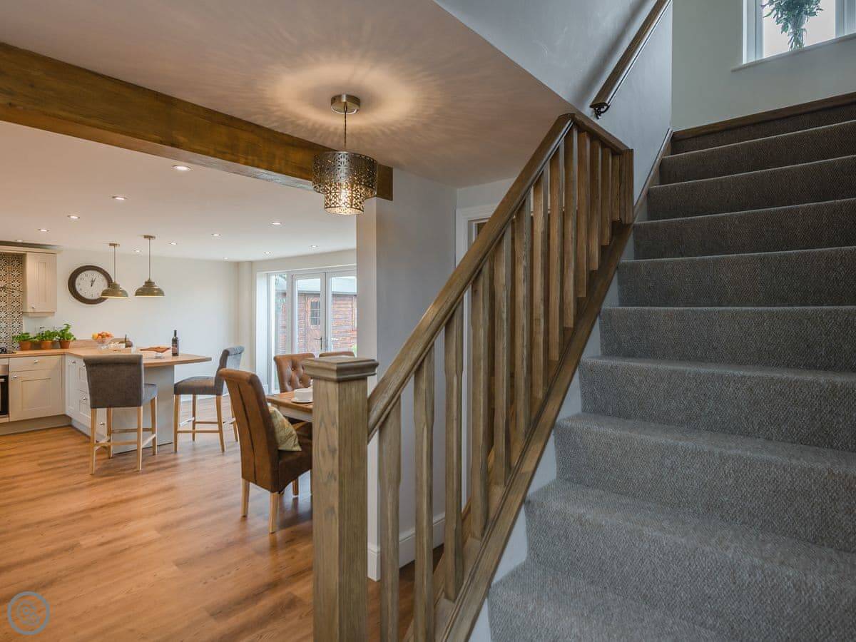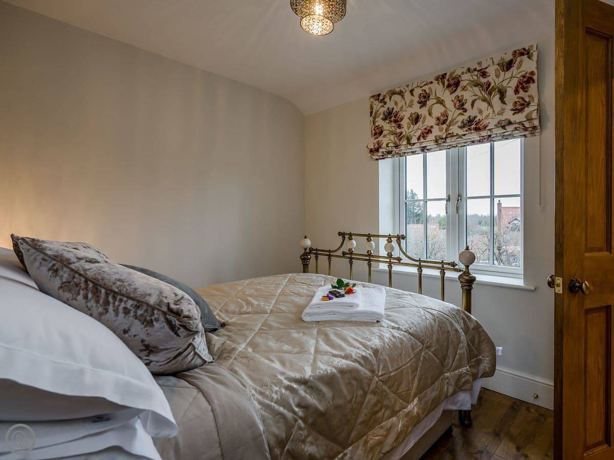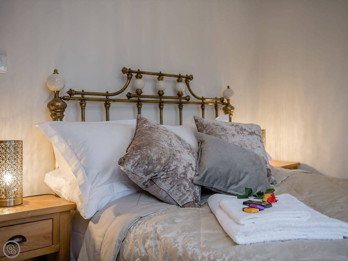 It sleeps six. Three bedrooms, two bathrooms. One of the bathrooms is en-suite to a double bedroom, the other is a big family one with a double shower. Another double room and a twin room make up the three. It's got a 5 Star rating, which means it's been done to a high standard. Everything is new and clean.