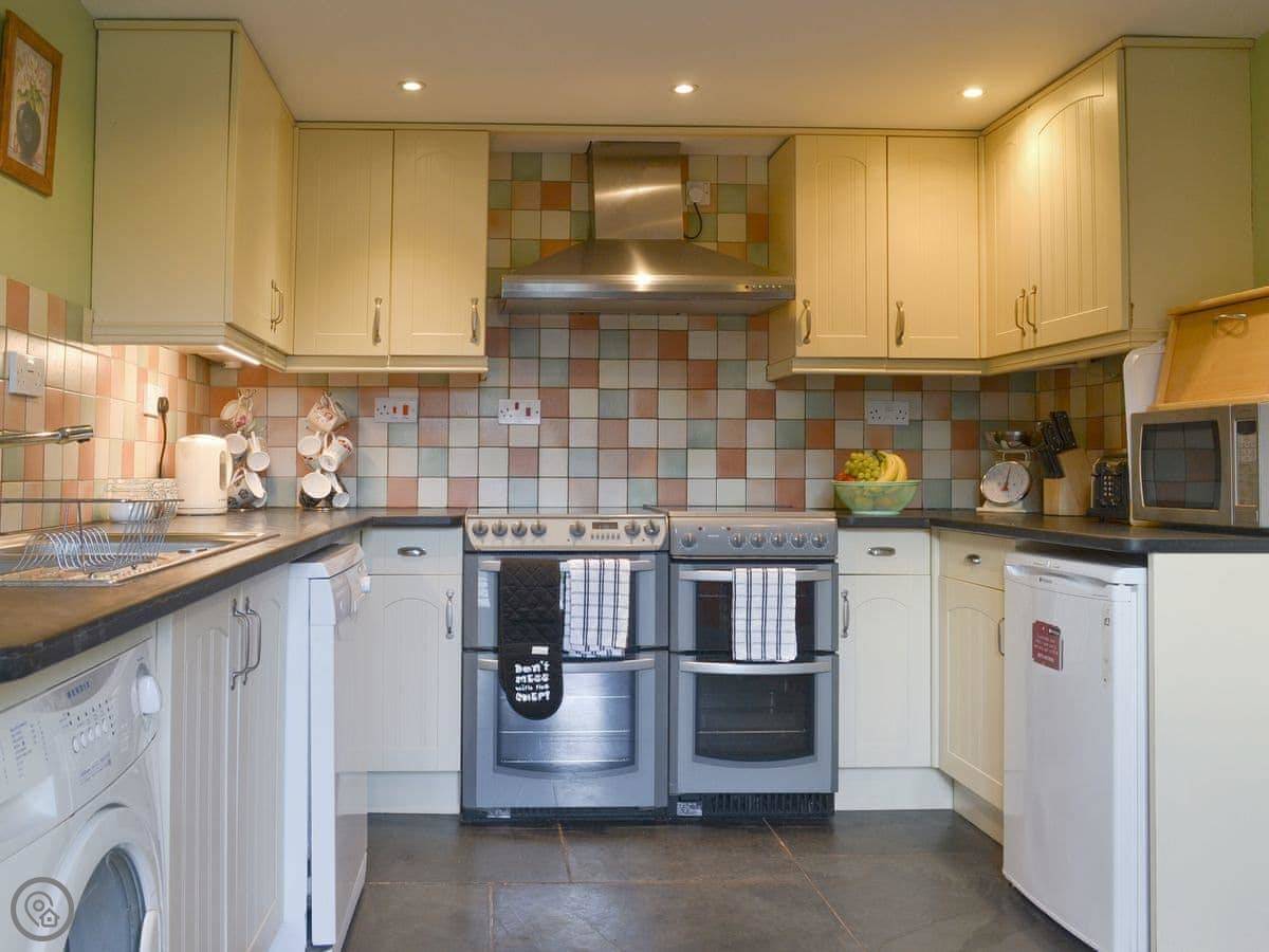 The kitchen has the normal things: a dishwasher, washing machine. There's a TV and WiFi. Bedding and towels are included. You can bring up to two dogs.