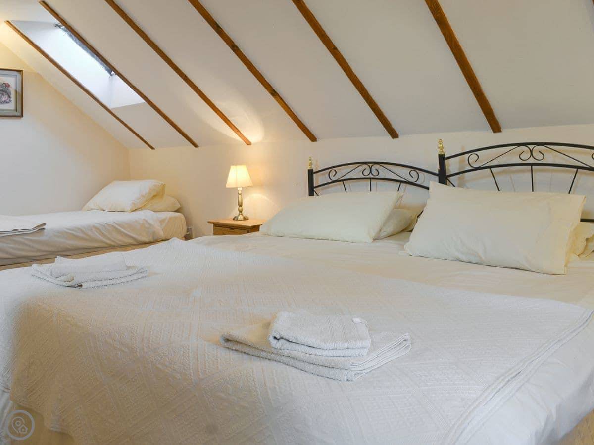 Speke's Retreat is two old barns that we converted side by side near Milford. They're in a quiet spot at the end of a lane, next to fields. You get both barns and the garden to yourselves.