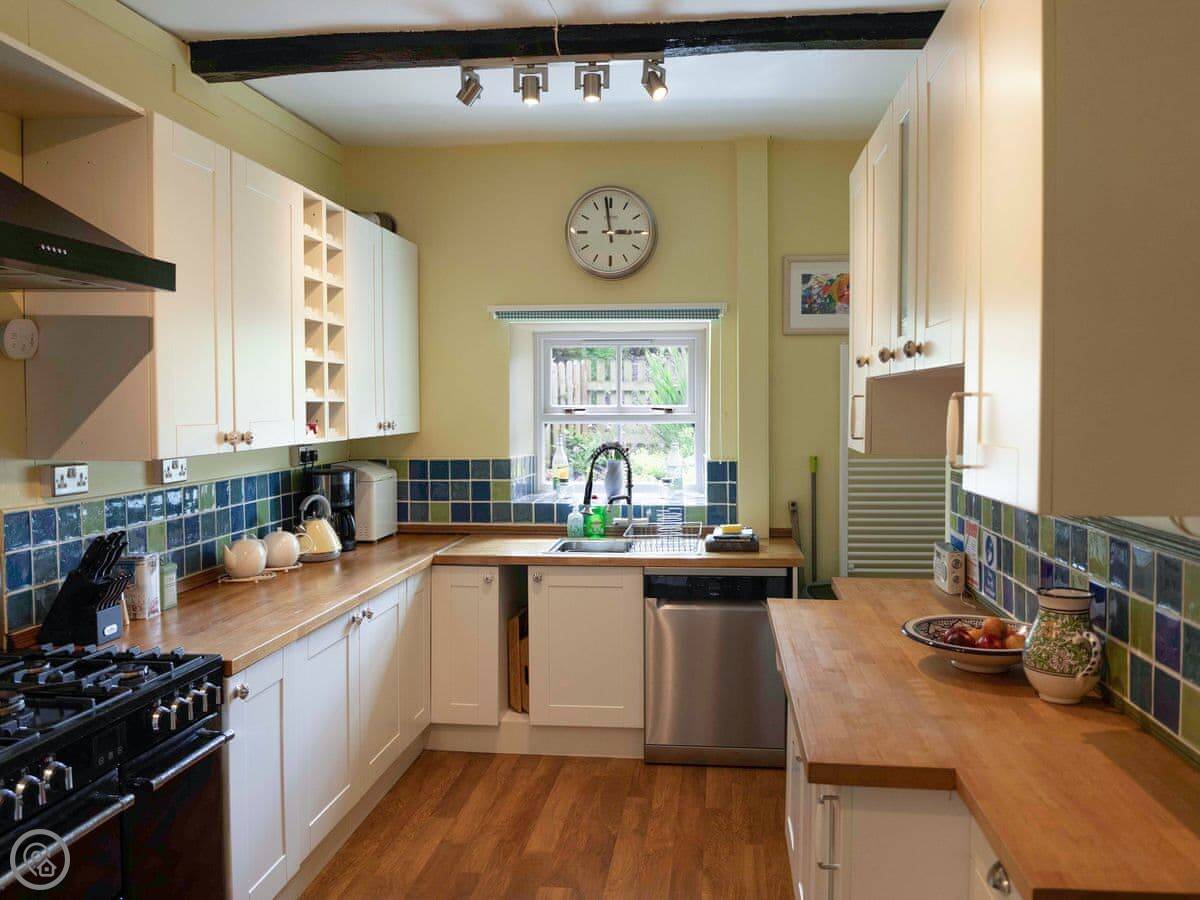 Inside, there's a woodburning stove, a dishwasher, and a washing machine. We include the bedding and towels. There's a cot and a highchair if you need them. WiFi and TV are there.