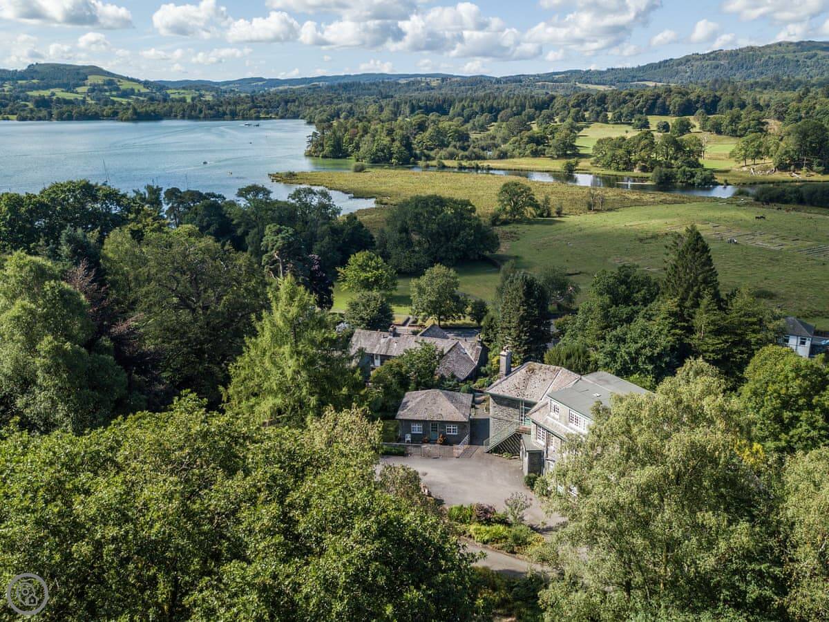 You're really close to the lake. It's a two-minute walk down through Borrans Park to the shore at Waterhead. There's a pier there where you can get the cruise boats. The remains of Galava Roman Fort are right there in the park too. If you fancy a walk, you can get straight onto the fells from the door. The path up Todd Crag is a good one.