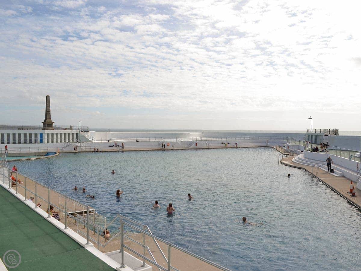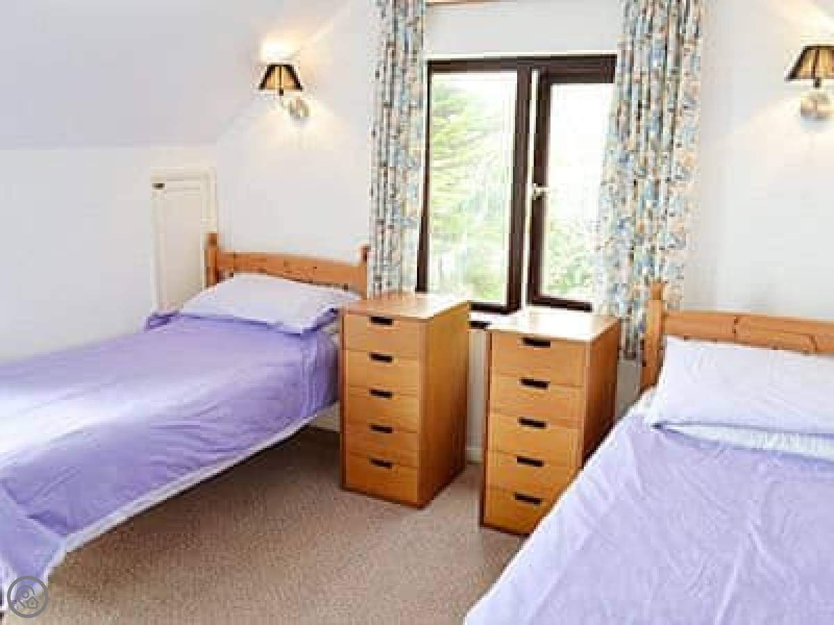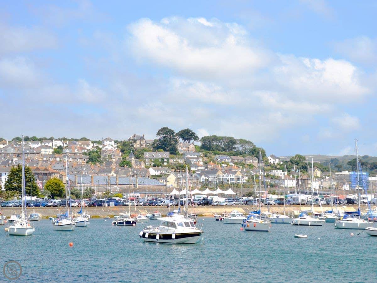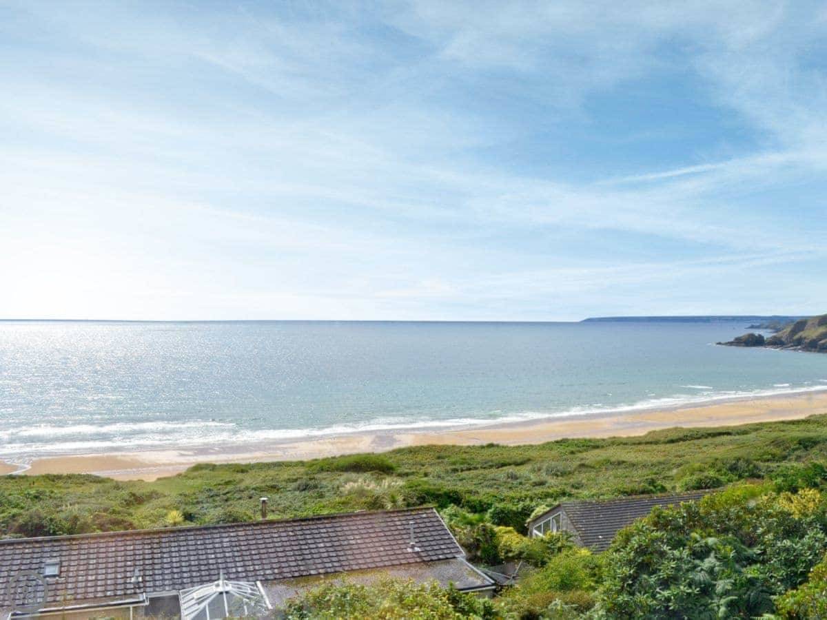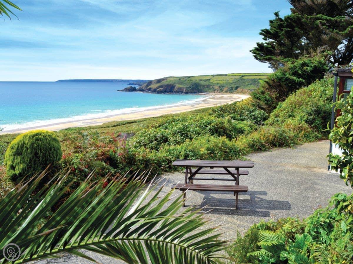 The beach is a couple of minutes walk down a path. It's a long, sandy beach. There's a surf school there in summer. The South West Coast Path runs along the top if you want a proper walk.