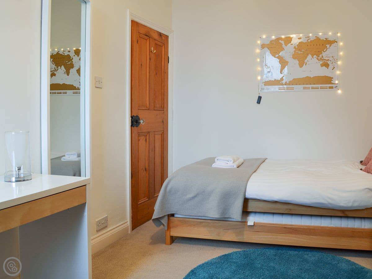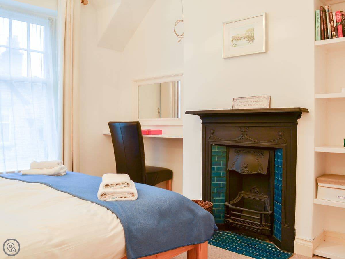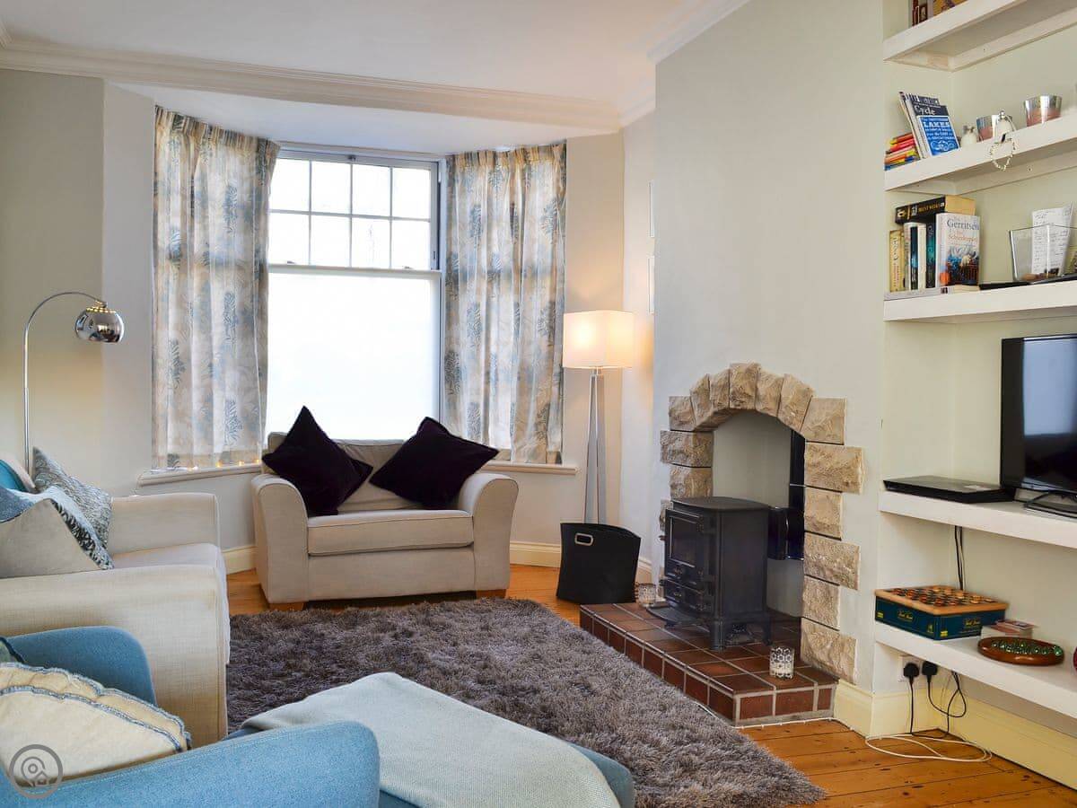 Lythdene is on a quiet side street in Grange over Sands. It's a terraced Victorian cottage, sleeps five. Three bedrooms upstairs, two doubles and a single, and one bathroom. It's got a 4 Star rating. It's clean and well kept.