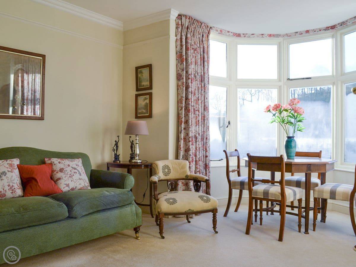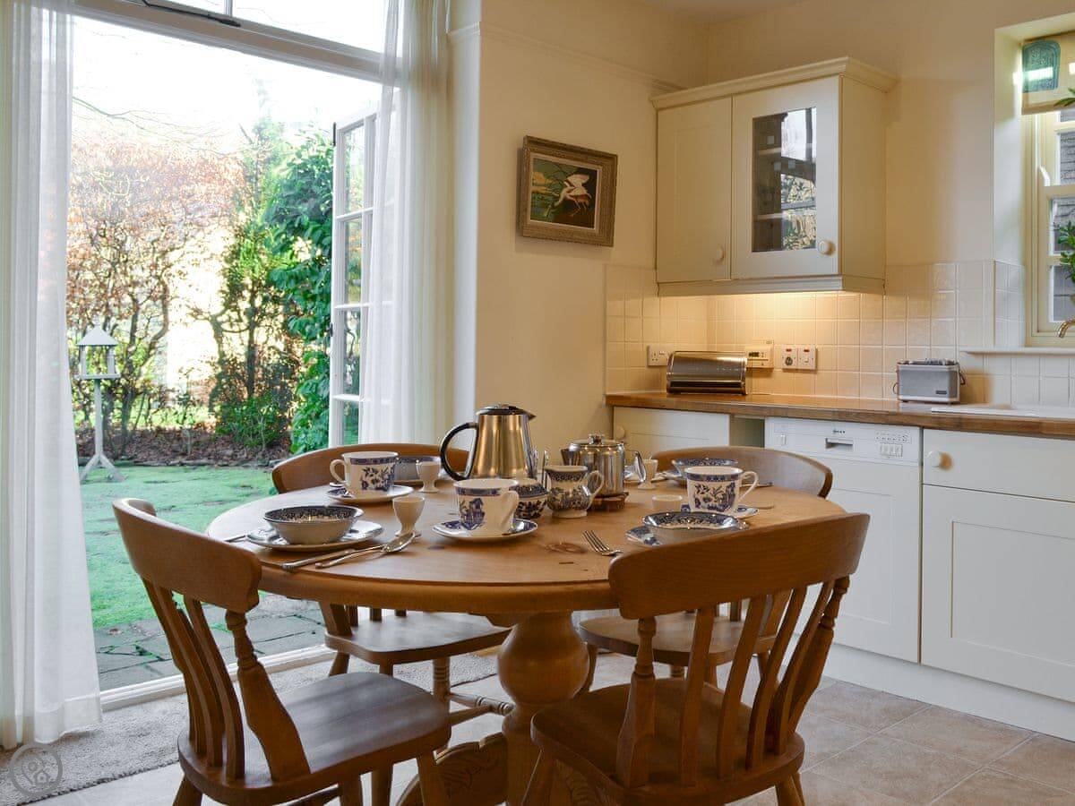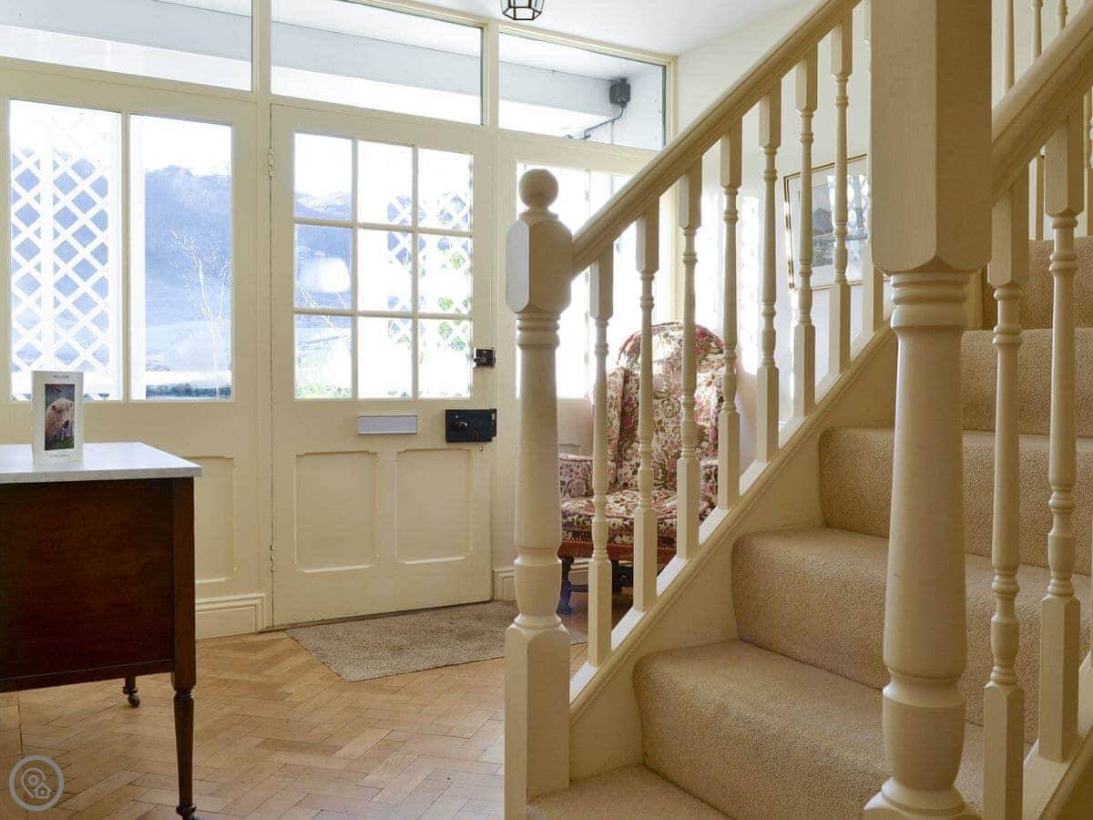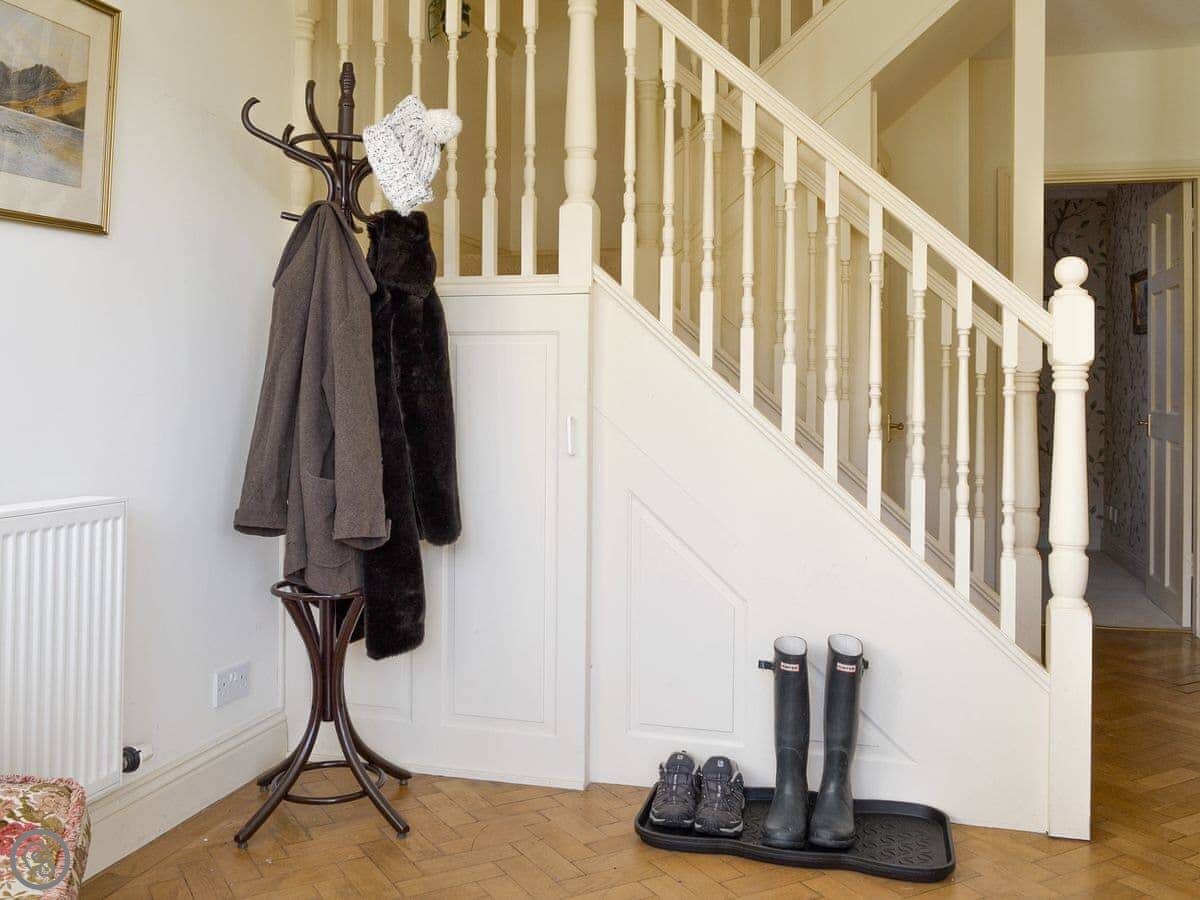 The cottage has a 4 Star rating. It’s comfortable and has kept some nice original features, like the porch and the beamed dining room. There's a wood-burning stove in the living room. The stairs are normal, not too steep. You can park three cars on the drive and there's locked storage for bikes or outdoor gear.