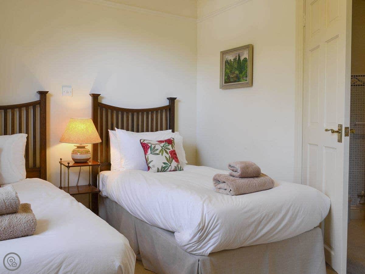It sleeps six. There are three bedrooms and three bathrooms, which is handy. Two of the bedrooms have an en-suite shower room. The main bathroom has a bath. We get the sun in the garden most of the day. It's enclosed, so it's safe for dogs if you have them. We take up to two.