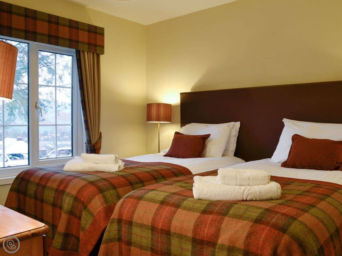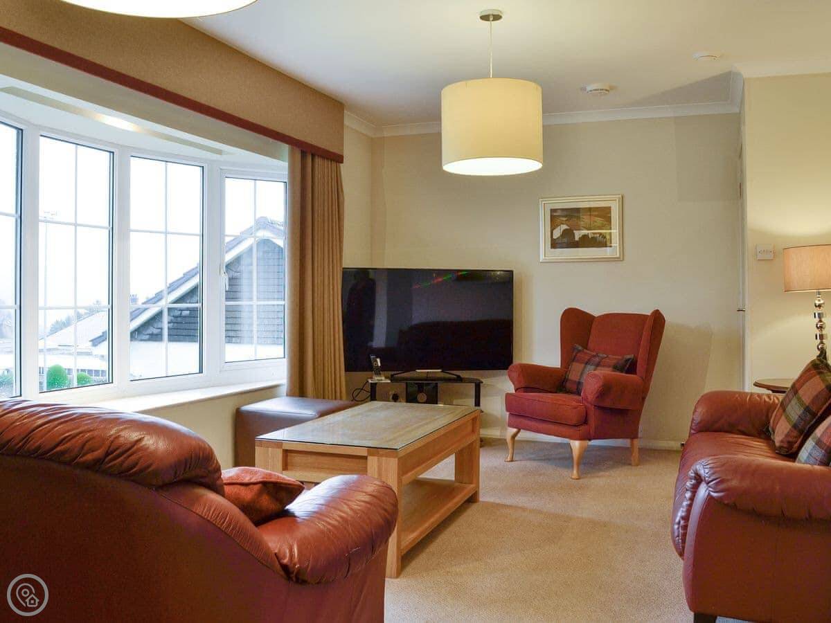It sleeps six. Three bedrooms, two bathrooms. One has a bath, the other a shower. It's a 3 Star place, so it's clean and functions well. The living area is open plan.
