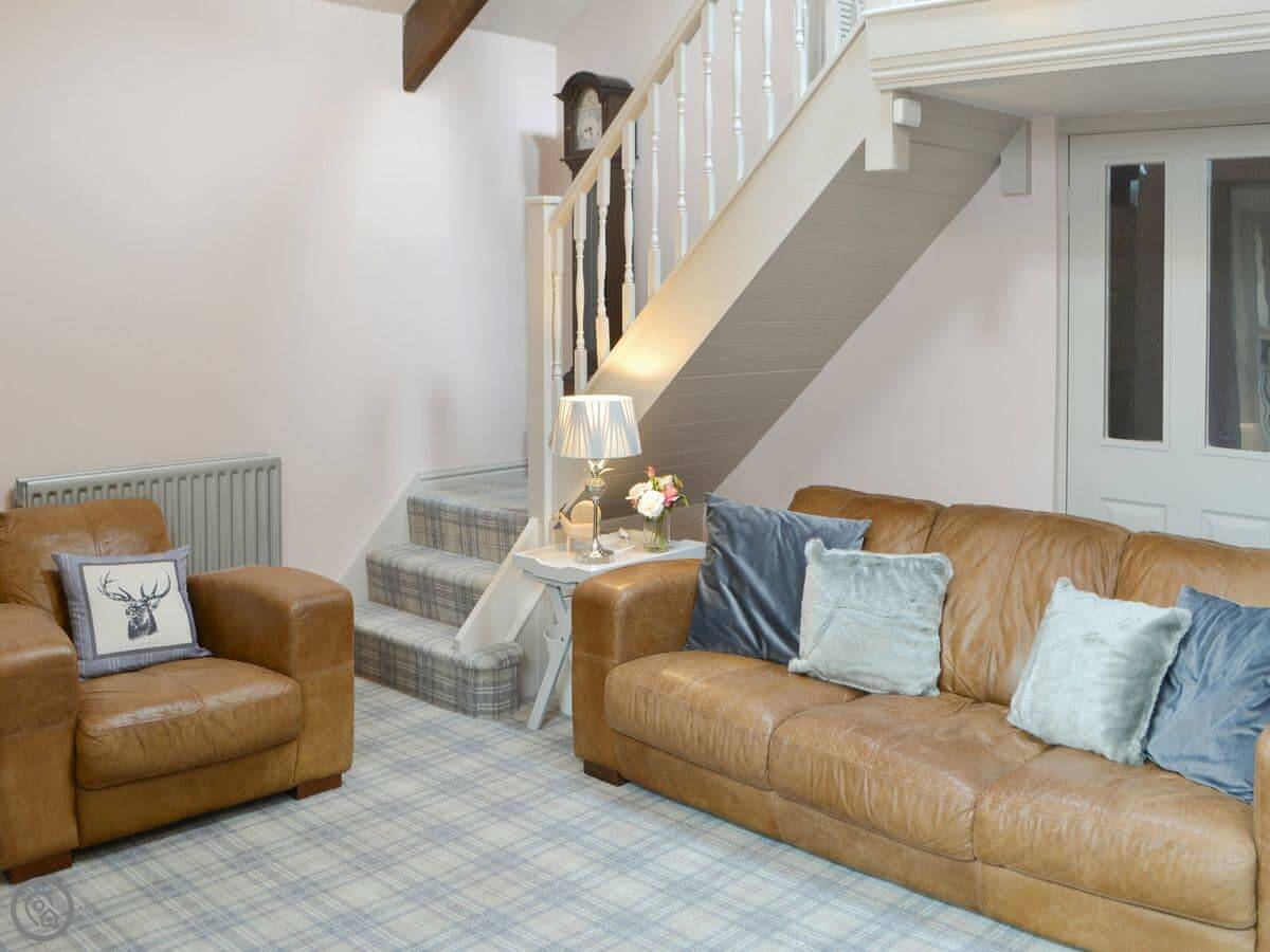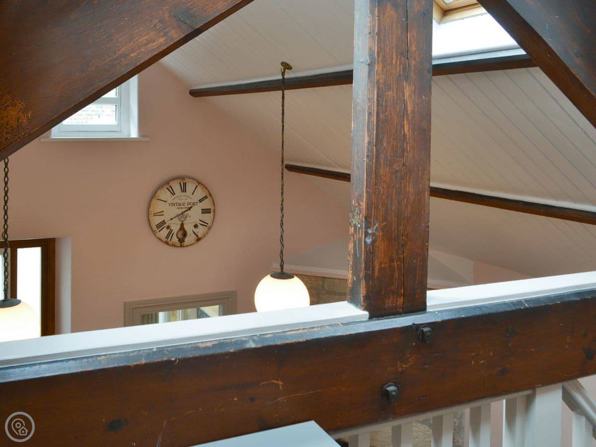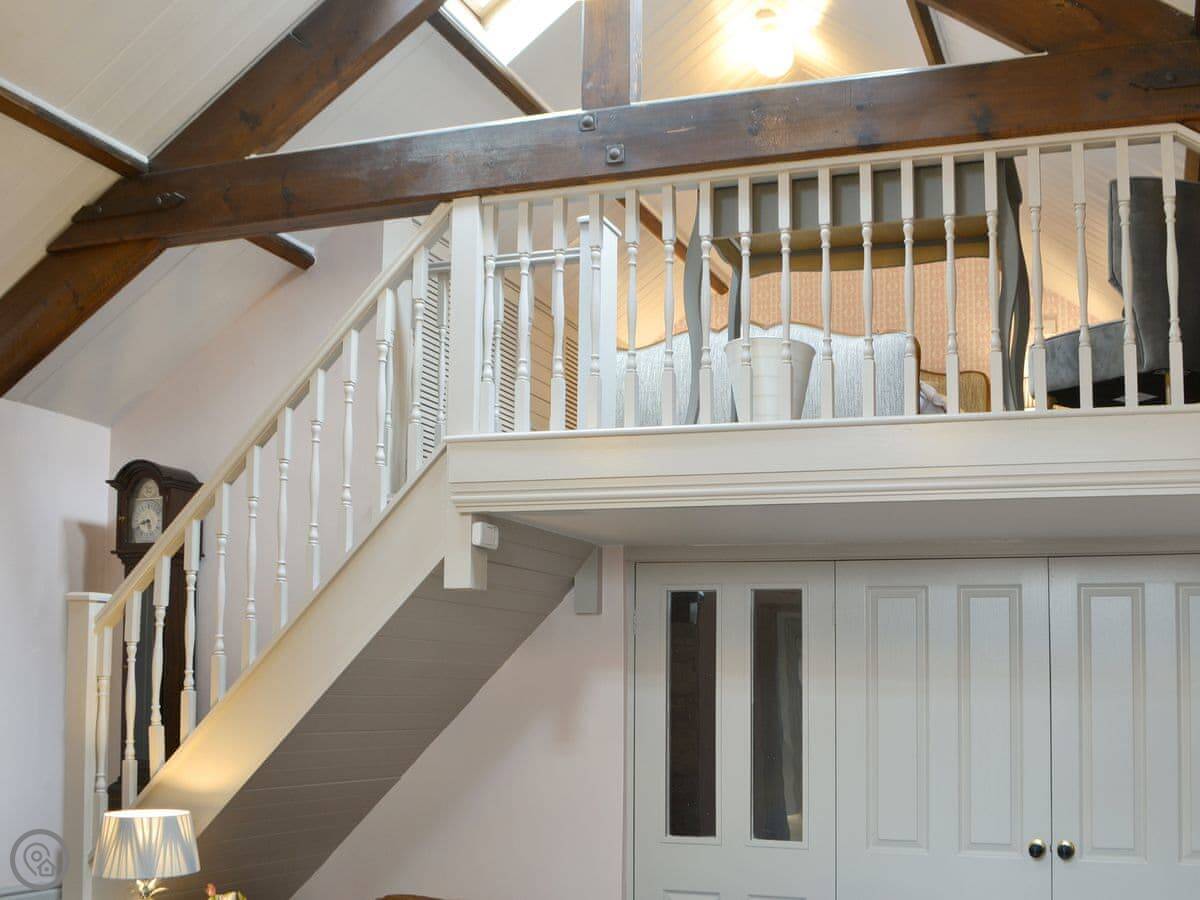 You're right in the middle of the town. The front door opens onto the street, but you can park right outside which is handy. Inside, it's open plan downstairs. The stairs are the main thing to know: they're a cottage staircase, so they're steep and a bit narrow. Fine for most, but something to be aware of.