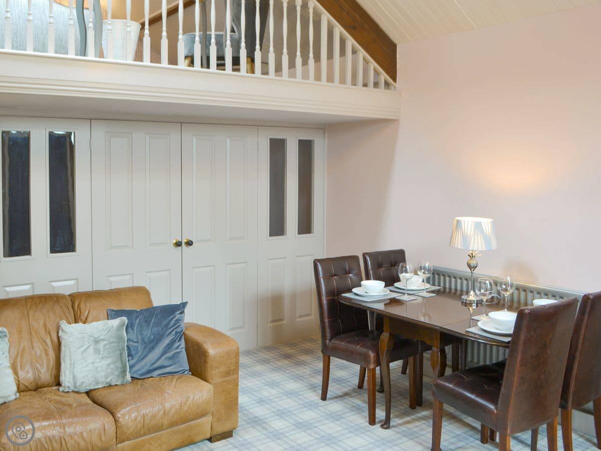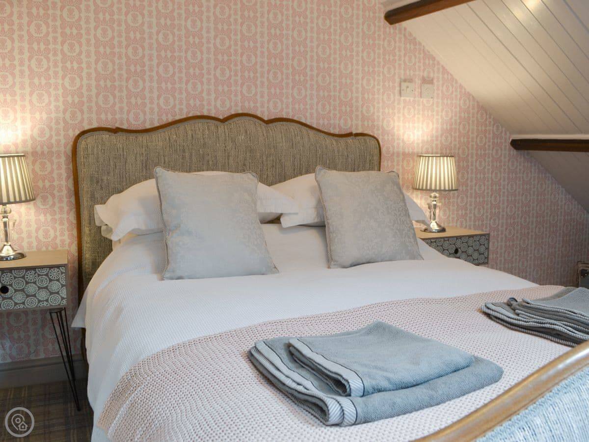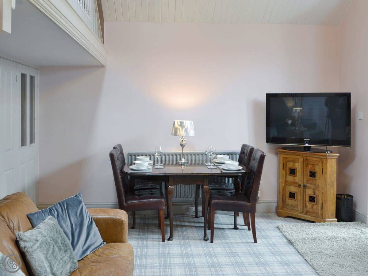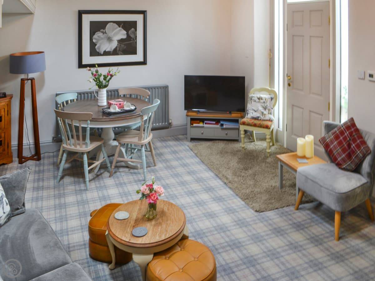 You're right in the middle of the town. The front door opens onto the street, but you can park right outside which is handy. Inside, it's open plan downstairs. The stairs are the main thing to know: they're a cottage staircase, so they're steep and a bit narrow. Fine for most, but something to be aware of.