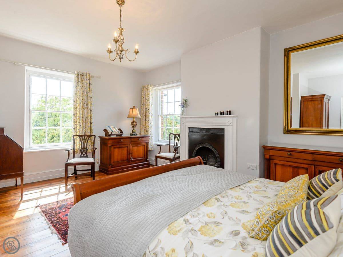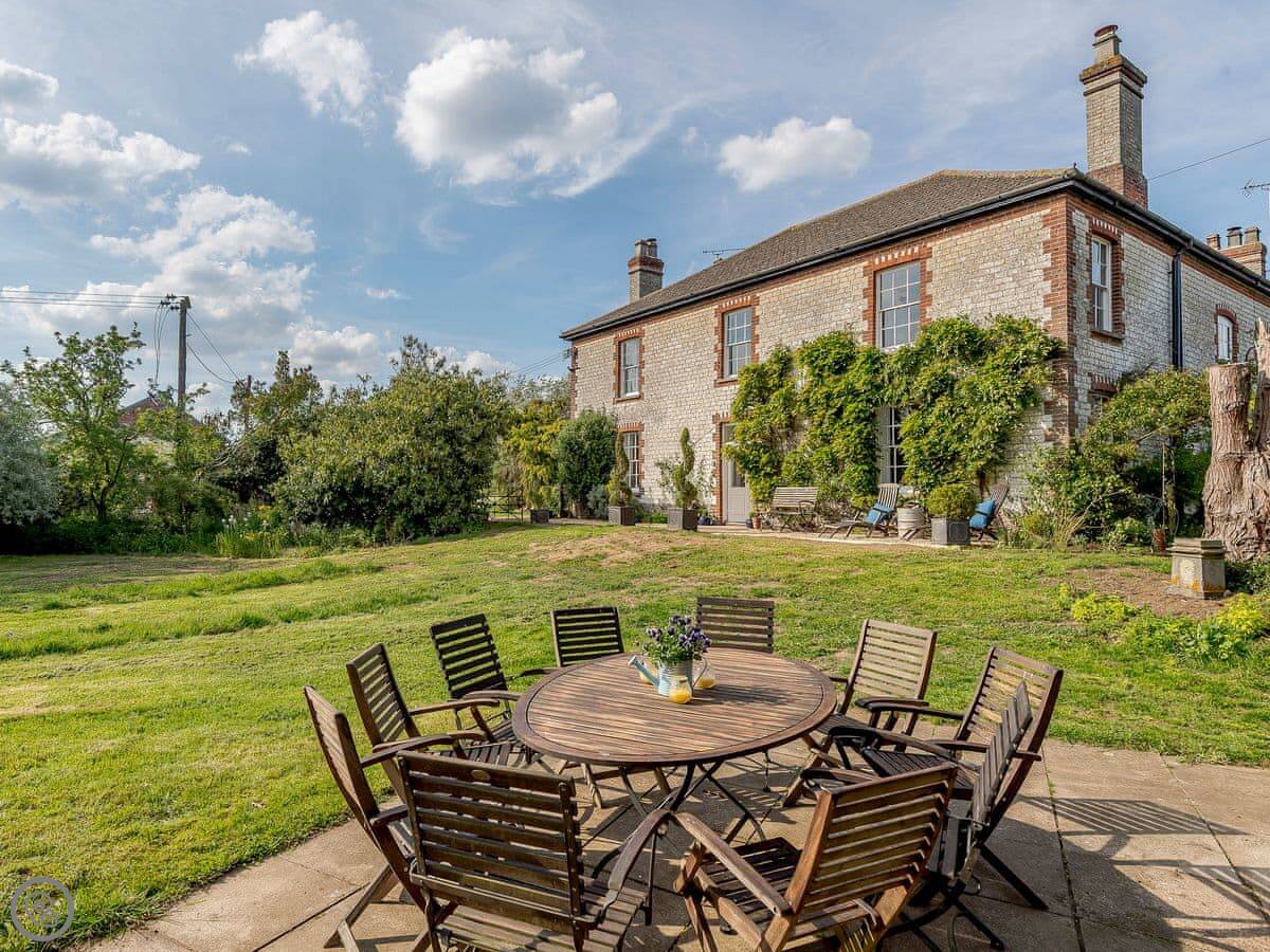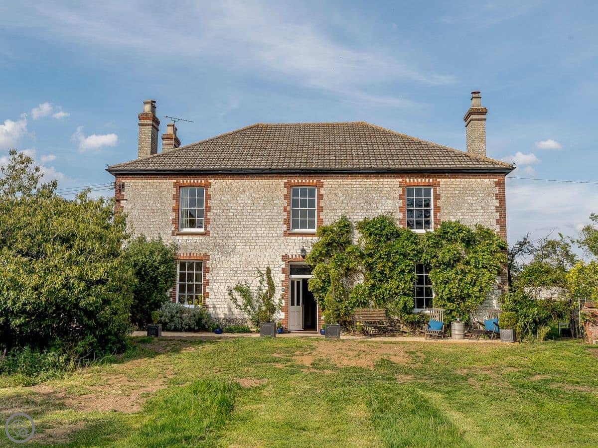 This is Colveston Manor. It's a big 17th century farmhouse near Mundford, on a working sheep and cattle farm. You come up a long tree-lined drive to get to it. It sleeps ten across five bedrooms, and there are four bathrooms. It's got a 5 Star rating.