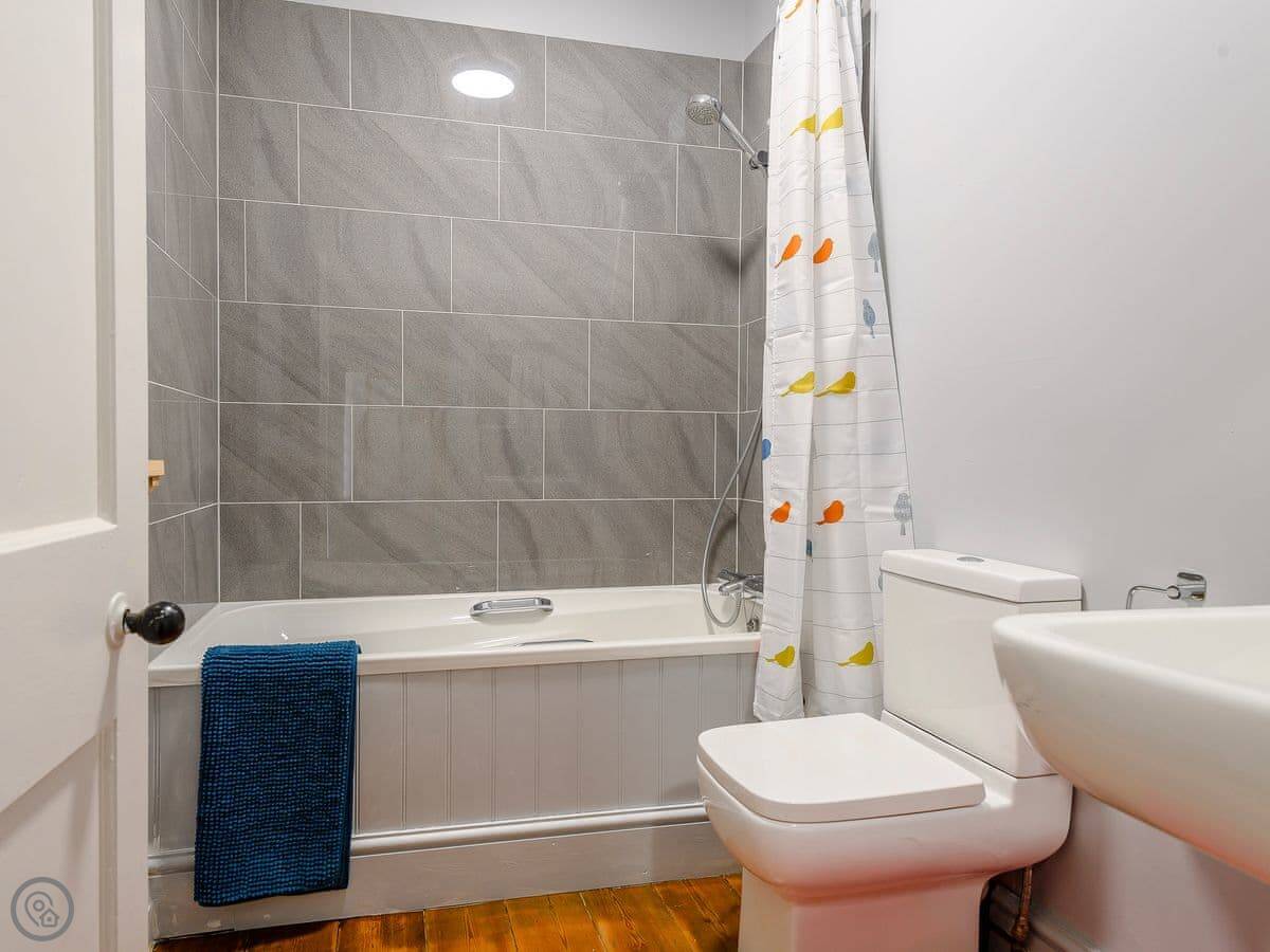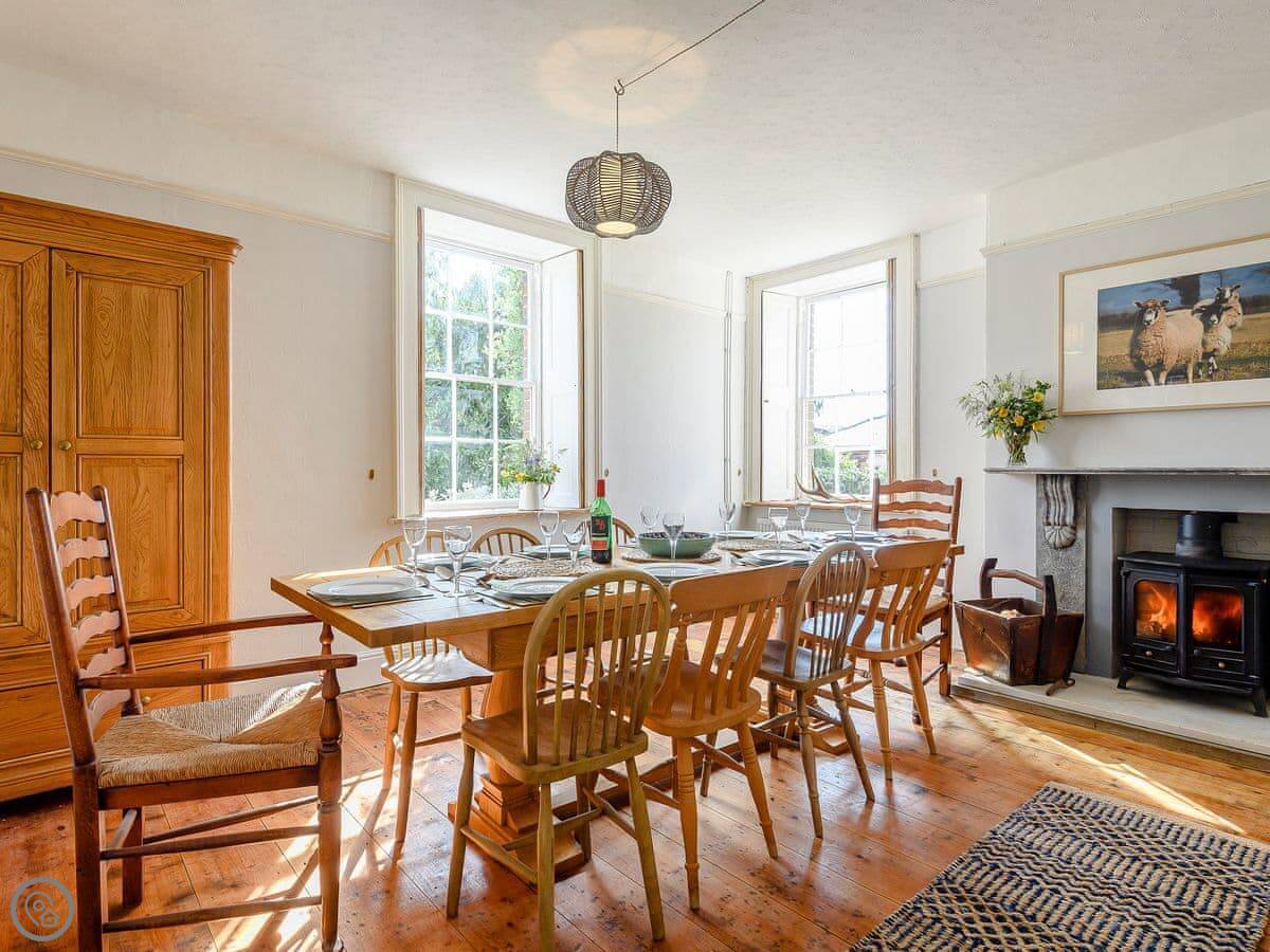 Inside, there’s plenty of space. There's a wood burner in the living room. The facilities are what you’d expect: a dishwasher, washing machine, WiFi, and parking. Bedding and towels are included. We can take up to two dogs.