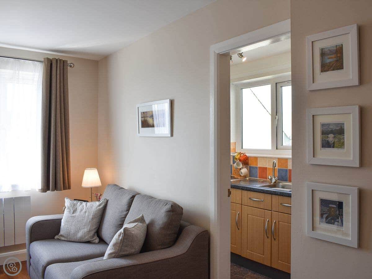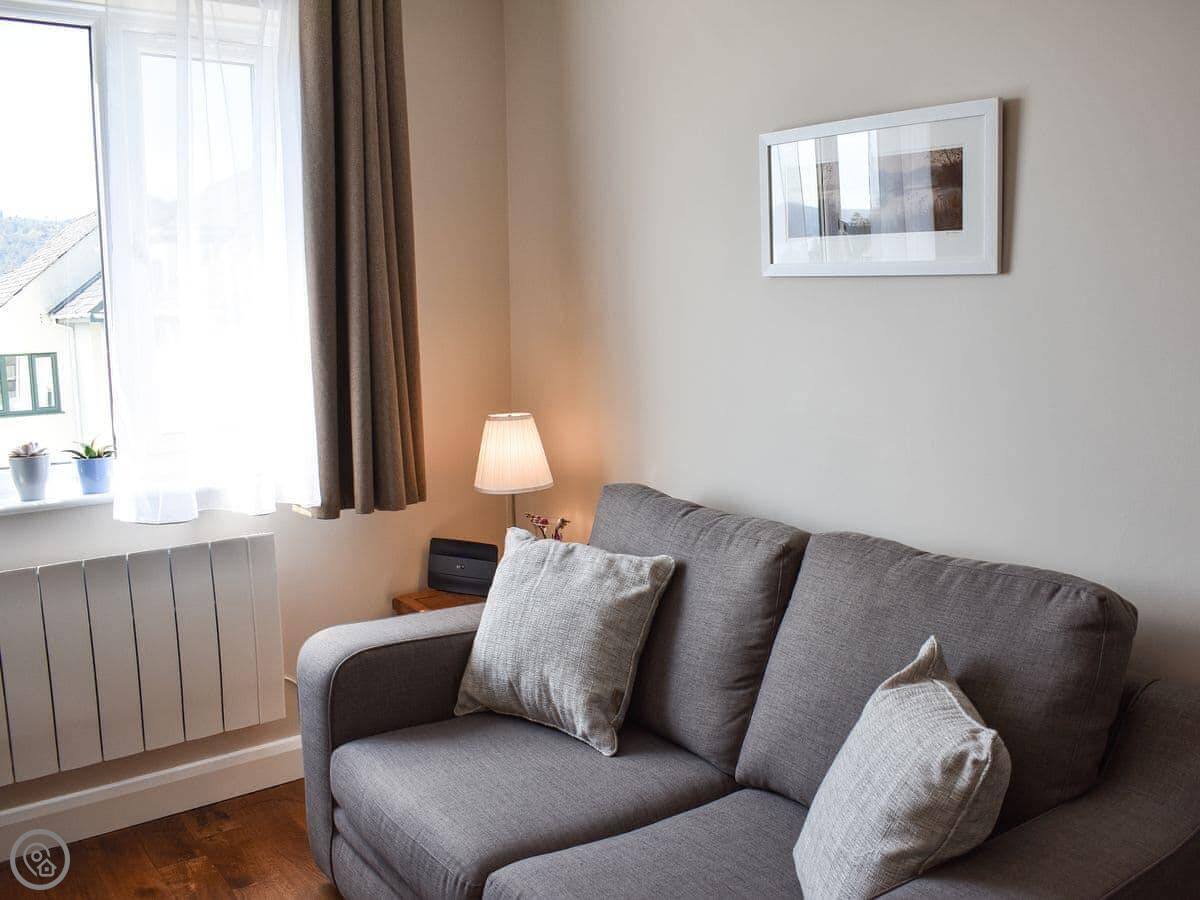 The Hollies is in Bowness on Windermere. It's a one-bedroom cottage, sleeps two. It was refurbished a few years back, so it's tidy and fresh.