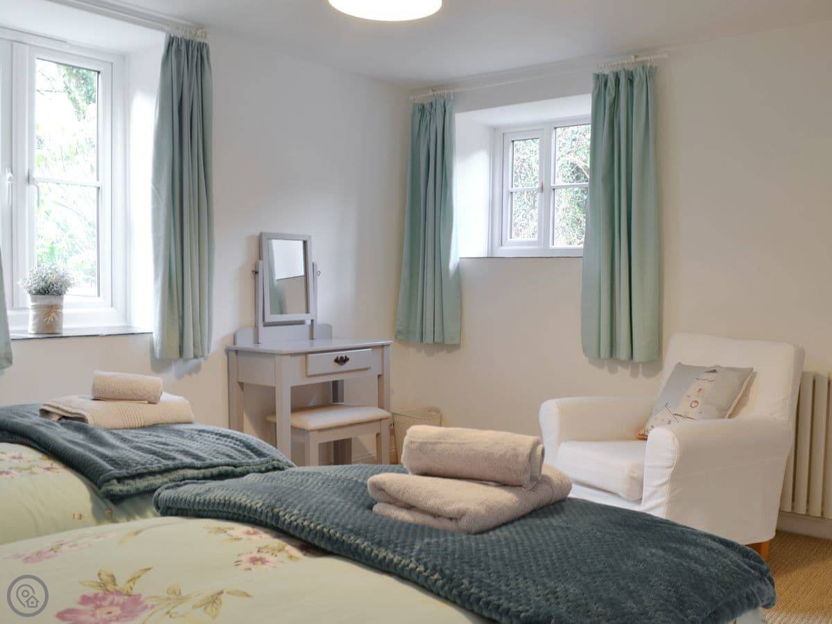 There's a pub about three quarters of a mile down the lane. It does food. The nearest shop is about two miles away in Gorran. For a beach, you're about four miles from places like Gorran Haven or Mevagissey. Mevagissey is a proper working harbour, about three and a half miles. It's got narrow streets and places to eat.