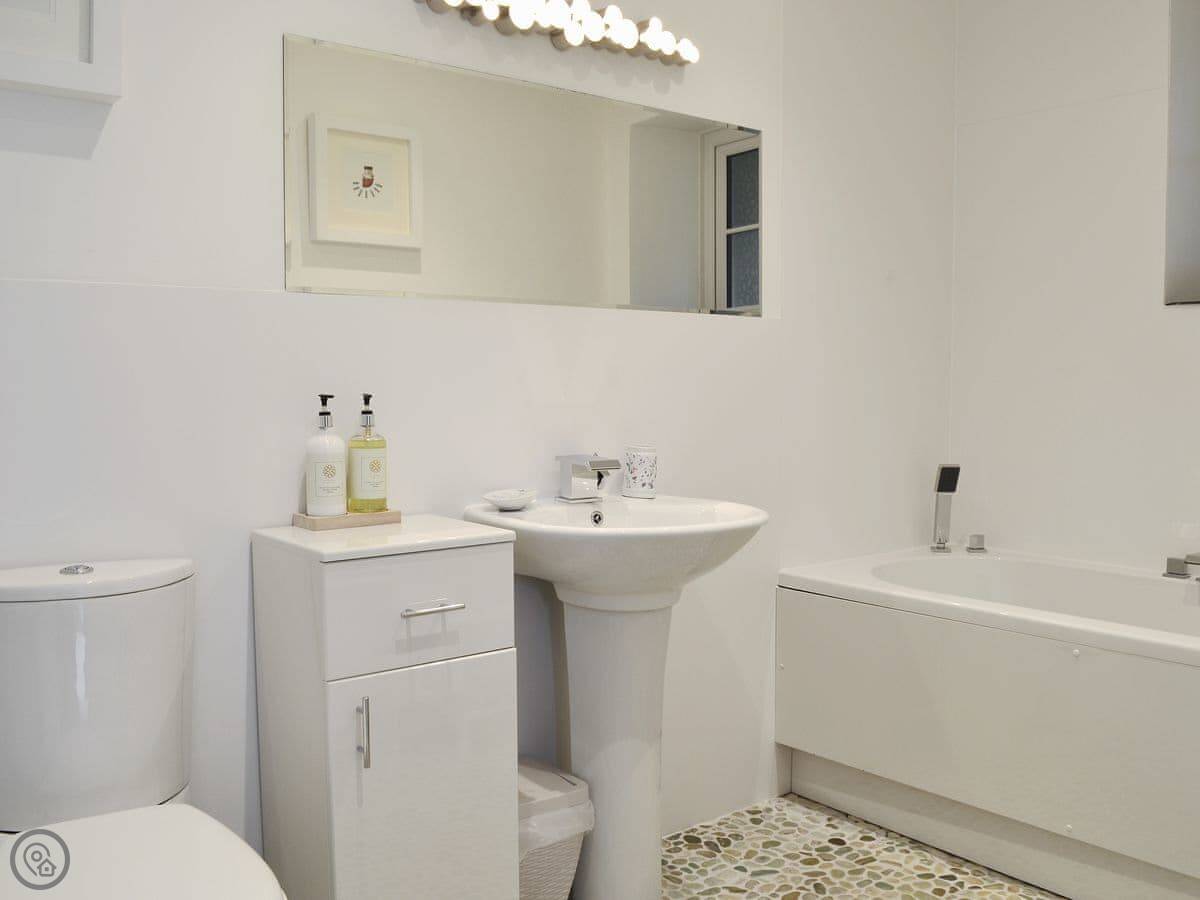Downstairs are the bedrooms. One has an en-suite shower room. The main bathroom is between the rooms. It's wheelchair accessible at the entrance, but the living space is upstairs.