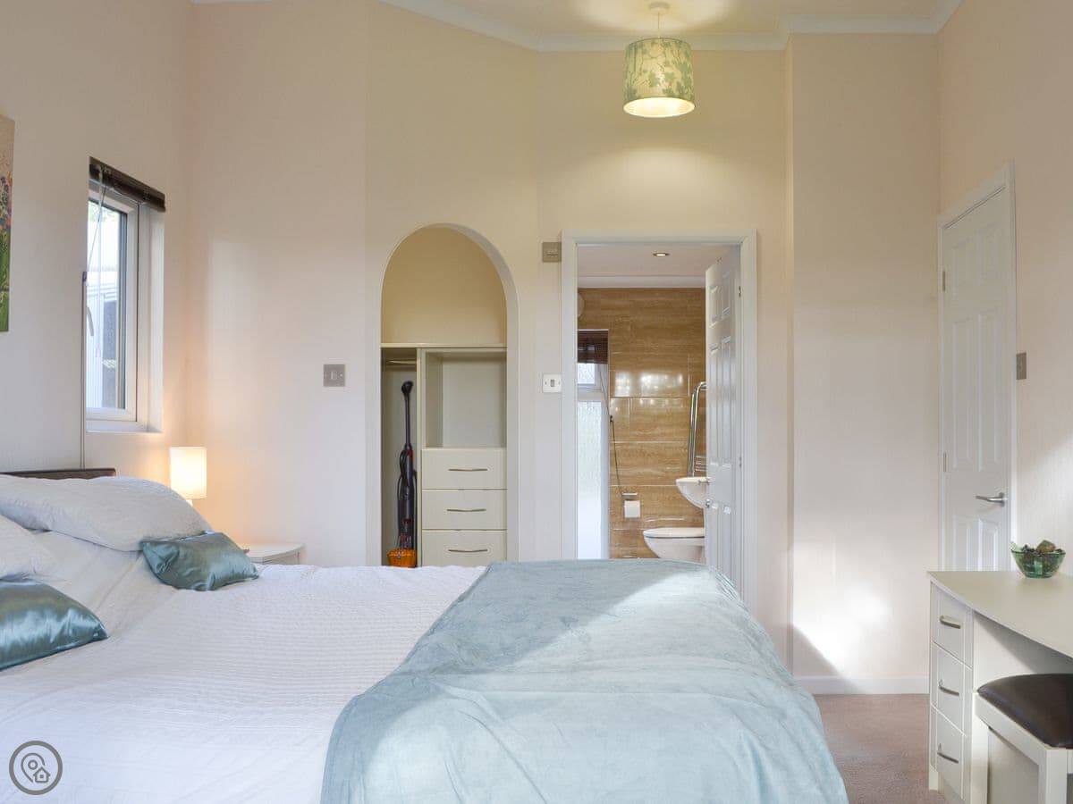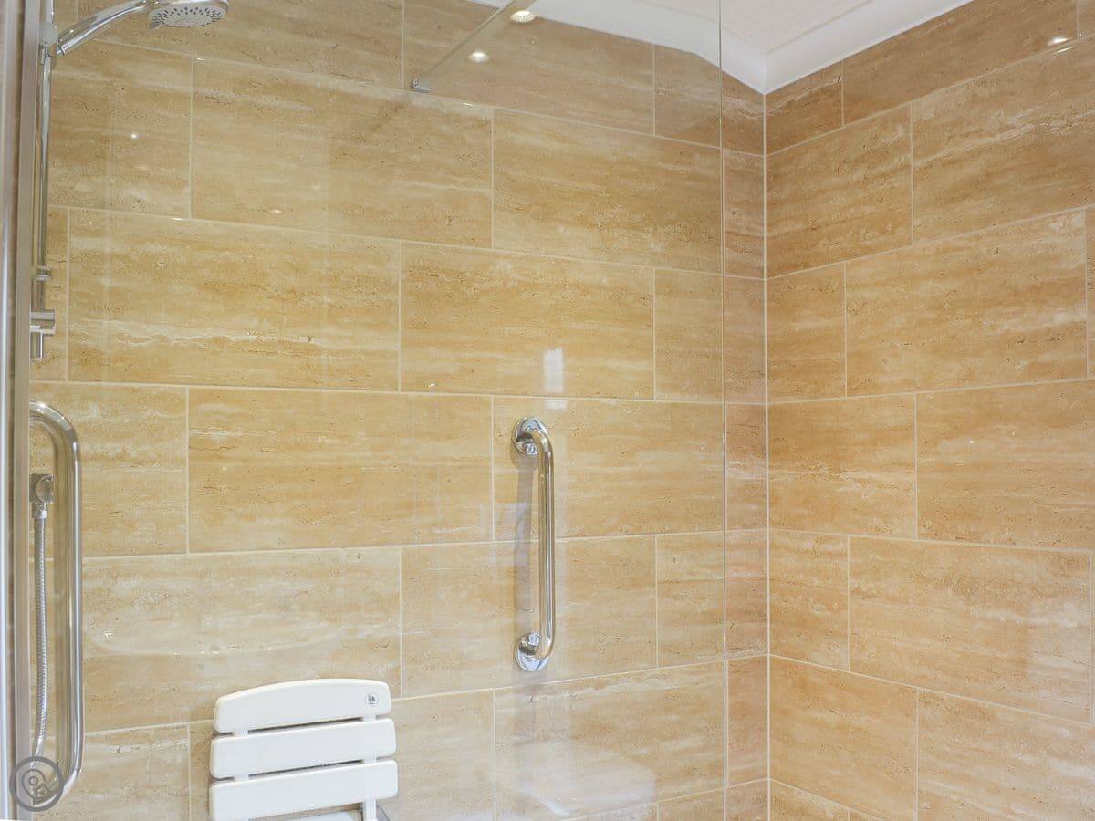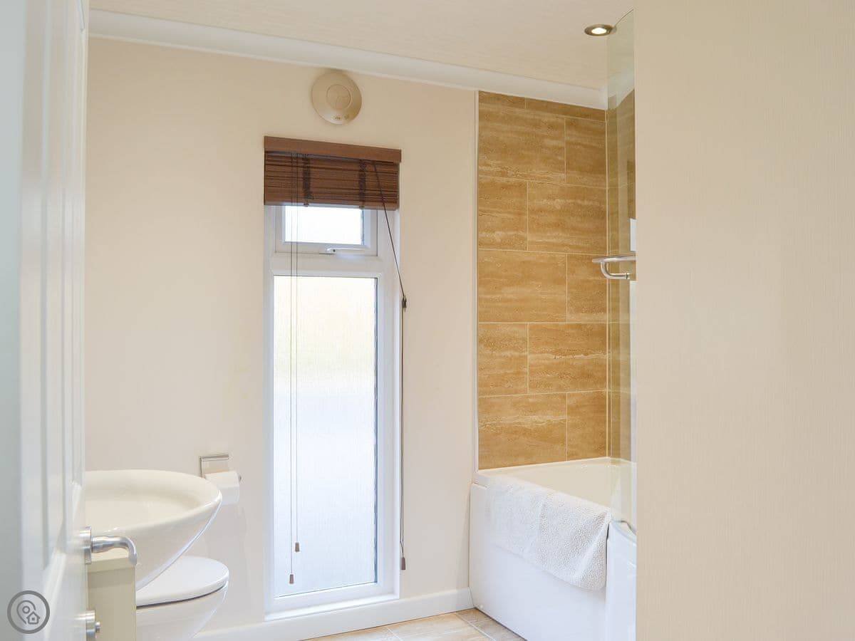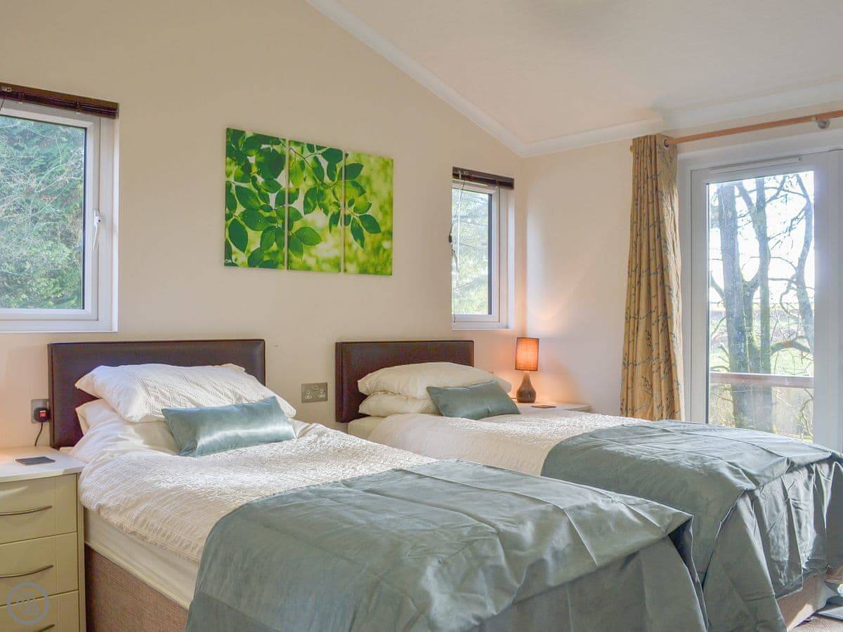 It sleeps four. Two bedrooms, both with their own bathroom. One bathroom is a wet room. It has a 4 Star rating. It's modern inside, underfloor heating, that sort of thing.