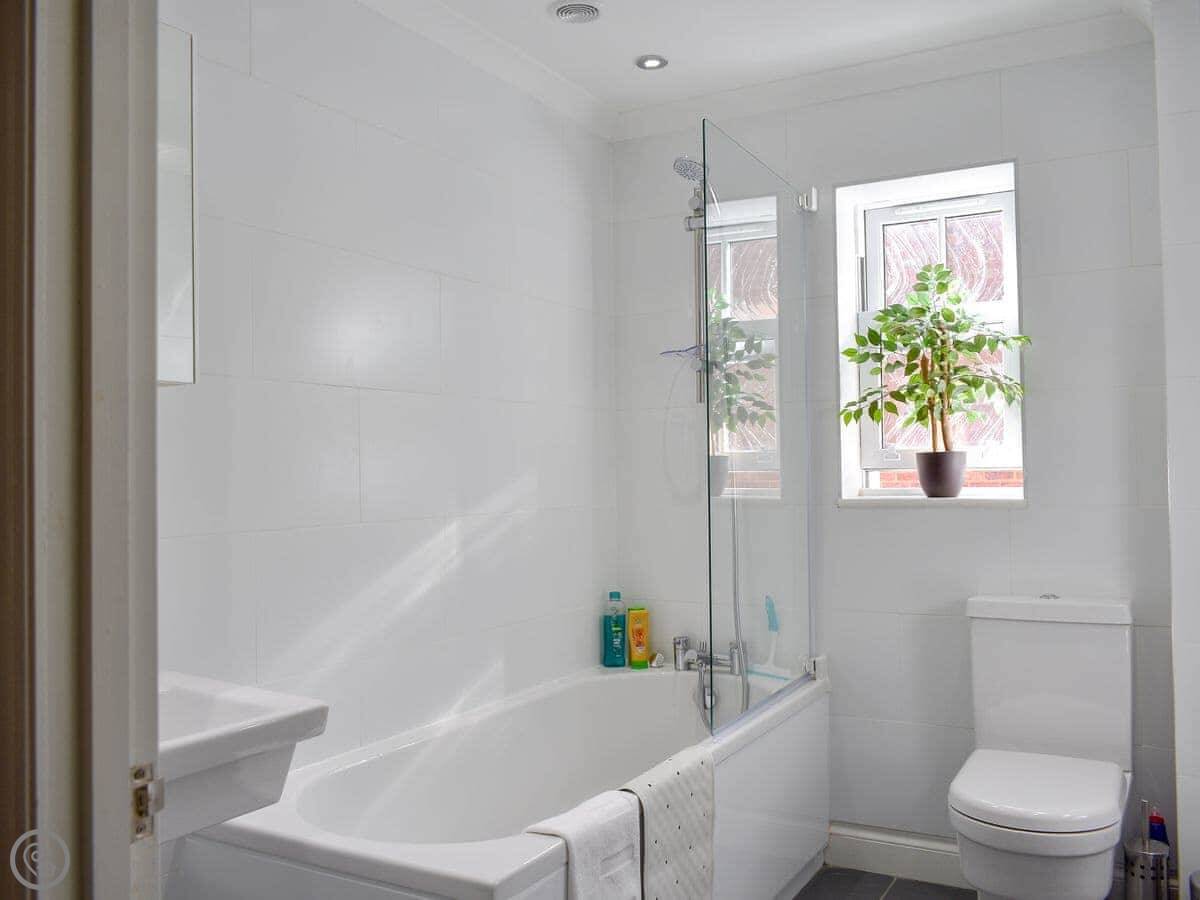 Upstairs are three well furnished bedrooms with comfortable beds and attractive bed linen and accessories. Bedroom 1 is a double bedroomwith fitted wardrobes and a fully tiled en-suite shower room, bedroom 2 has fitted wardrobes and a feature double bed with attractive brass frame, and bedroom 3 is a cute bedroom with fitted wardrobes and a single bed in a beautiful cream frame. A separate fully tiled bathroom with bath and overhead showeris also on this floor. To the rear of the property is an enclosed courtyard garden with furniture and a shed/ bike store.