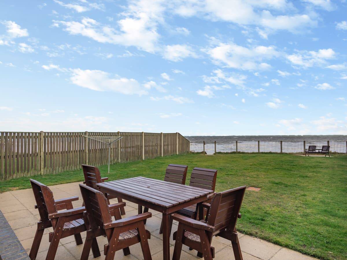 The garden is enclosed. It backs onto the sea wall, and there are steps down to the beach. You can see the sea from there.