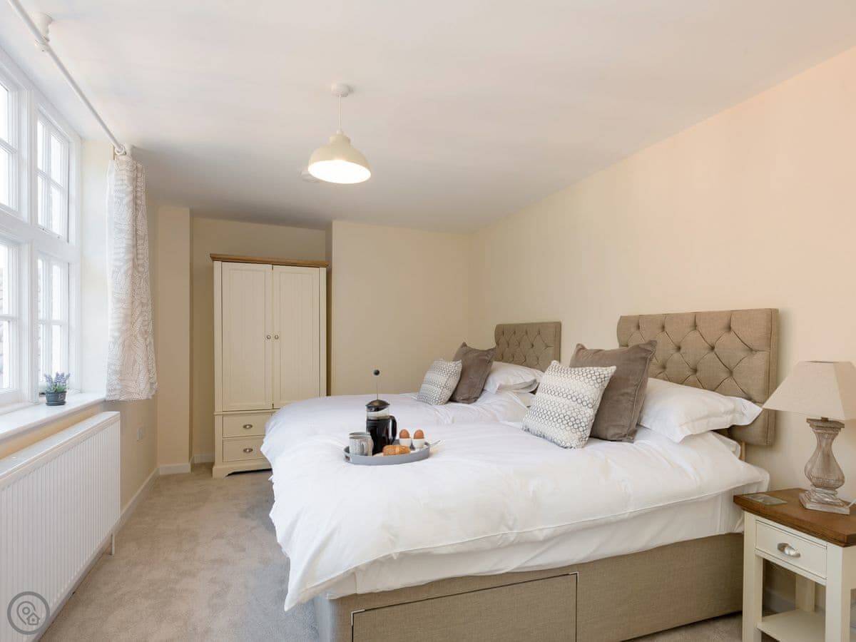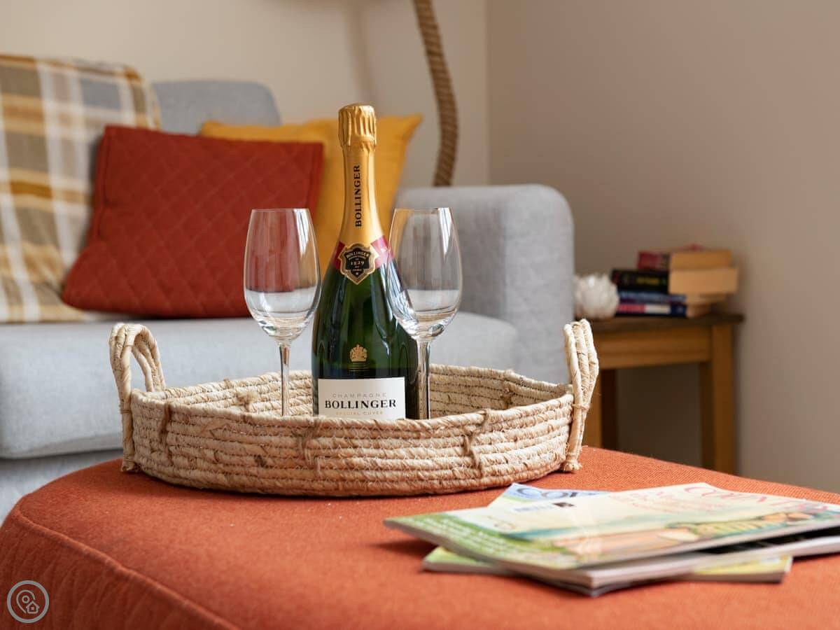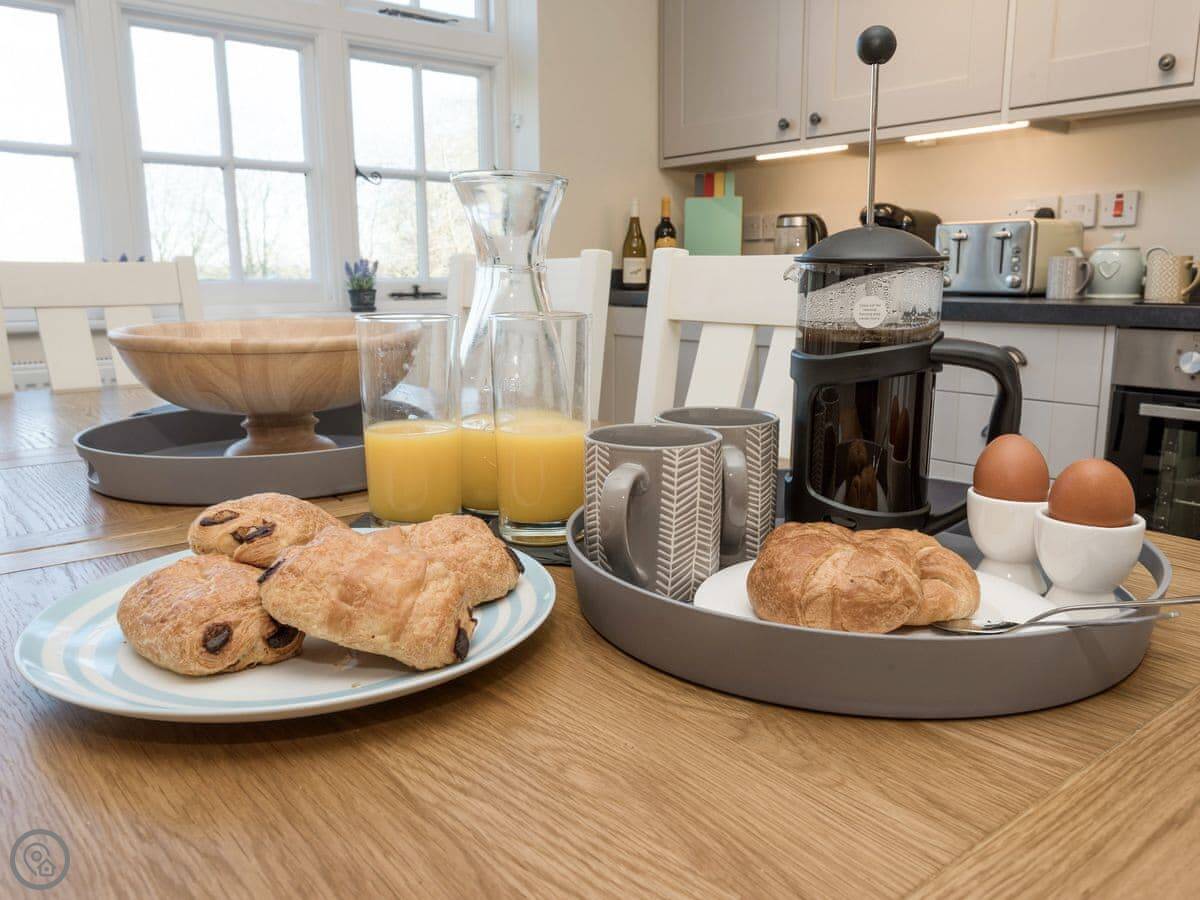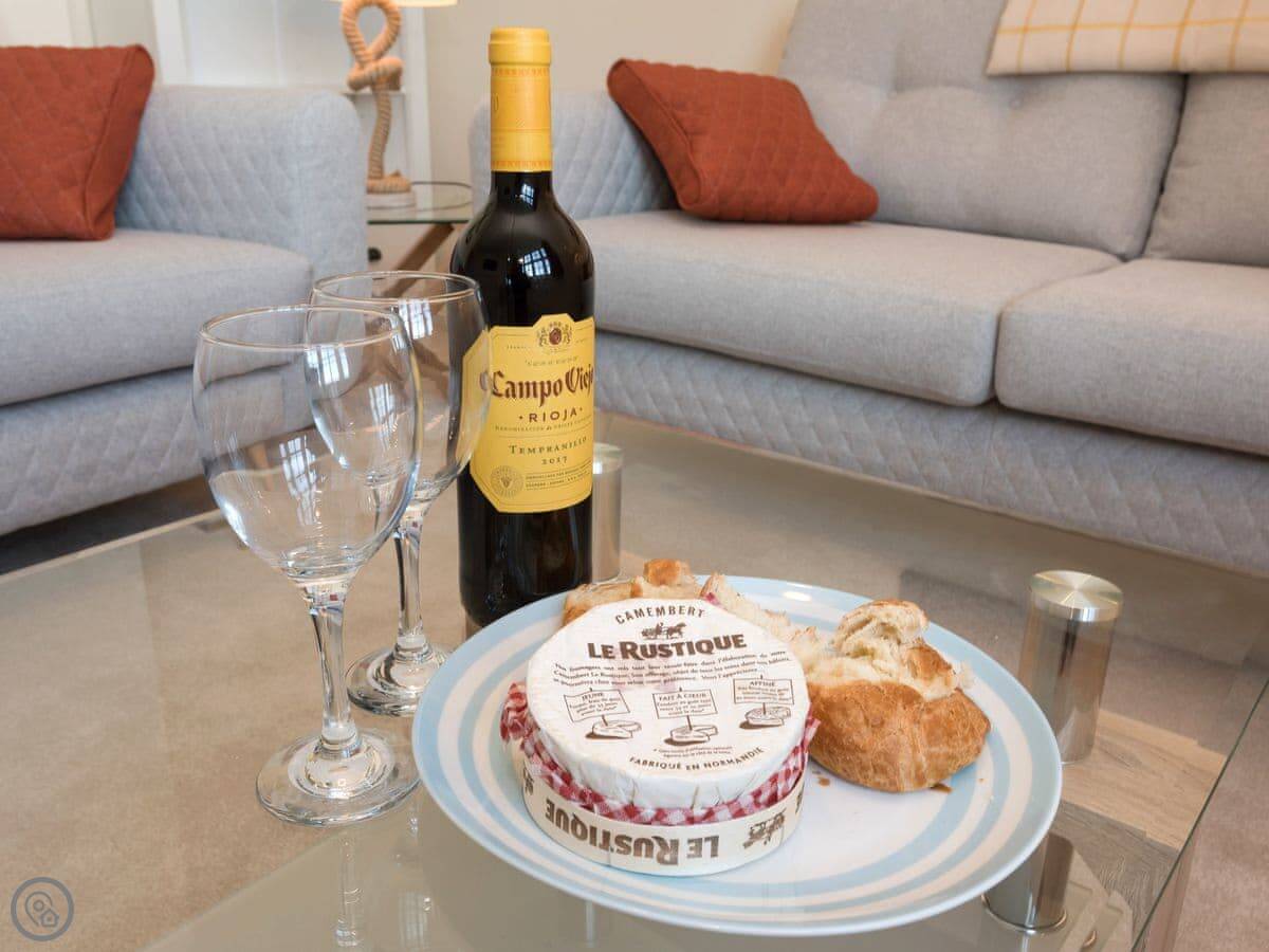 It sleeps four. Two bedrooms and two bathrooms, which is handy. You can bring up to two dogs. There's a welcome pack with some basics like milk and bread when you arrive.