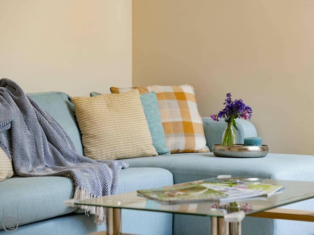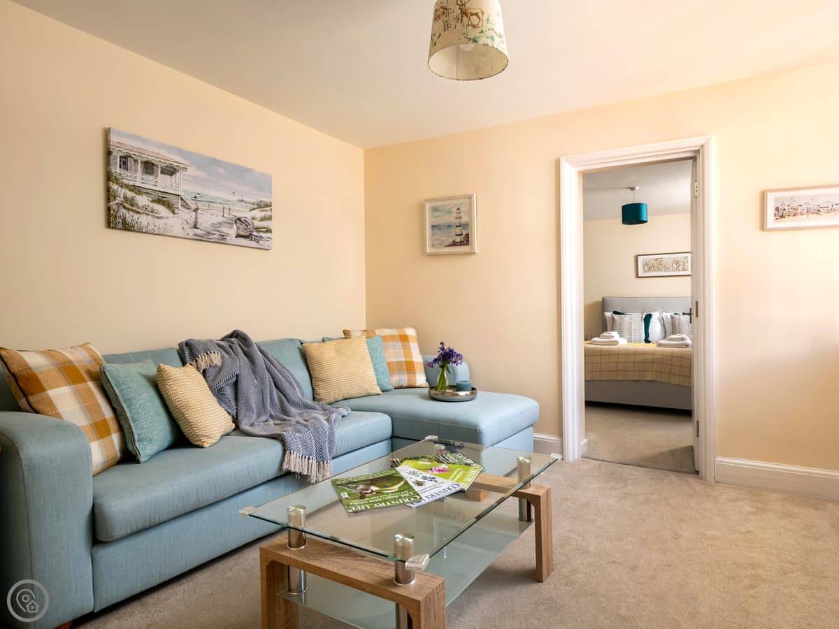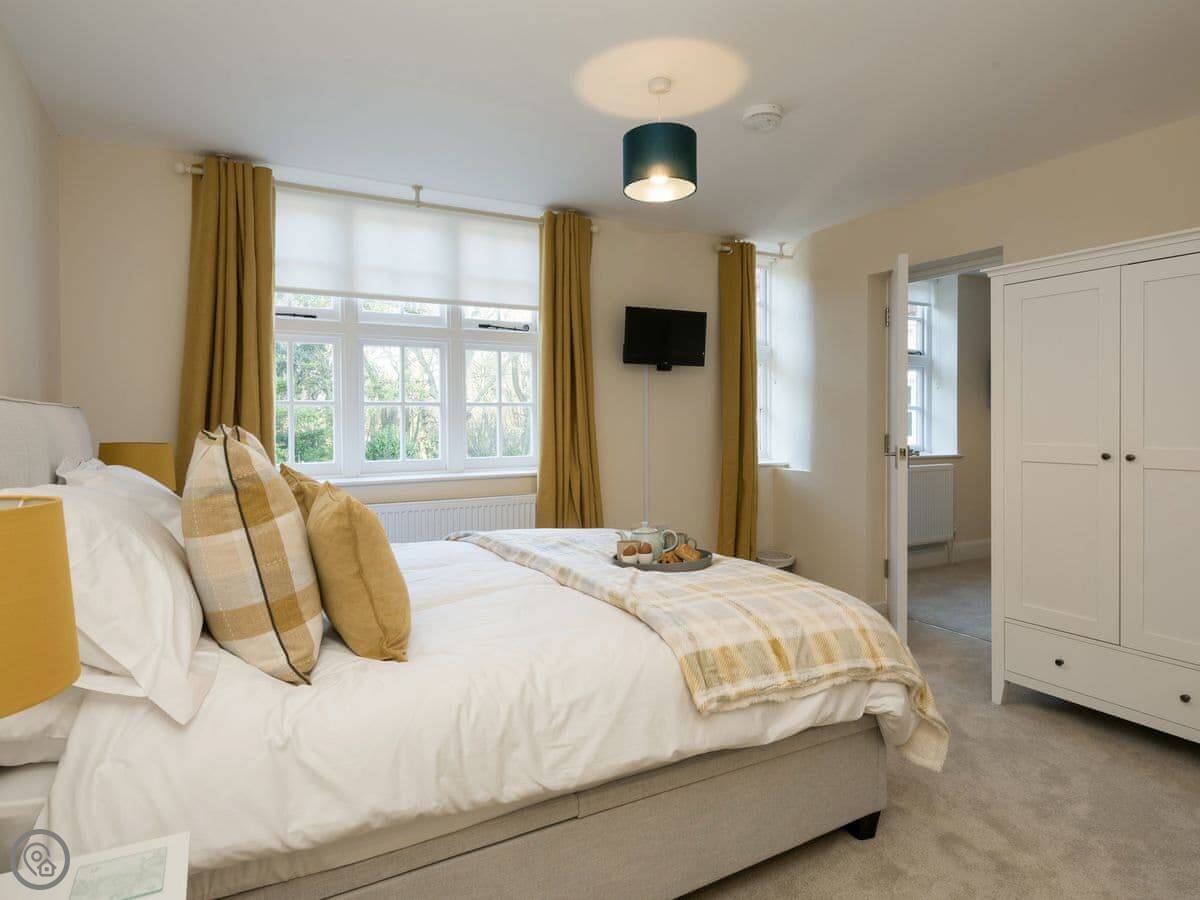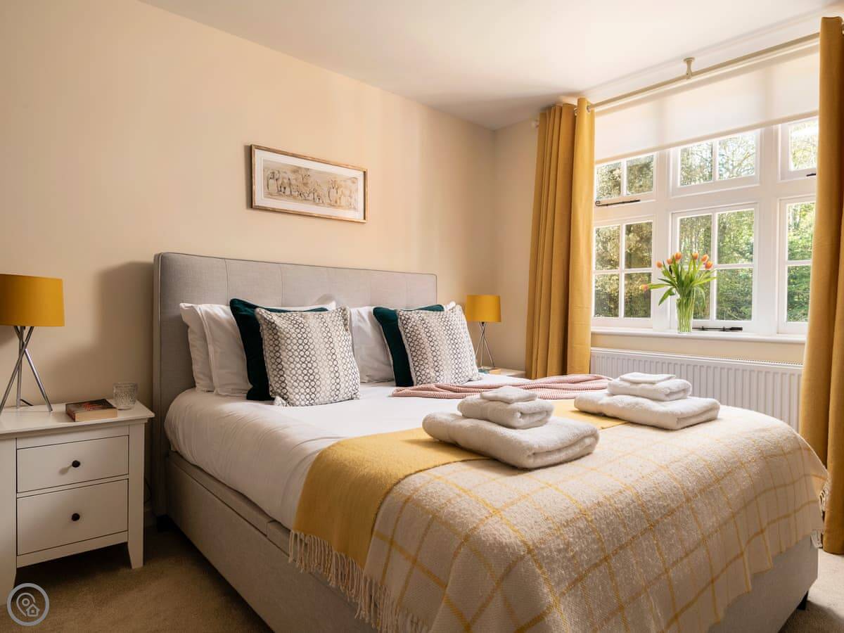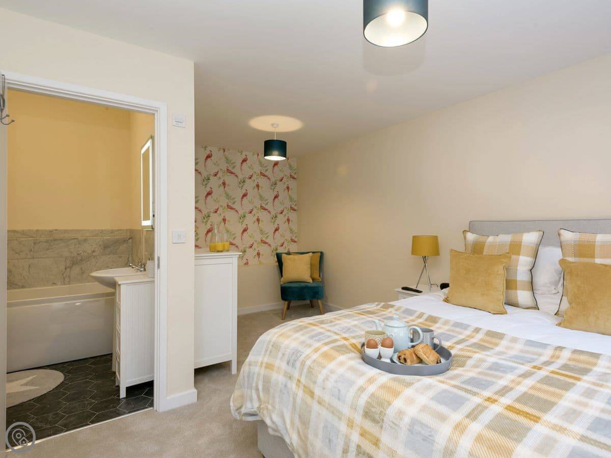 It sleeps four. Two bedrooms and two bathrooms, which is handy. You can bring up to two dogs. There's a welcome pack with some basics like milk and bread when you arrive.