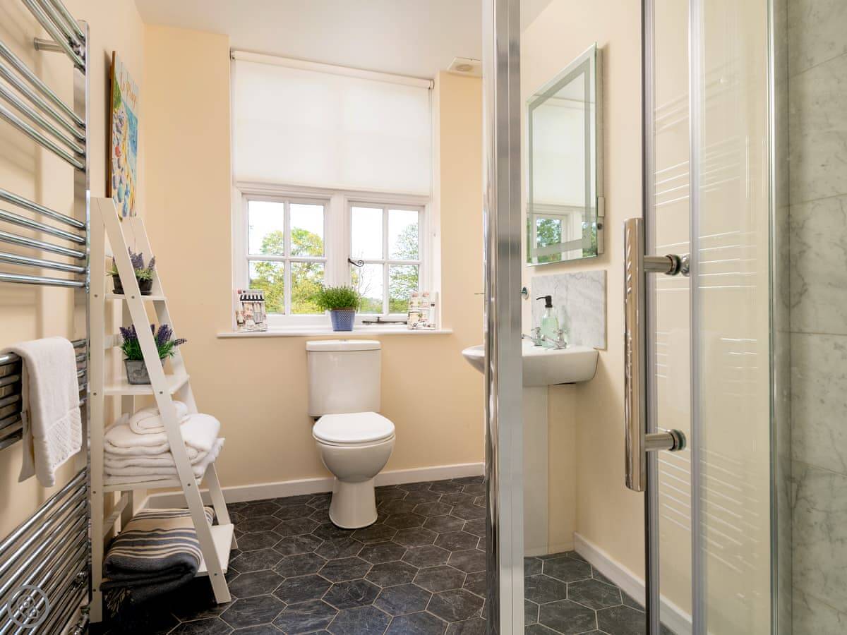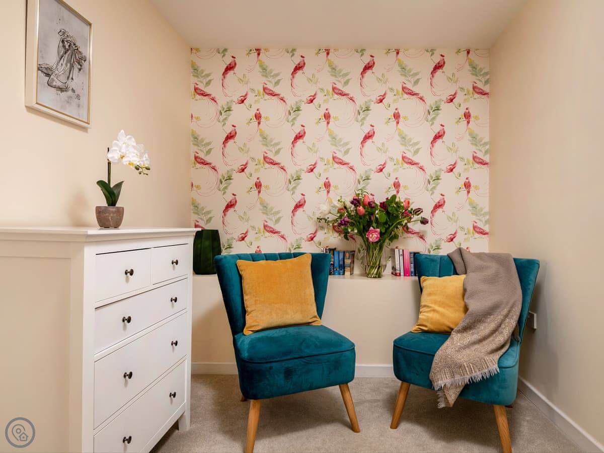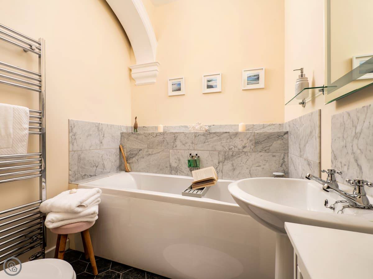 Inside, it's got a washing machine, dishwasher, wifi and TV. Bedding and towels are included. There's a cot and highchair if needed. The heating and hot water work well. The stairs are normal, nothing tricky.