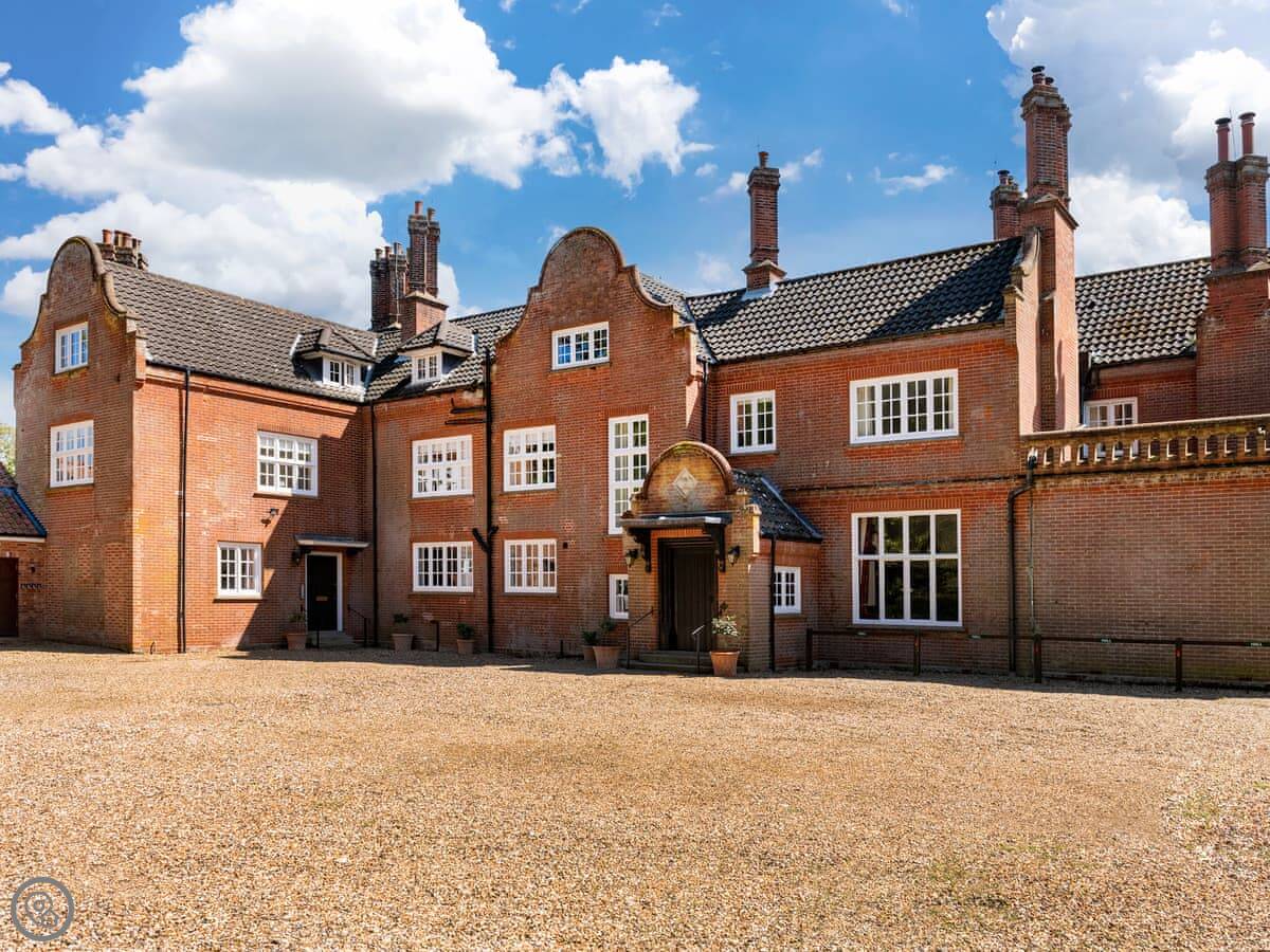 Upper Wing is an apartment on the Gresham Hall estate in East Beckham. It's one of four places you can rent here separately, or you can book the lot together if you've got a big group.