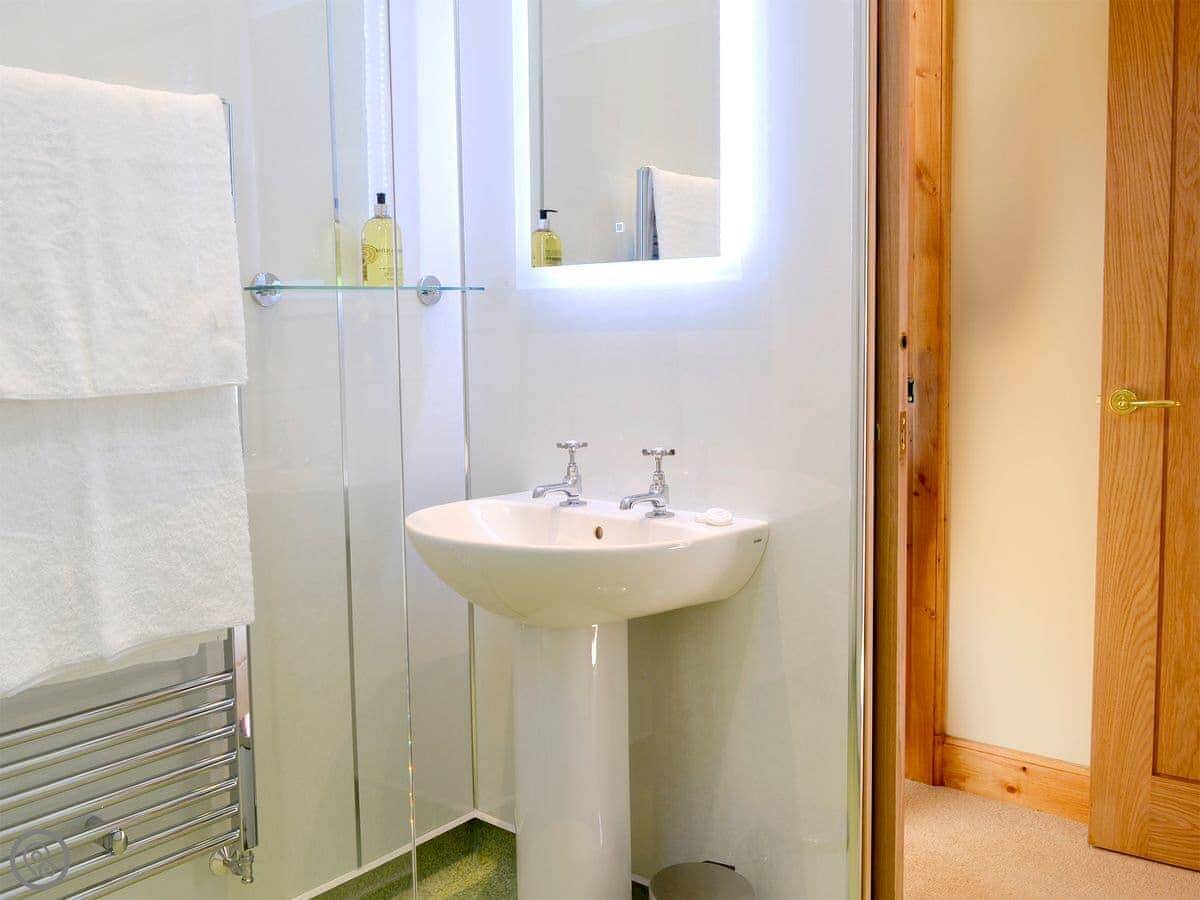 It's for two people. One bedroom, one bathroom. It's a 4 Star, so it's well done. Everything is on the ground floor. The bathroom is a wet room. The front door and the rooms are wheelchair accessible. There's an electric vehicle charger by the parking space.