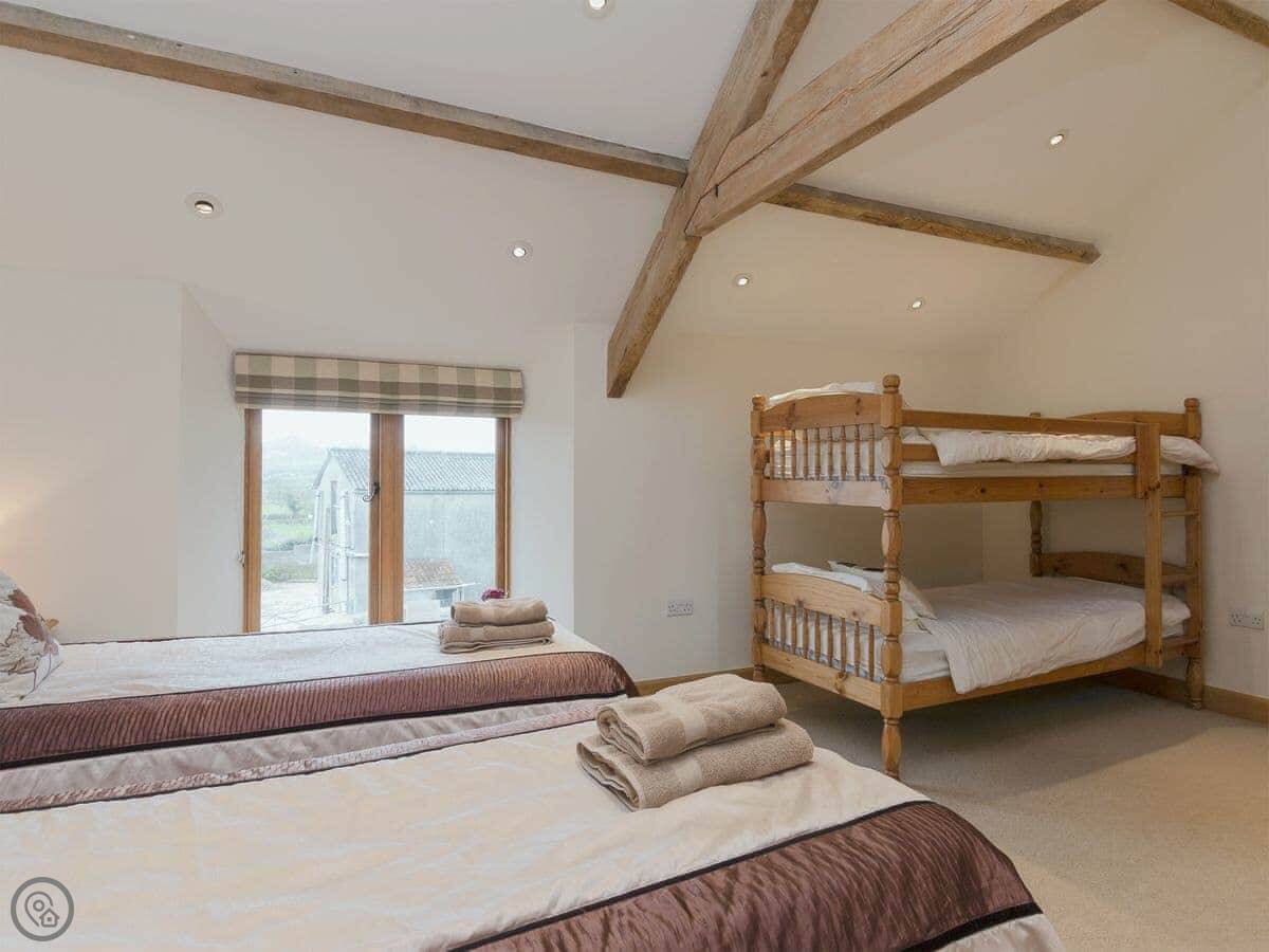 Applebarn features stunning open plan downstairs living space and provides comfortable accommodation upstairs in two bedrooms for up to 4 adults, plus 2 children. Note that the bunk beds are not suitable for adults.